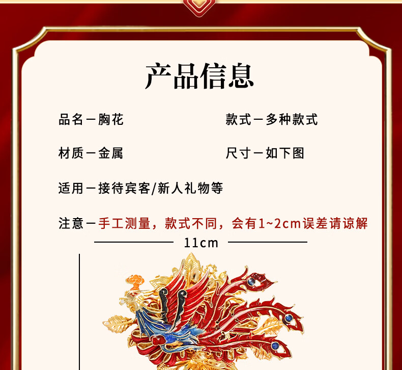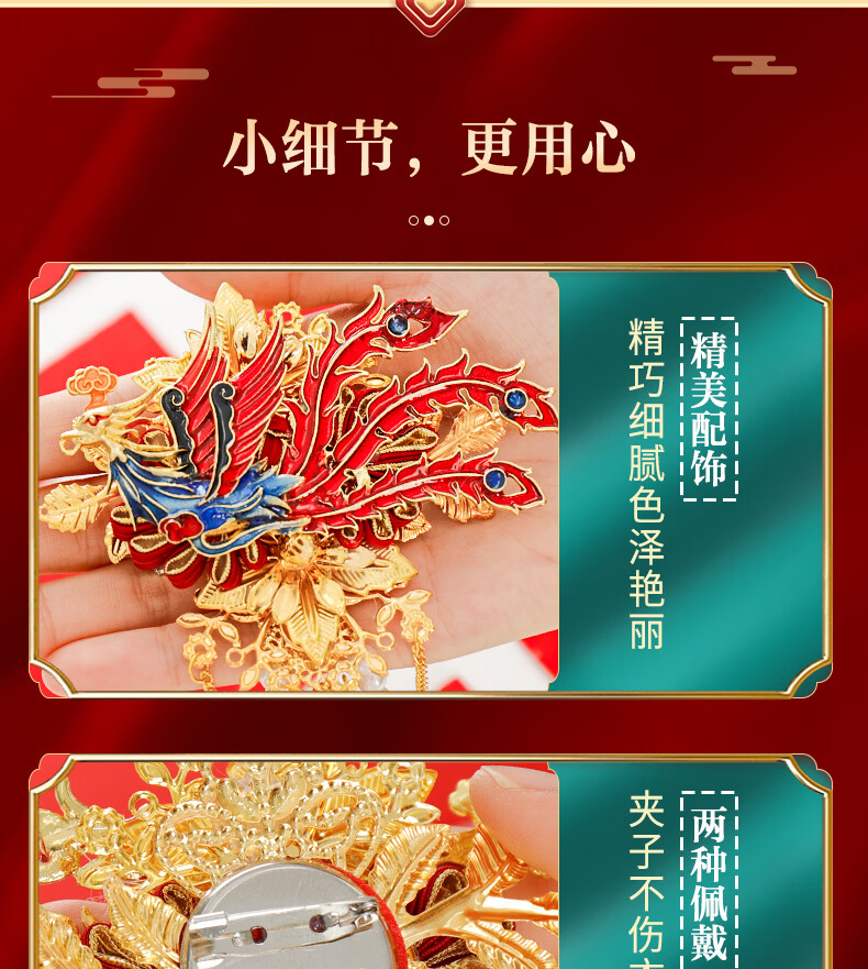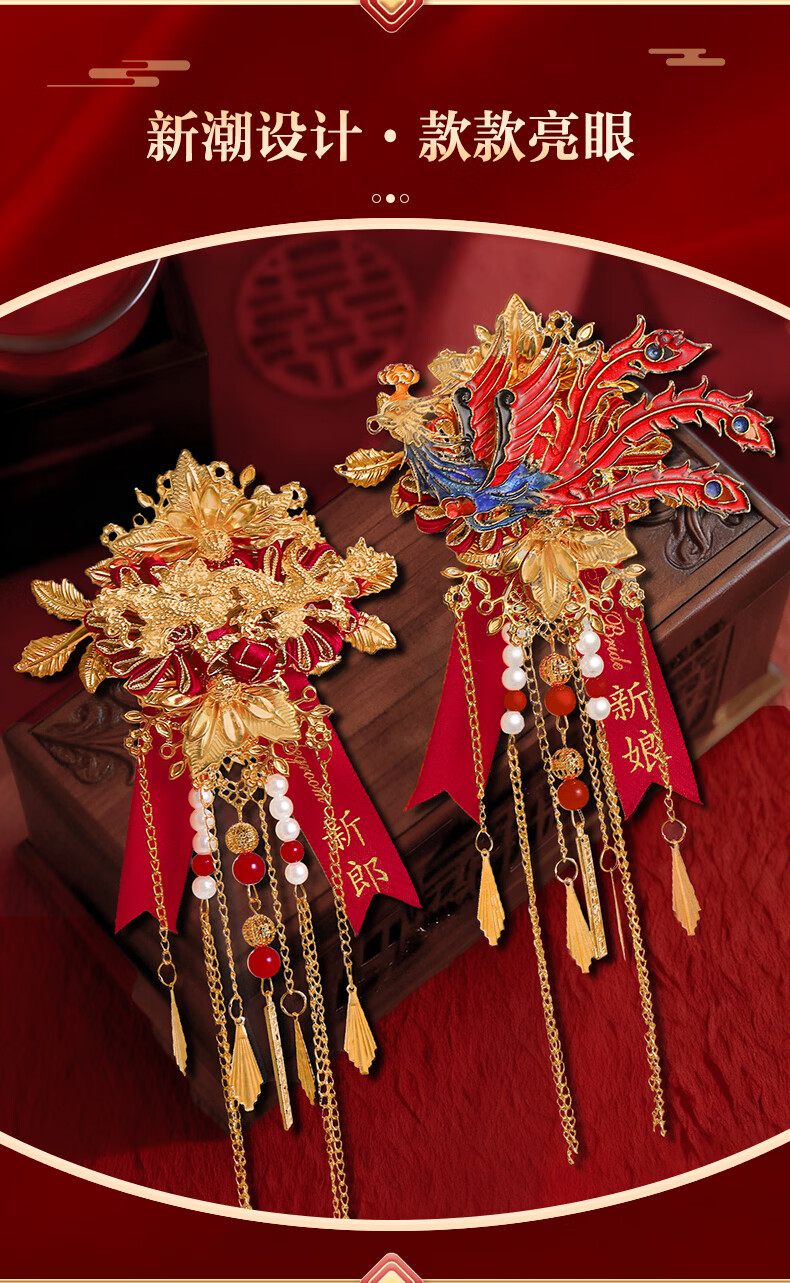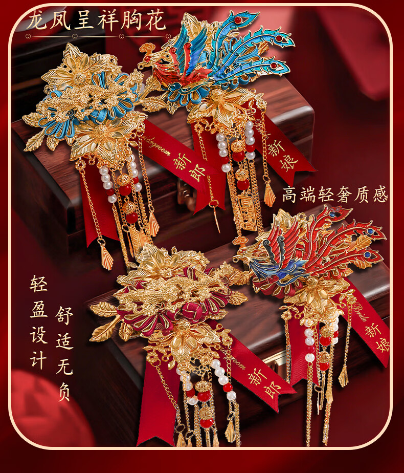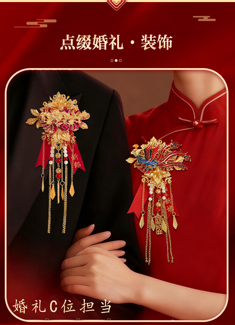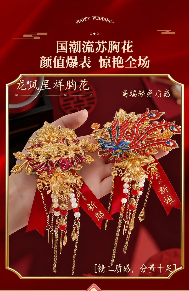惟以安龙凤胸花结婚礼新郎新娘专用伴娘伴郎胸针别花一对襟花家人全套 【经典龙凤呈祥胸花】烫金飘带+礼盒