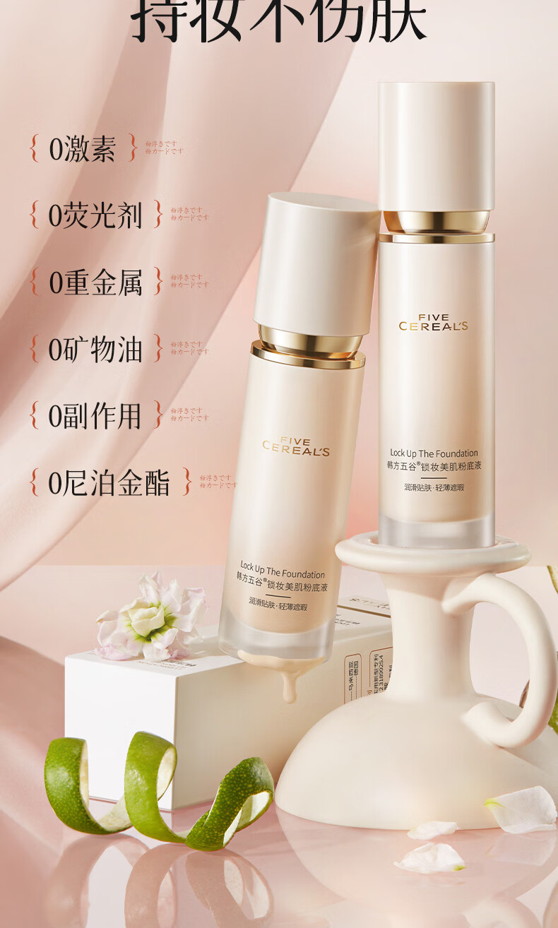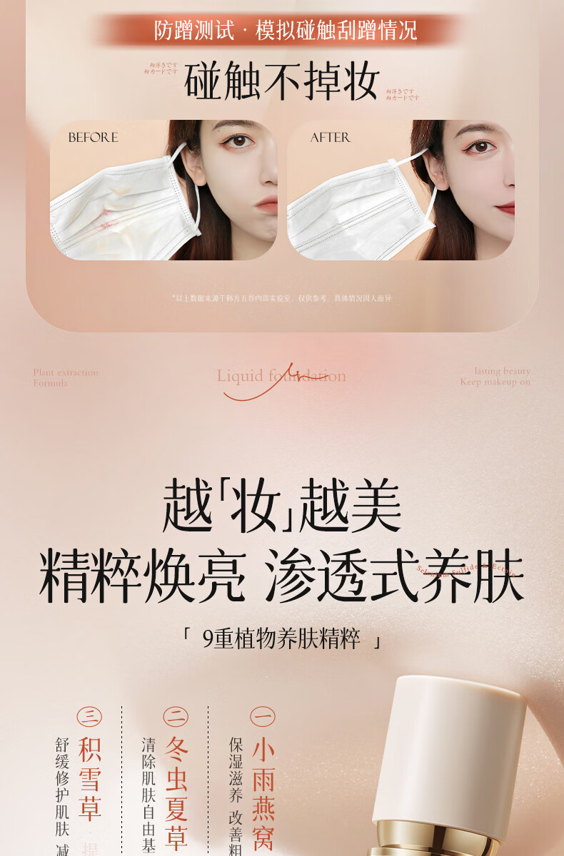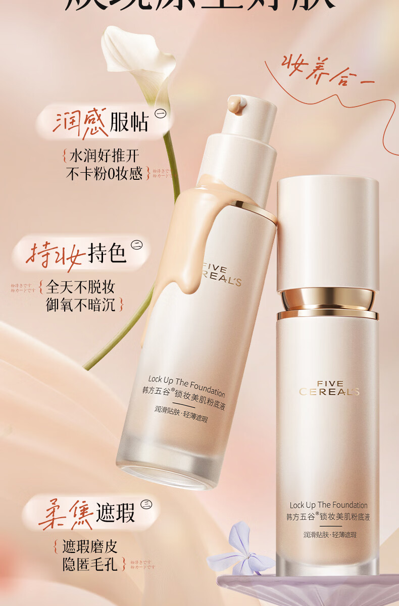 韩方五谷粉底液遮瑕持久防水不脱妆不卡粉自然裸妆遮痘印斑点三效合一干皮