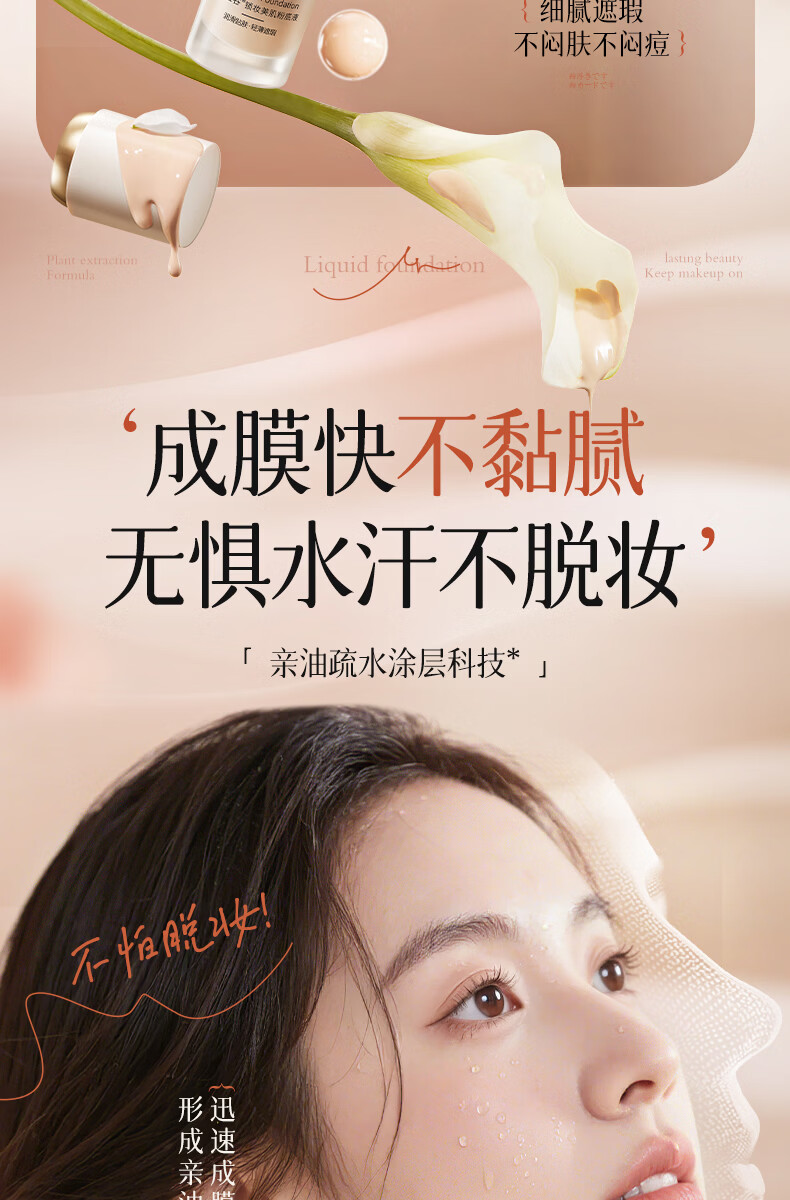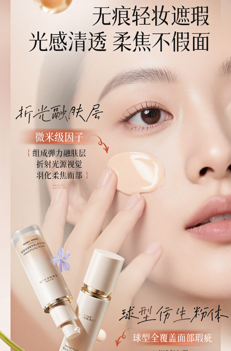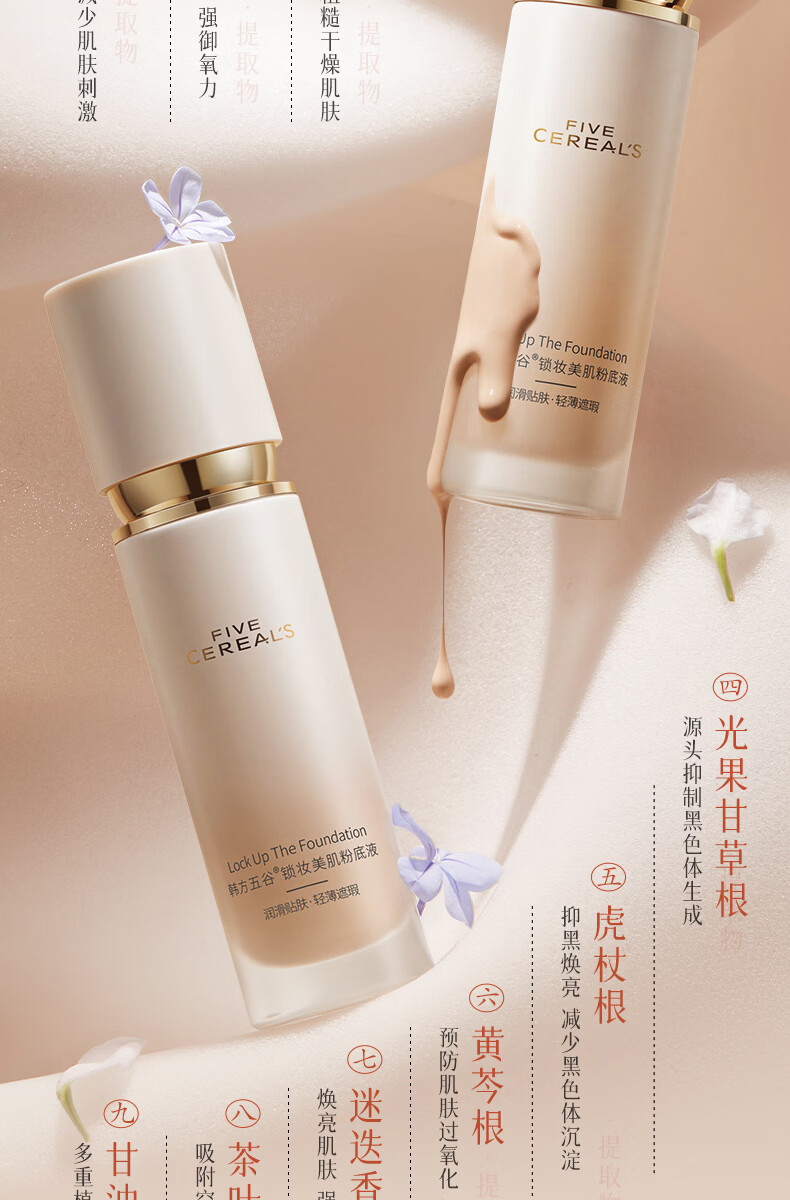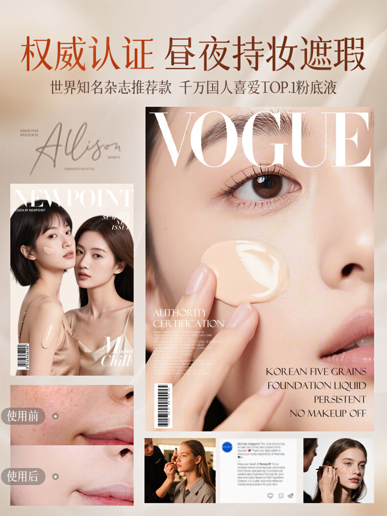 韩方五谷粉底液遮瑕持久防水不脱妆不卡粉自然裸妆遮痘印斑点三效合一干皮