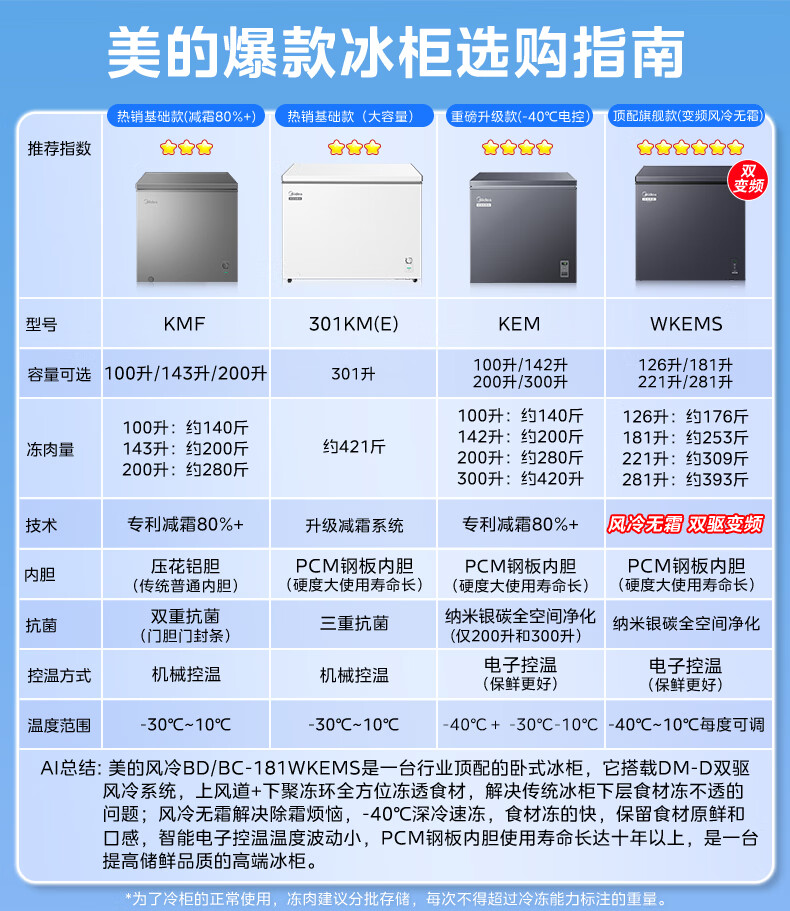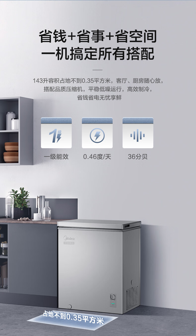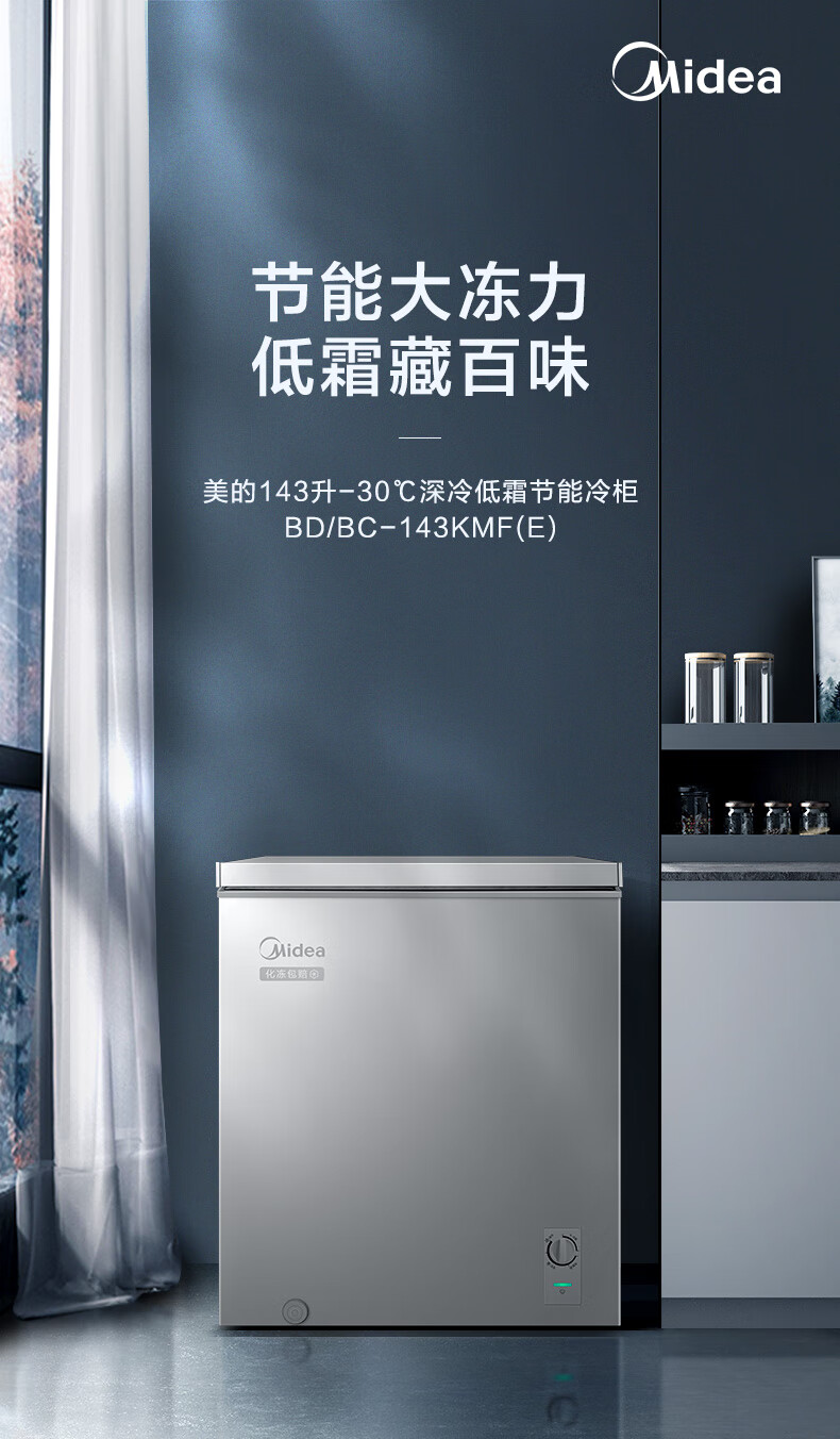 美的(Midea)143L单温家用冰柜减霜冷藏冷冻柜两用小冰柜一级能效节能冷柜小型冰箱BD/BC-143KMF(E)国家补贴