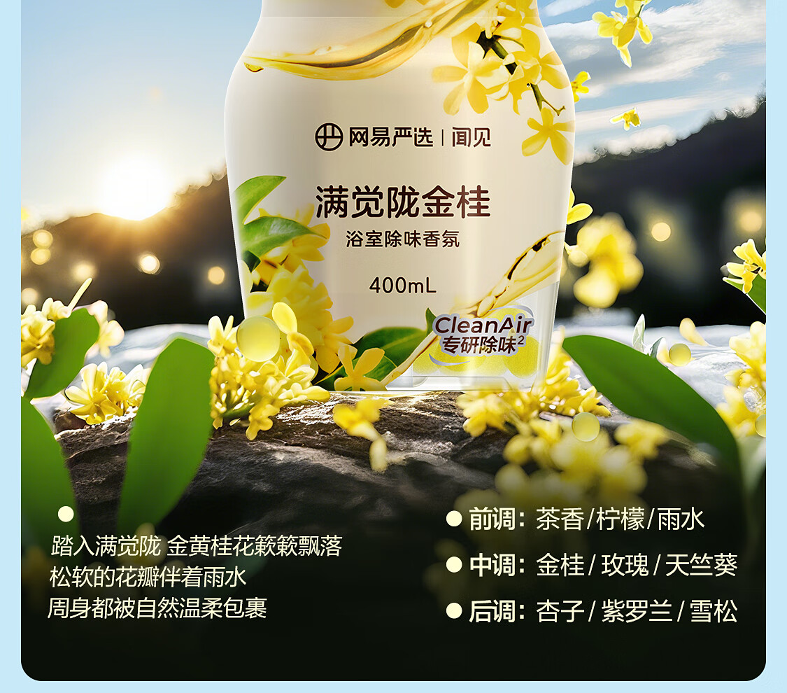 网易严选浴室除味香氛爆香瓶 空气清新剂卫生间厕所专用香薰室内除臭持久