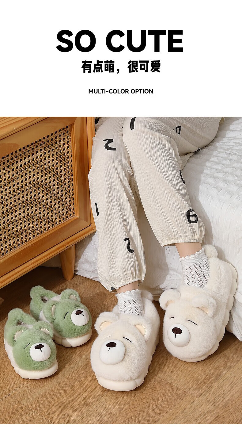 FZT 棉拖鞋男士秋冬季居家卡通保暖毛毛绒情侣防滑踩屎感外穿棉鞋女 粉色 【软萌小羊】 36-37 适合35-36(内长230mm)