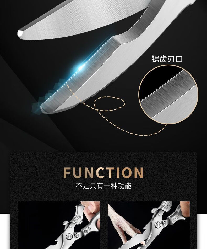 厨房剪刀家用不锈钢剪杀多功能骨头专用强力食物鸡骨剪子 开罐鱼鳞刮全钢多功能鸡骨剪