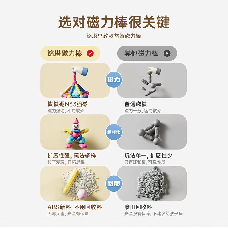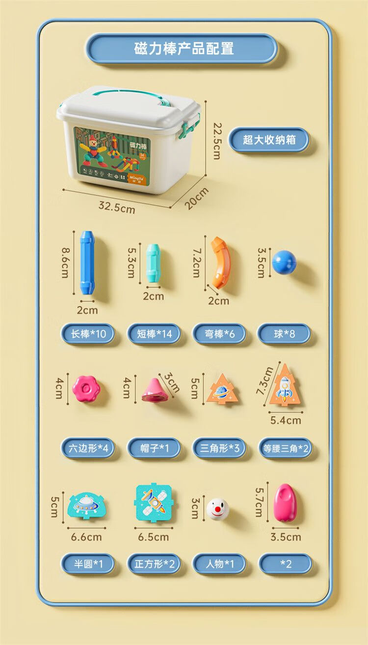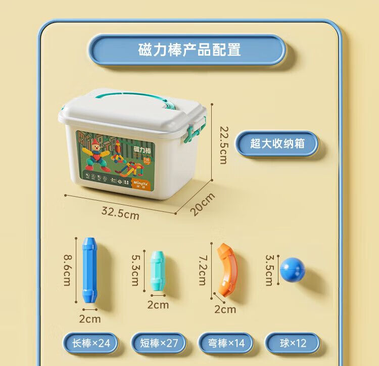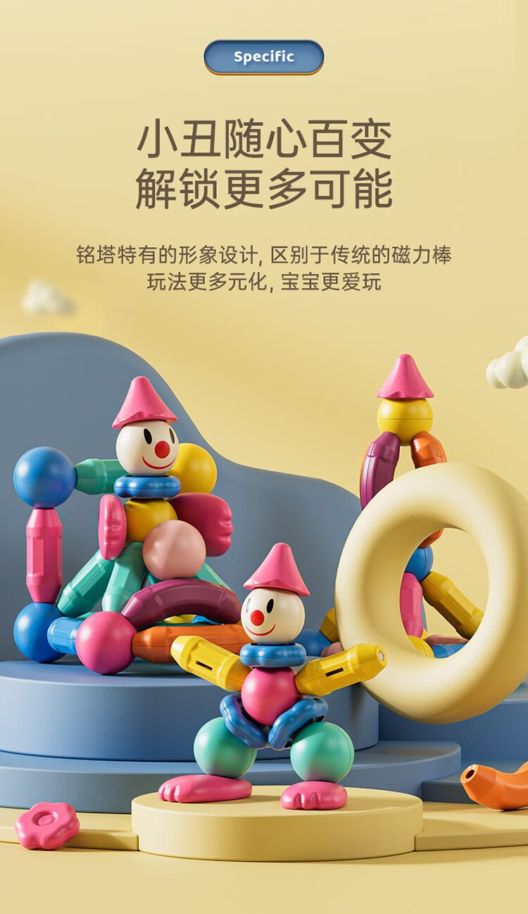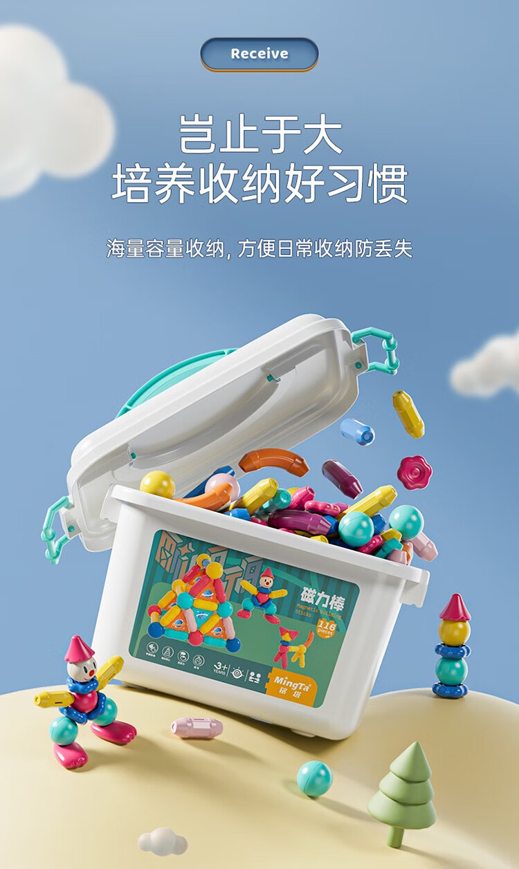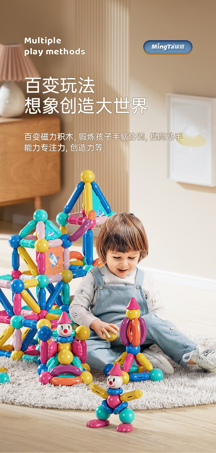铭塔大颗粒磁力棒积木玩具百变拼搭创意生日礼物生日礼物 新款54件套磁力棒(收纳桶)