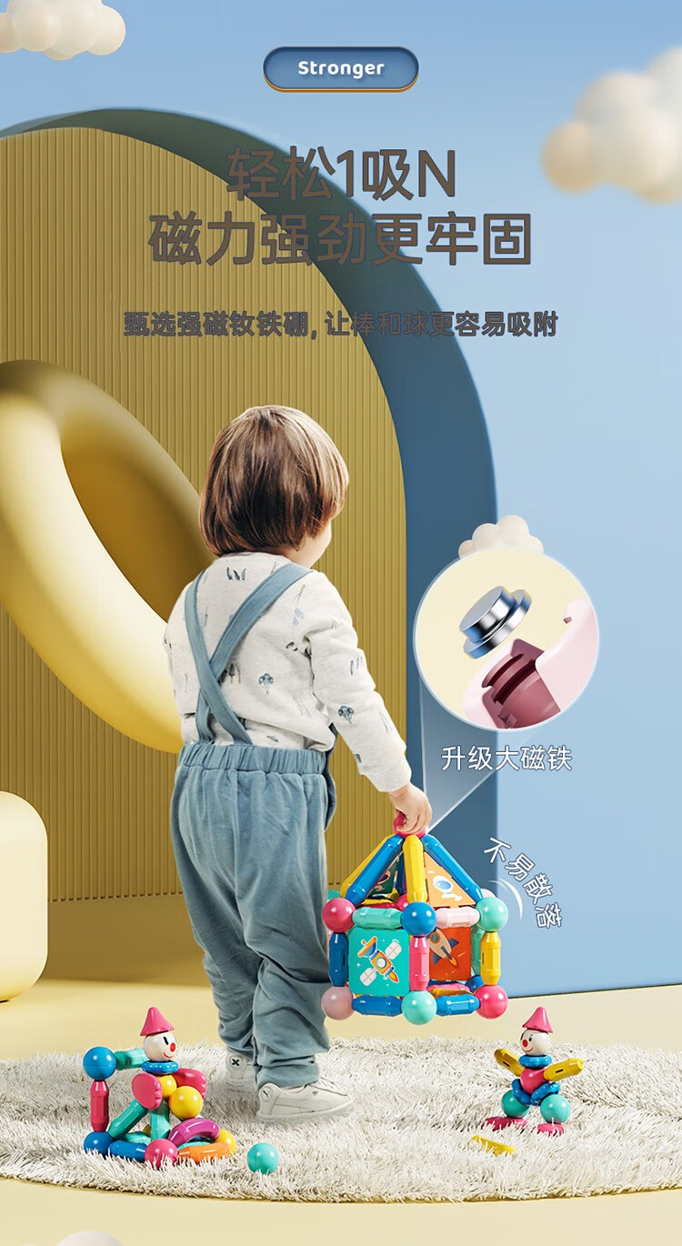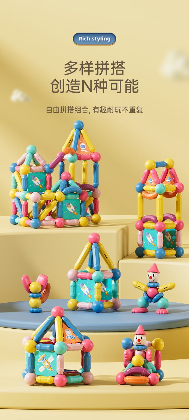 【直发】百变磁力棒儿童拼装积木男女孩智力开发DIY磁力玩具 117配置