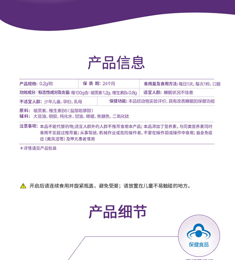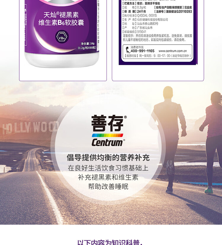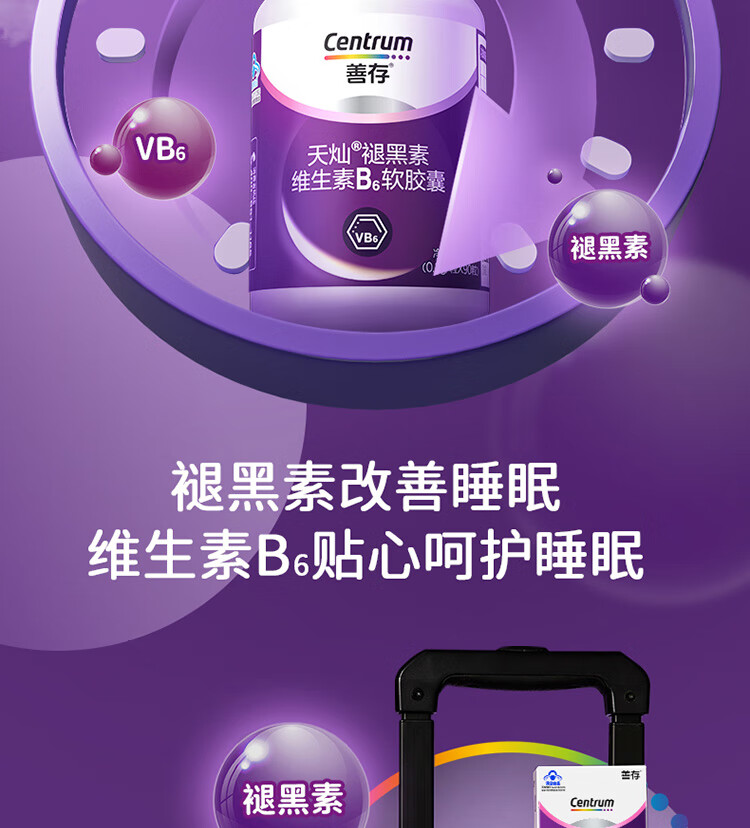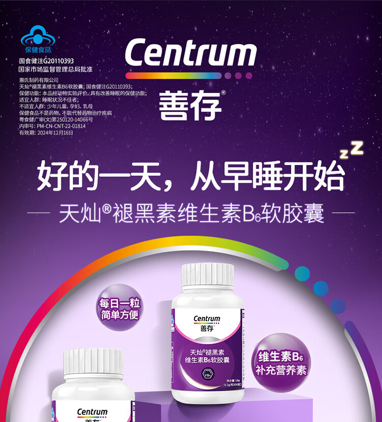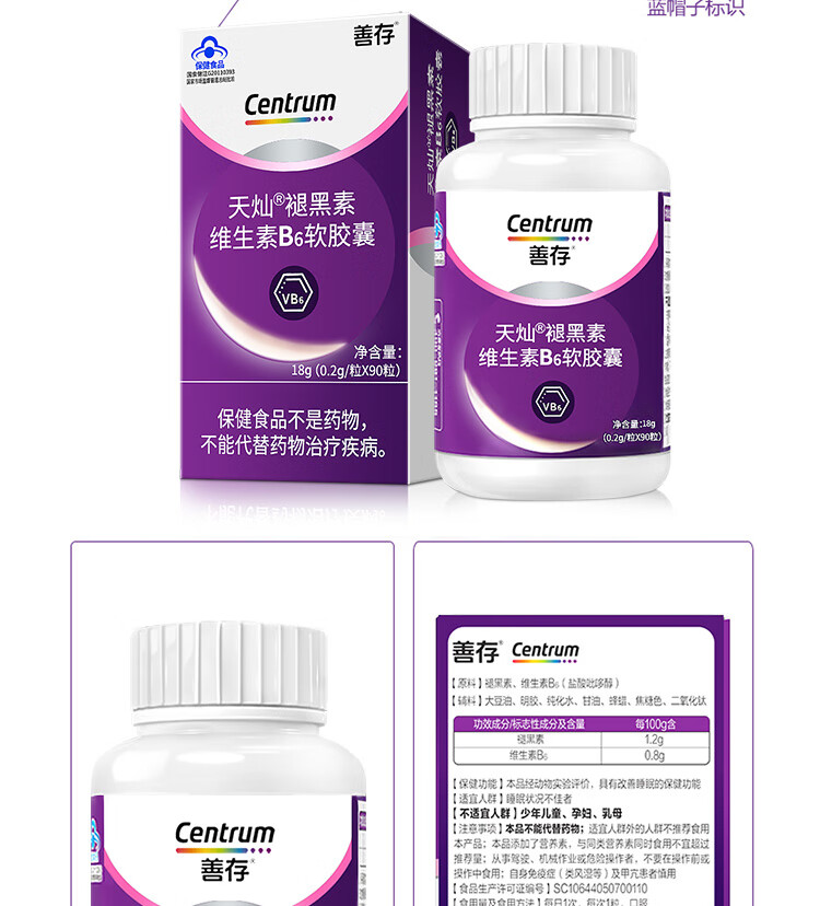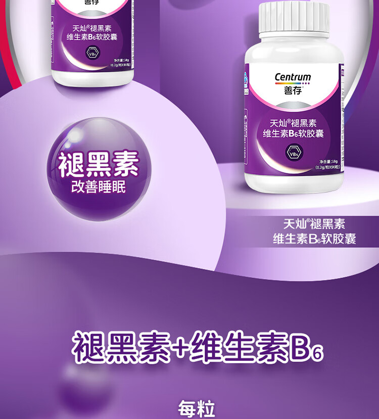 善存褪黑素 维生素b6中老年成人男女士退黑素软胶囊90粒上班族呵护睡眠男女睡眠片 1瓶
