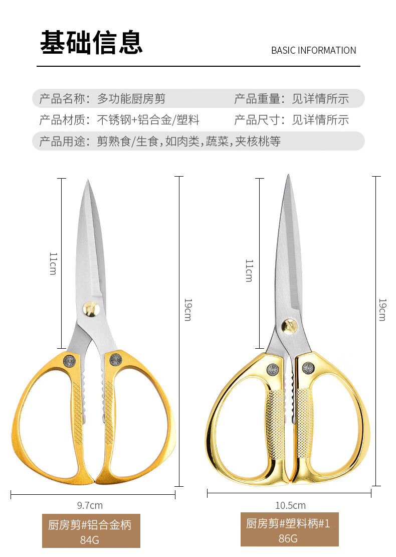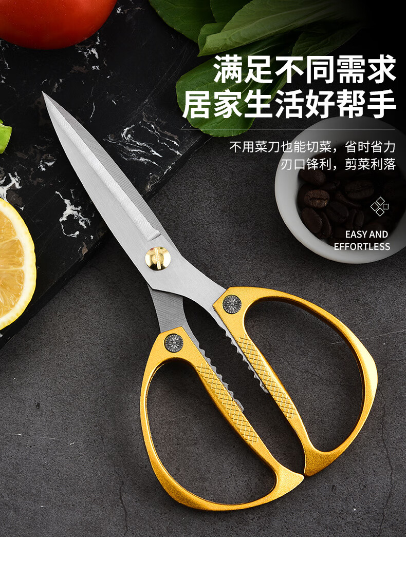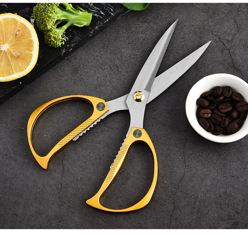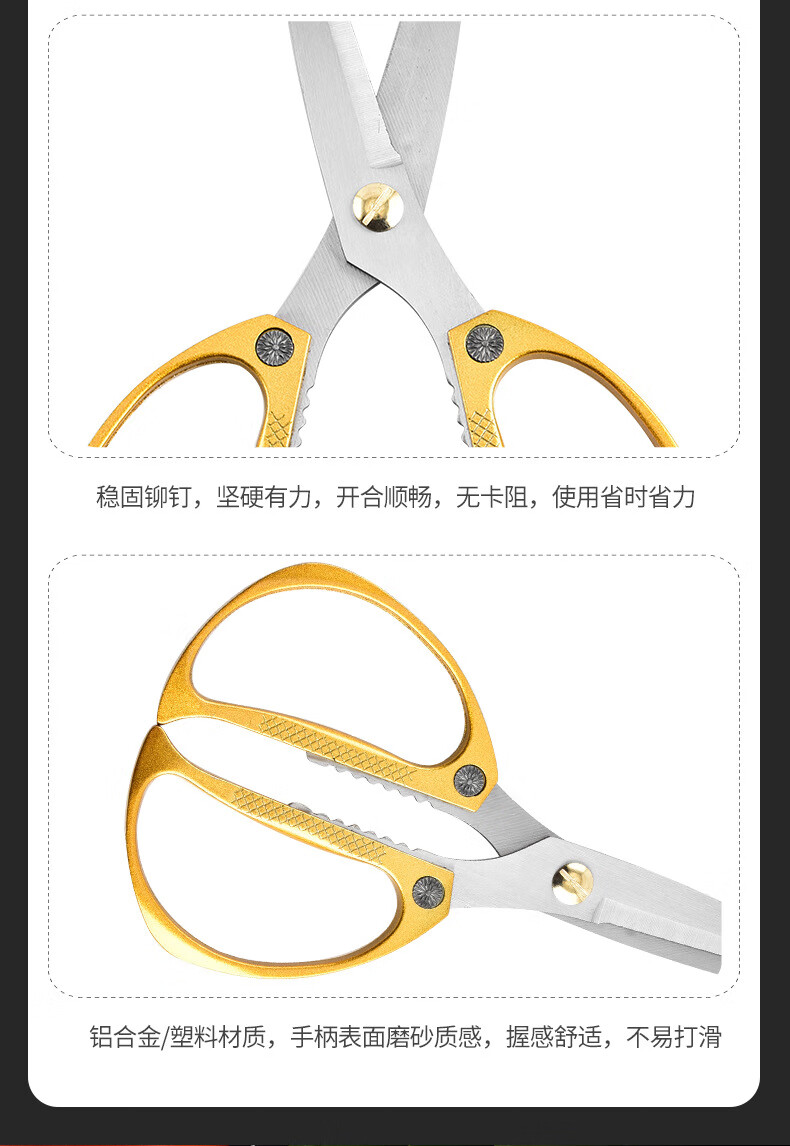 强力合金剪刀办公剪厨房鸡骨剪家用剪刀多功能烧烤用办公剪彩神器 K82金色(铝合金手柄)