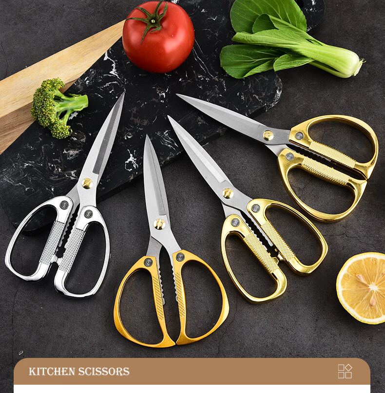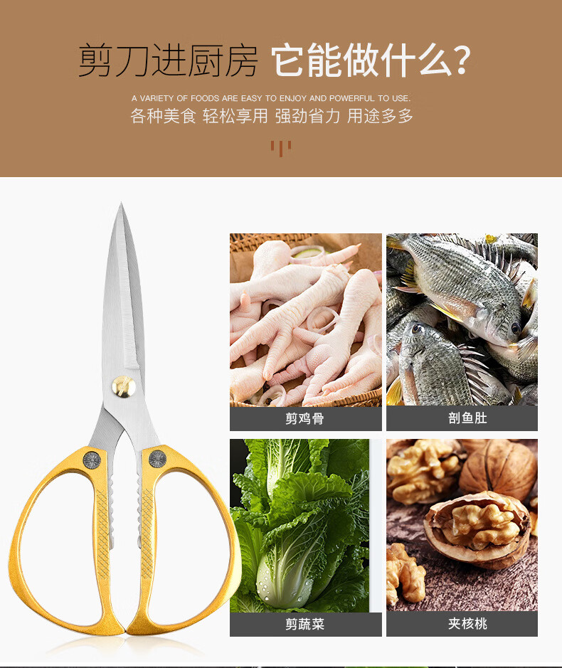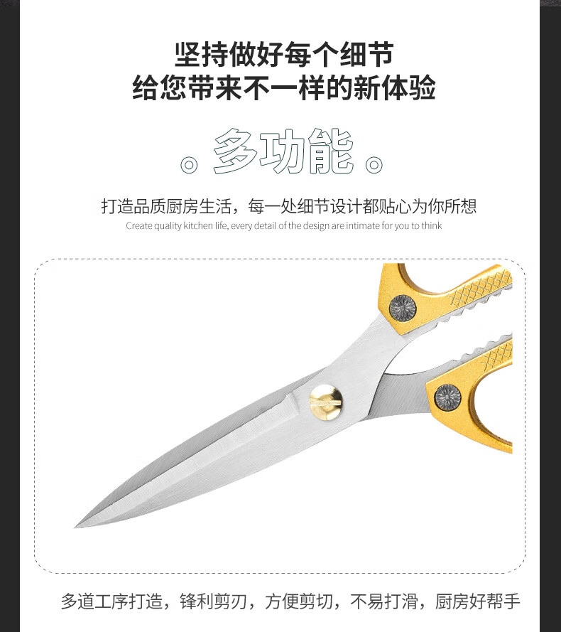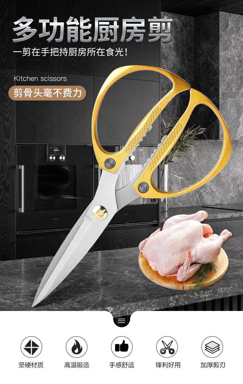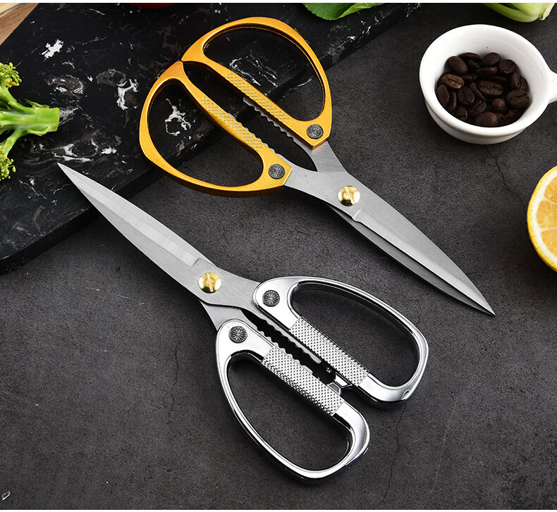 强力合金剪刀办公剪厨房鸡骨剪家用剪刀多功能烧烤用办公剪彩神器 K82金色(铝合金手柄)