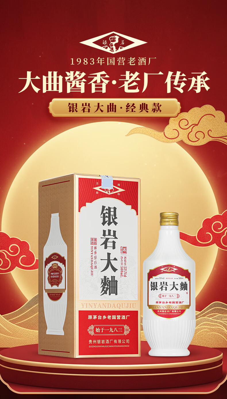 银岩贡酒1983 大曲坤沙工艺 53度纯粮酱香酒 原国营老酱酒厂出品 53度 500mL 6瓶 原箱装