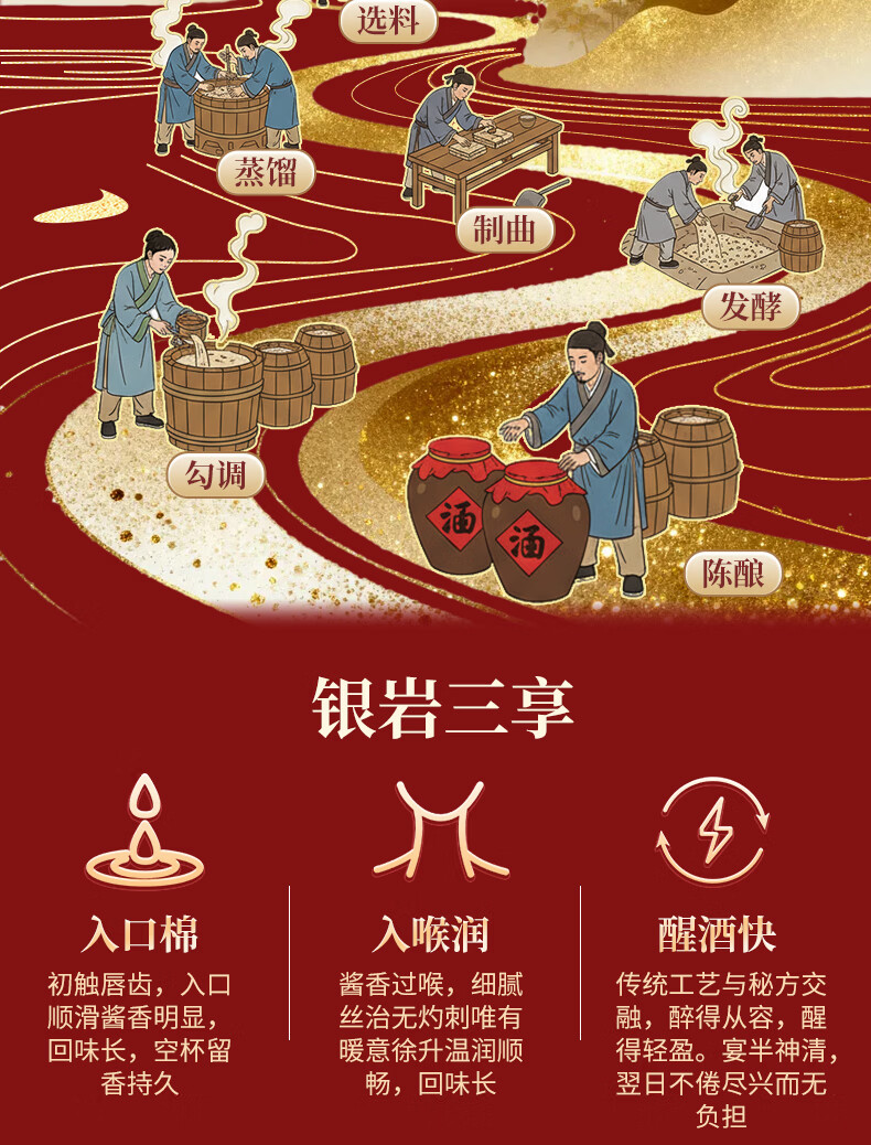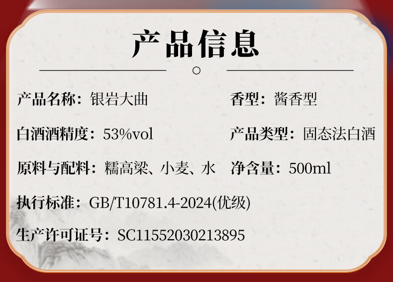 银岩大曲 大曲坤沙工艺 53度纯粮酱香酒 原国营老酱酒厂出品 53度 500mL 6瓶 原箱送3手提袋