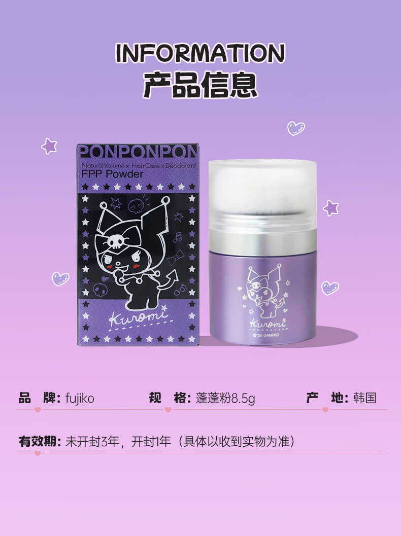 富志可fujiko酷库洛米头发蓬蓬粉ponpon蓬松粉控油干发粉去油免洗头8.5g 1瓶