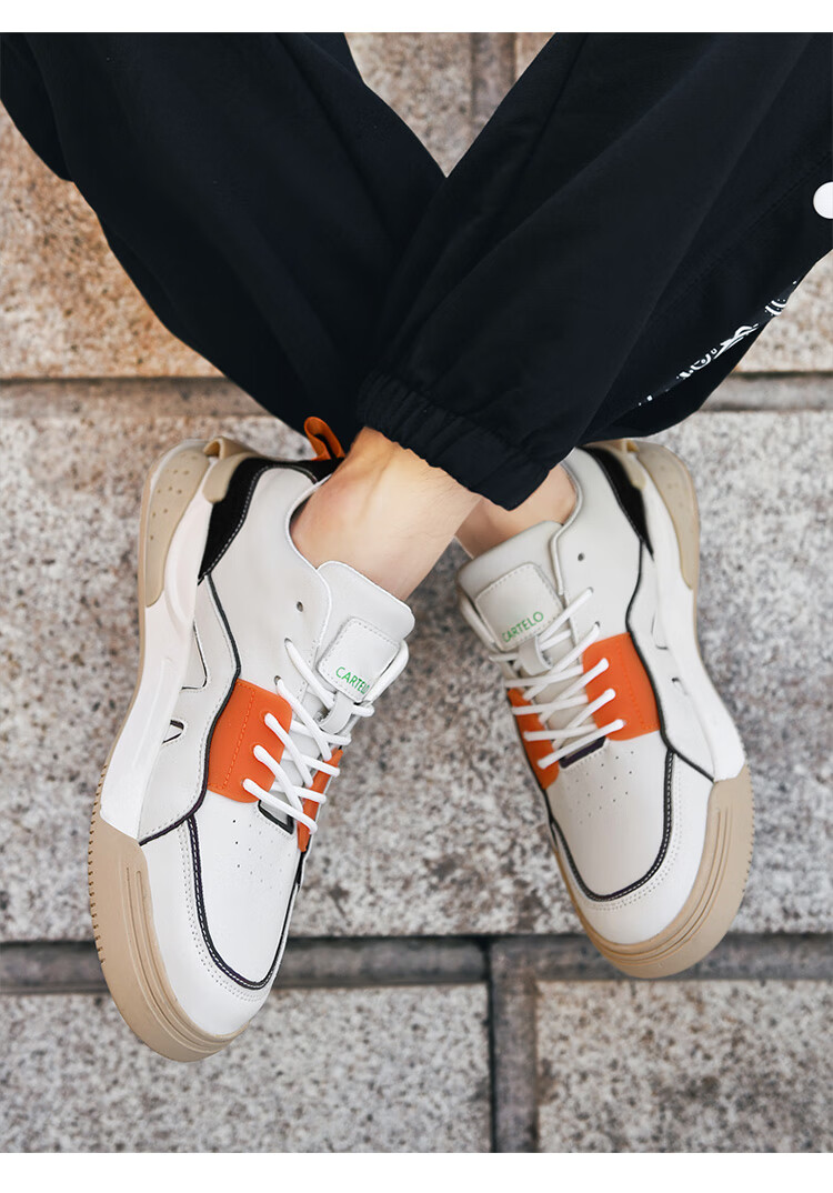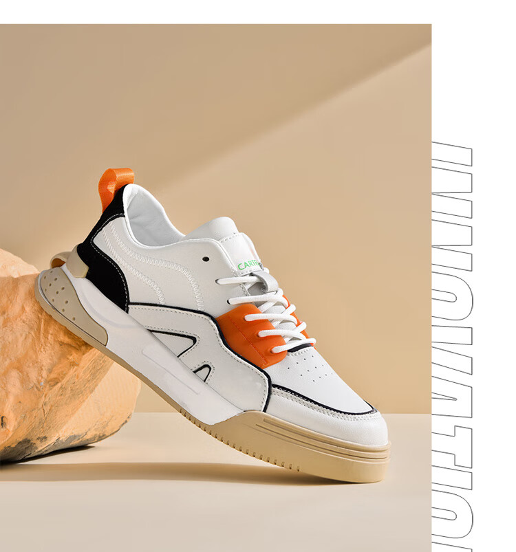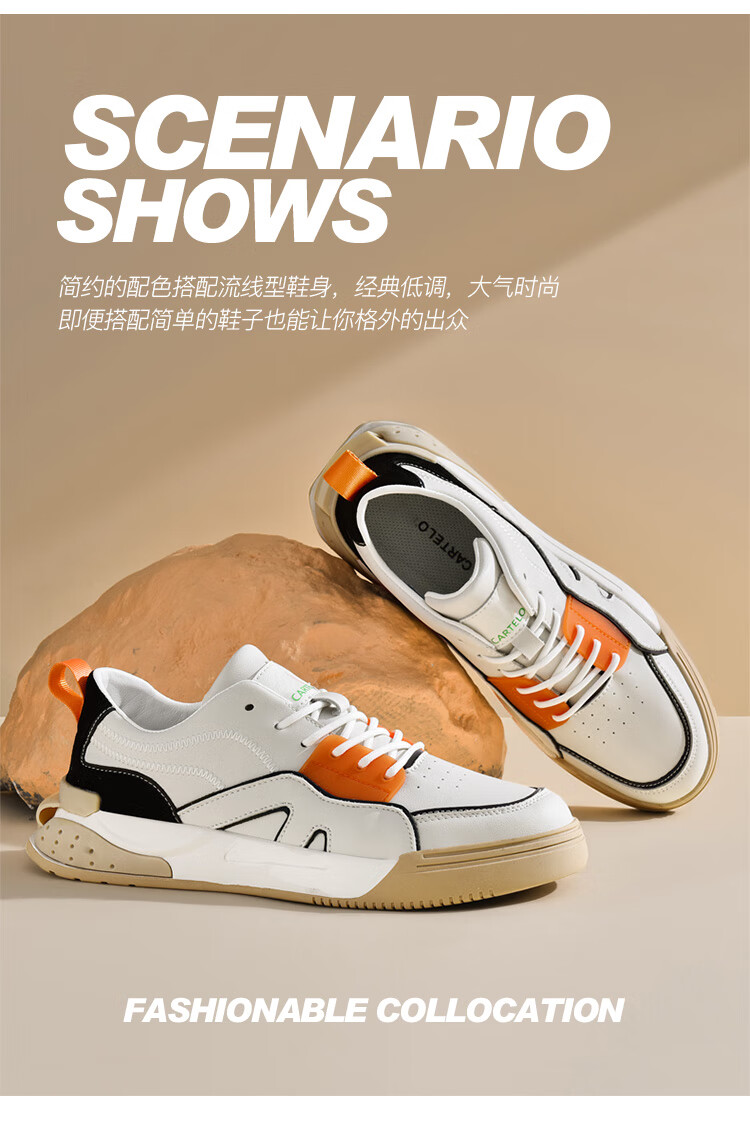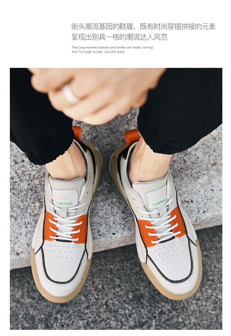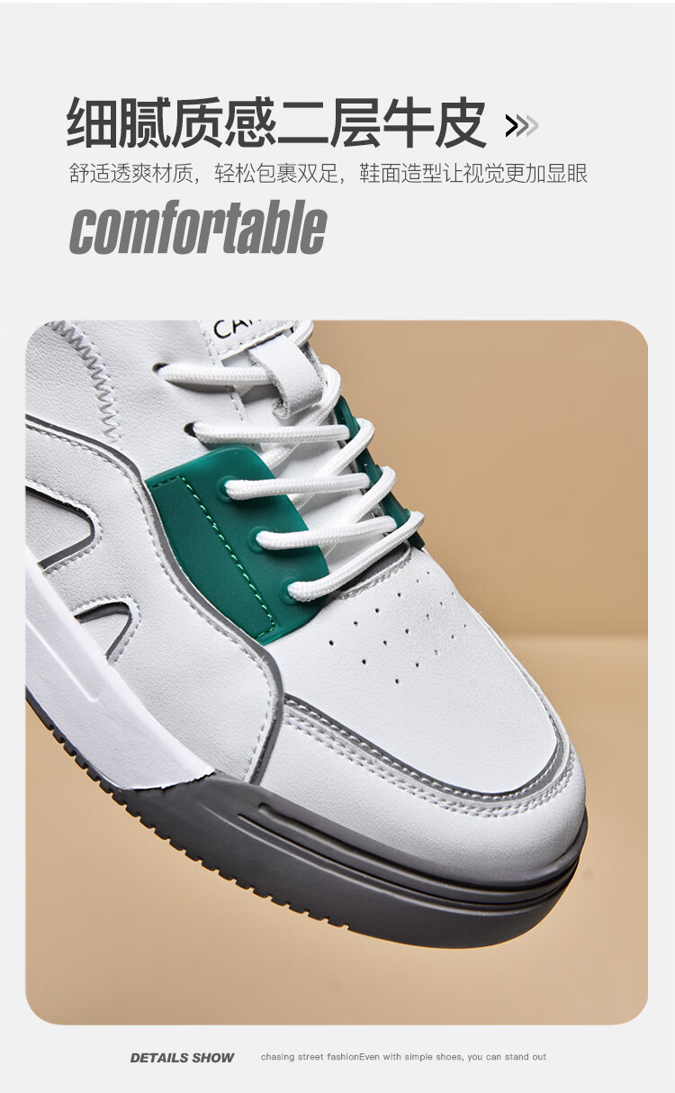 卡帝乐鳄鱼男士休闲鞋春秋季新款运动平底板鞋小白鞋子百搭潮流男鞋 米桔 42