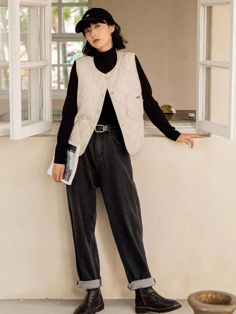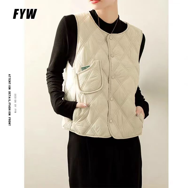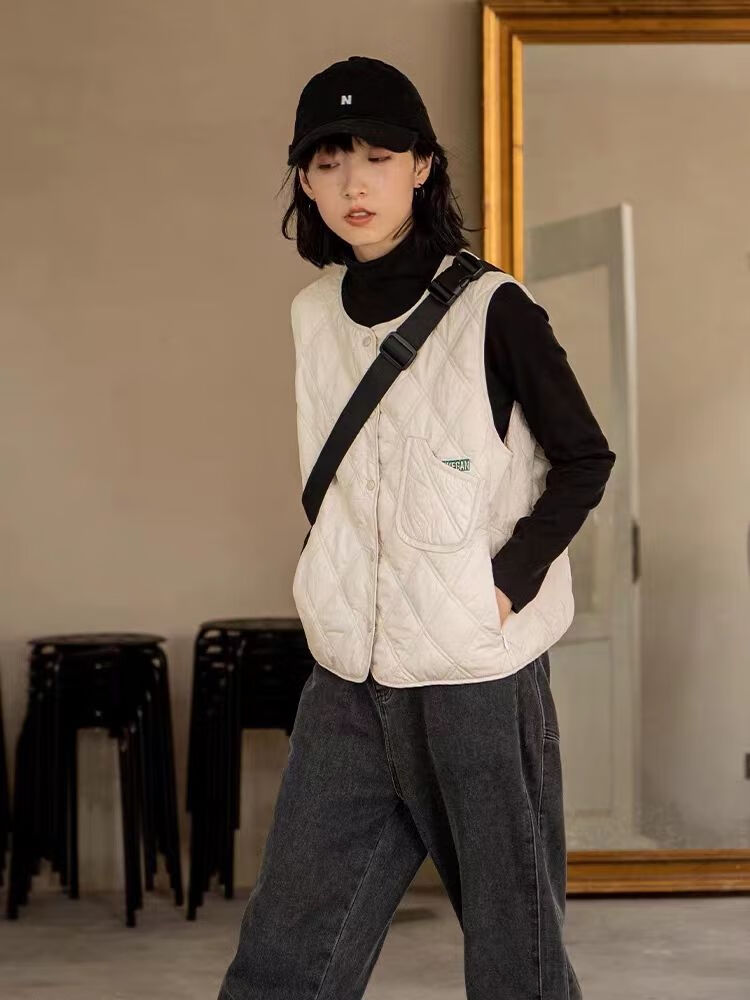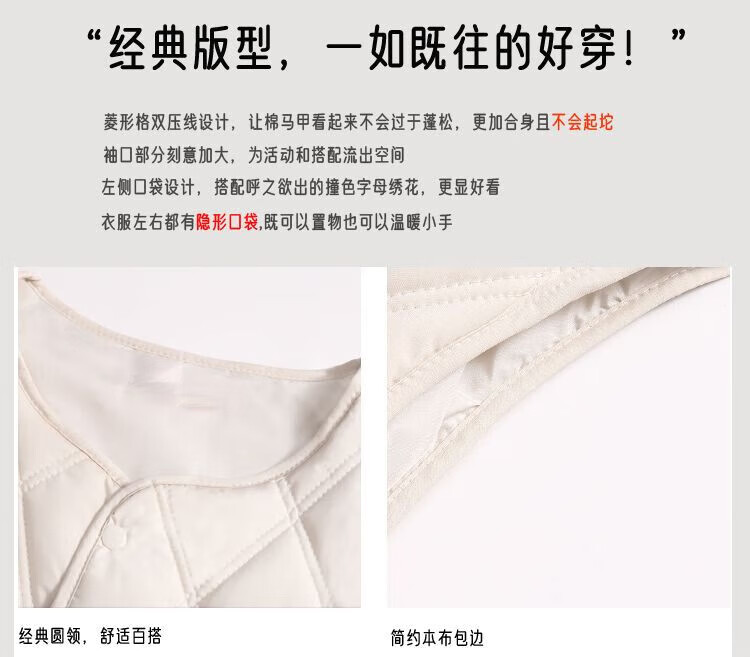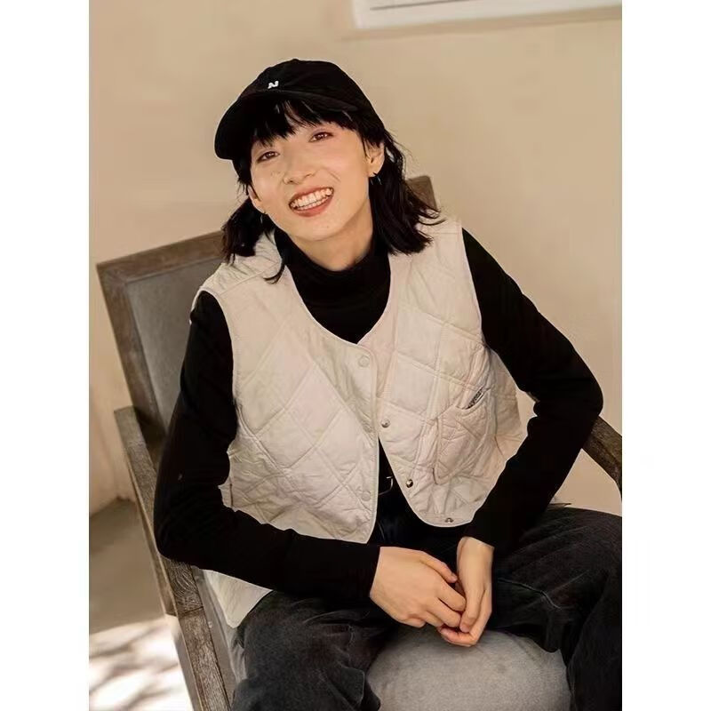 皮尔卡丹(pierre cardin)内搭马甲女日系叠穿菱格2025春秋季洋气新款薄款马夹内搭背心 香米色 S 建议79-99斤