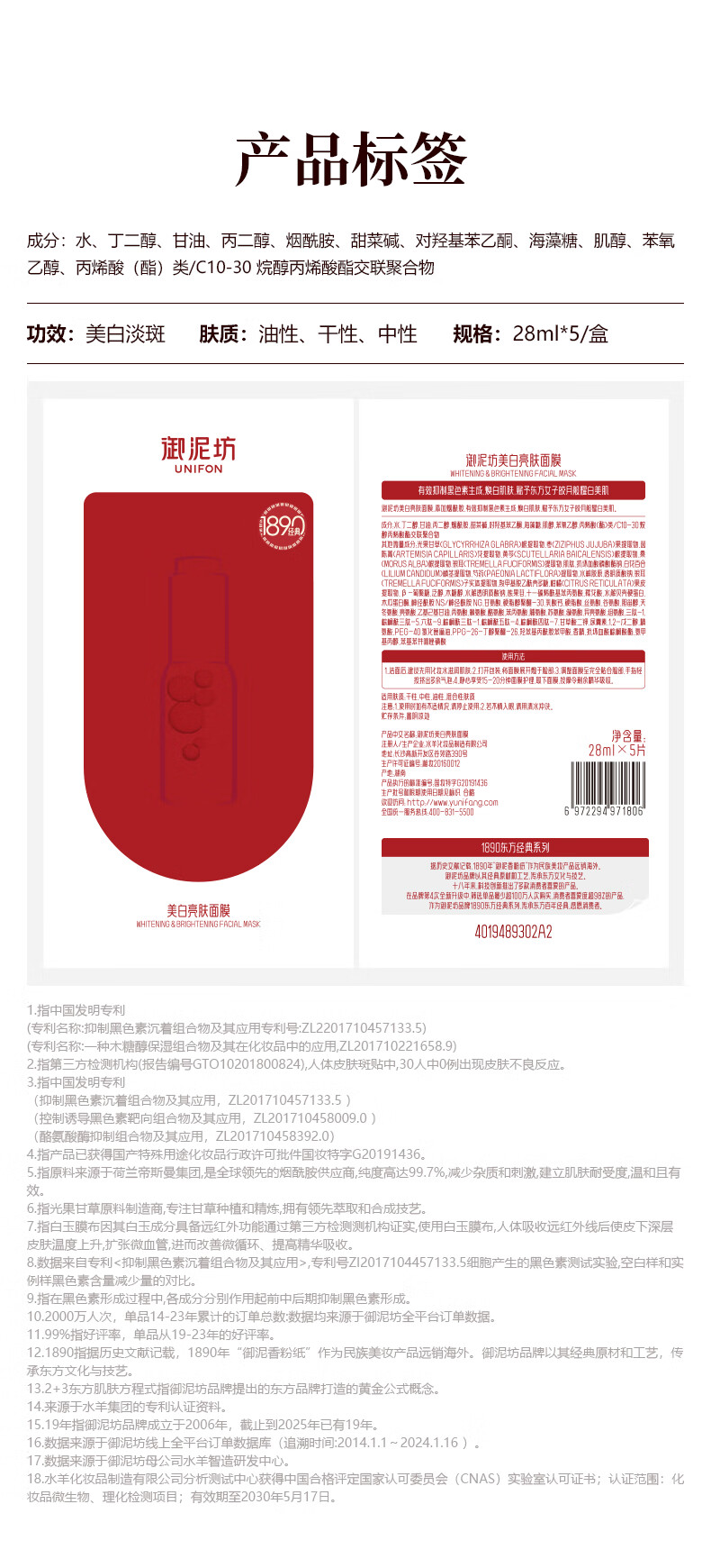 御泥坊美白亮肤面膜 补水面膜 美白淡斑锁水嫩肤面膜 节日礼物 【经典升级】美白亮肤20片