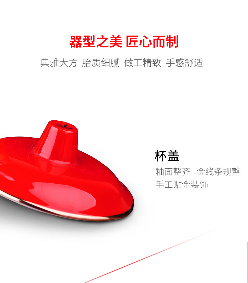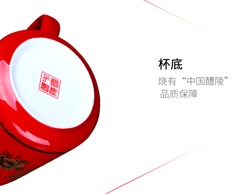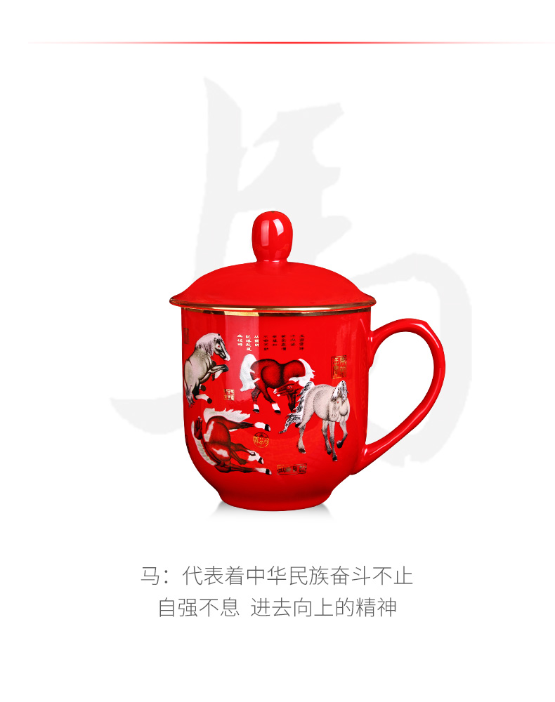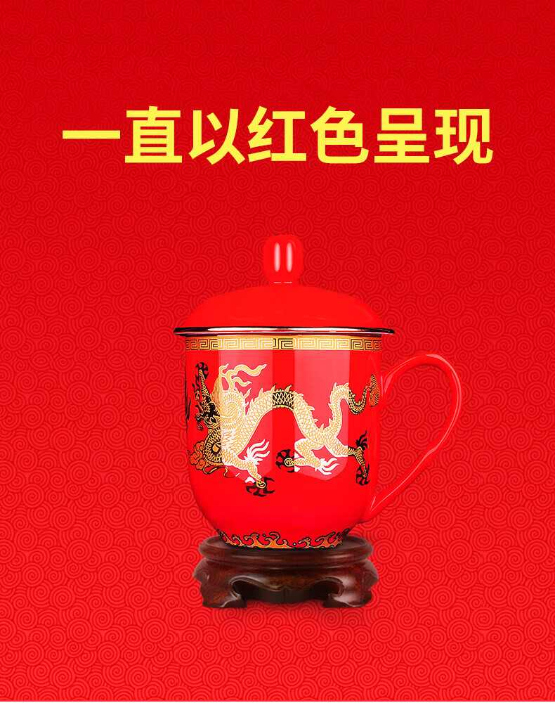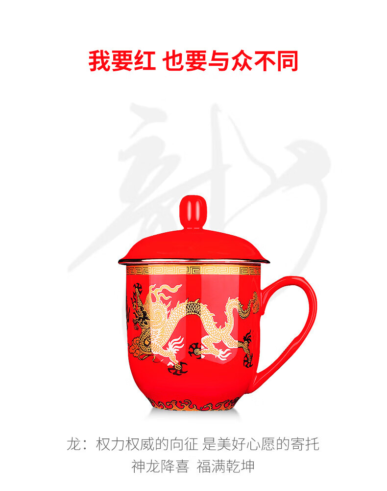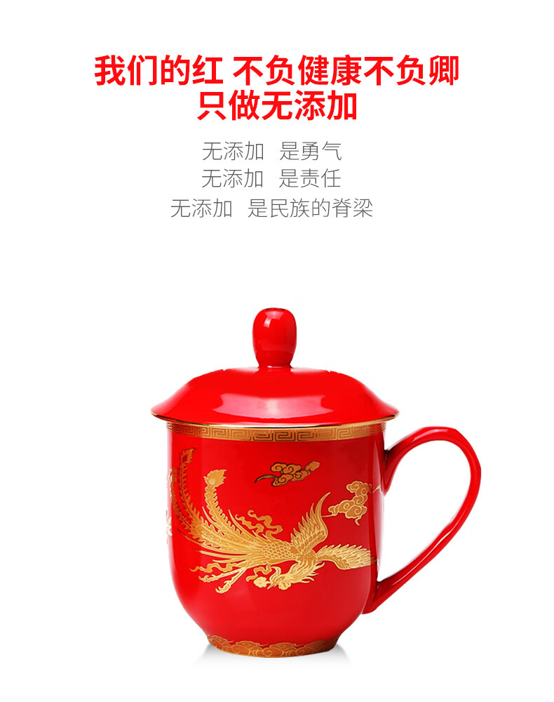 苗苗红 中国红茶杯陶瓷高端办公室家用红瓷喝水杯春节礼物礼盒 BN 【1只】凤图将军杯450ml