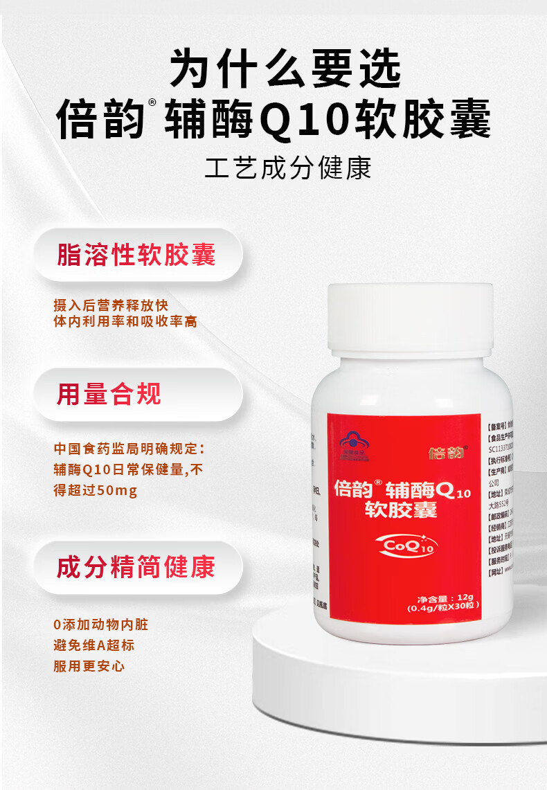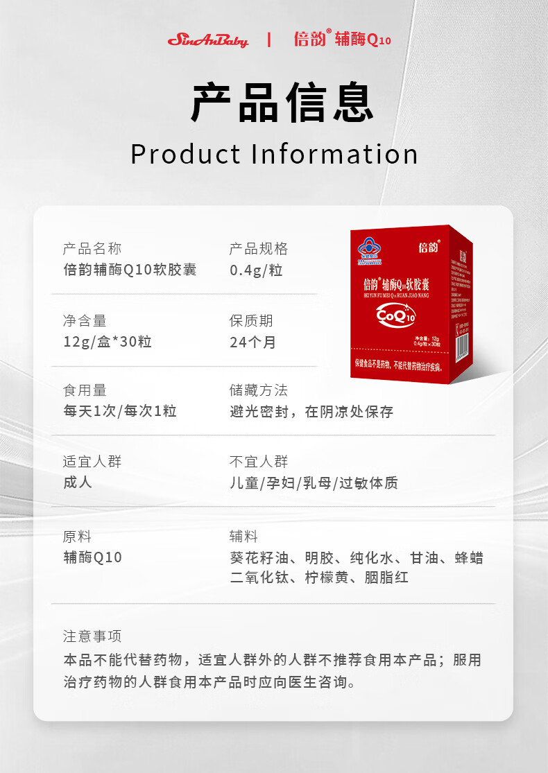 欣安贝倍韵辅酶q10软胶囊还原型男女同补备孕京自官方旗可搭配叶酸使用 1盒装 30粒*1盒 【1个月量】