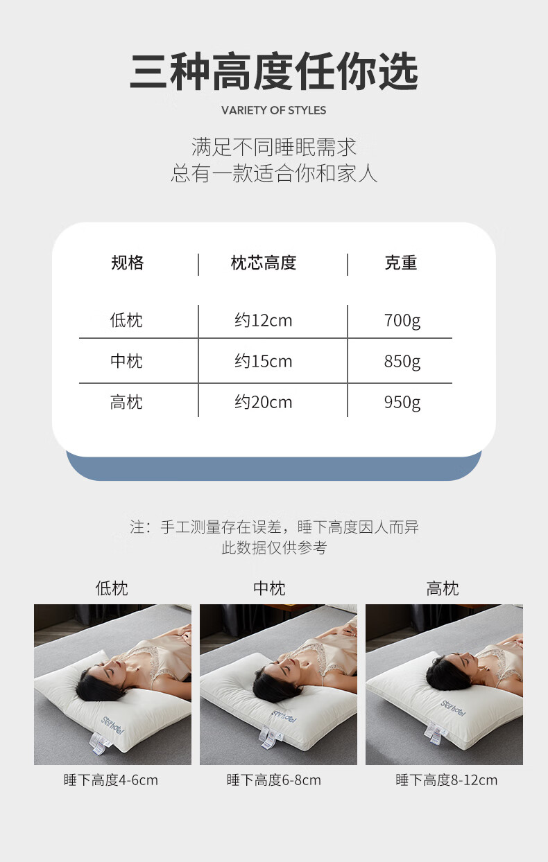 寝生活A类全棉星级酒店枕 枕头枕芯 低枕-700g A类 单只