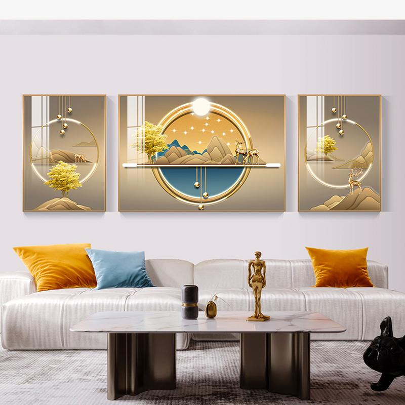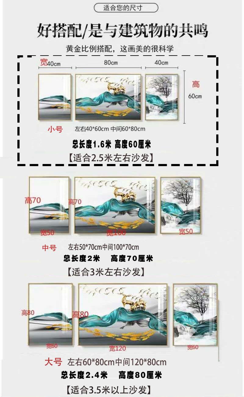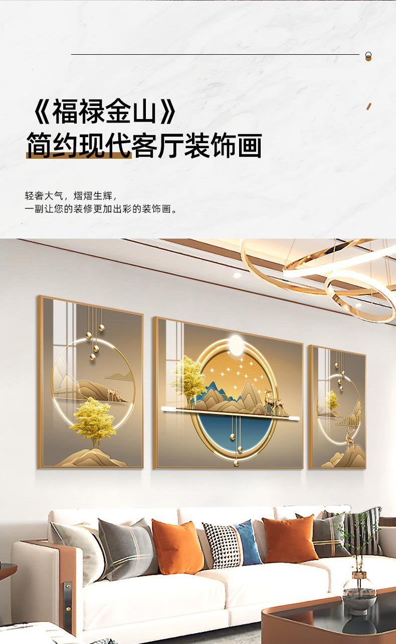 柳莺花燕现代简约客厅装饰画沙发背景墙挂画新款大气壁画三联画轻奢晶瓷画 F-万事顺遂 中套【左右50X70+中100X70】晶瓷画 免费上门按装(默发轻奢金框)铝合金