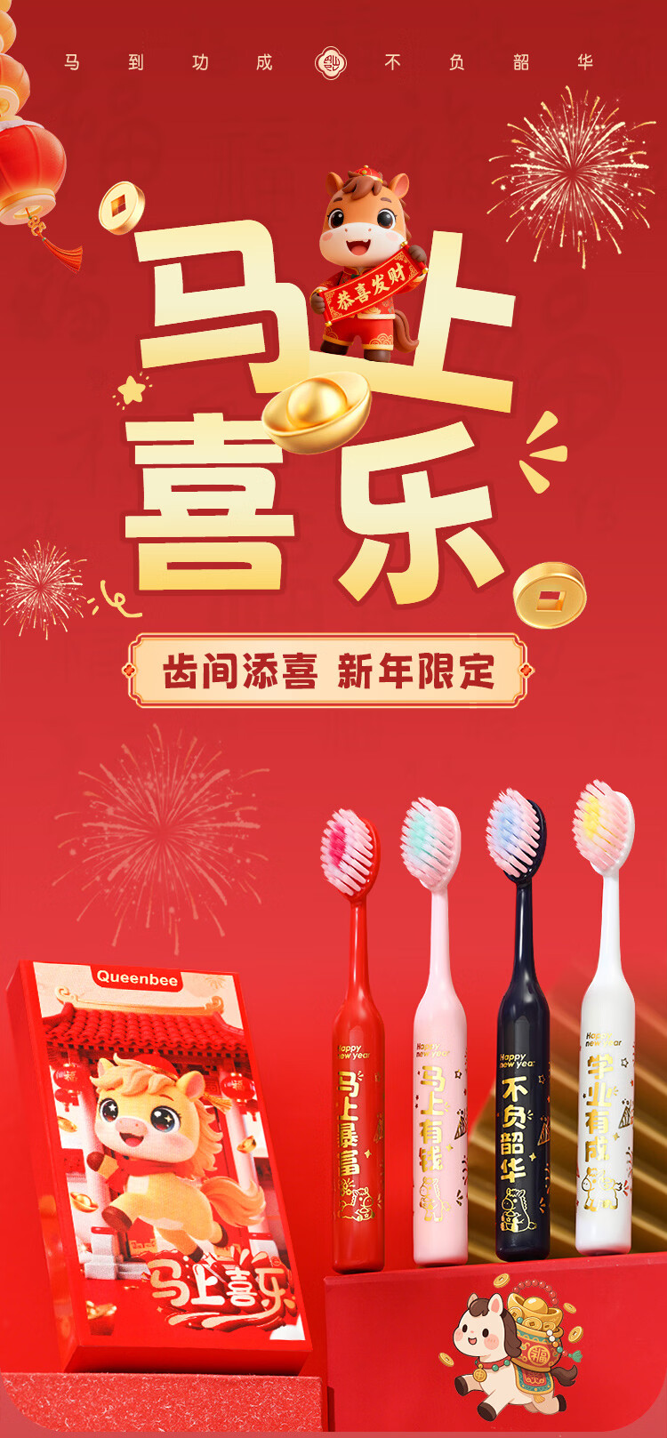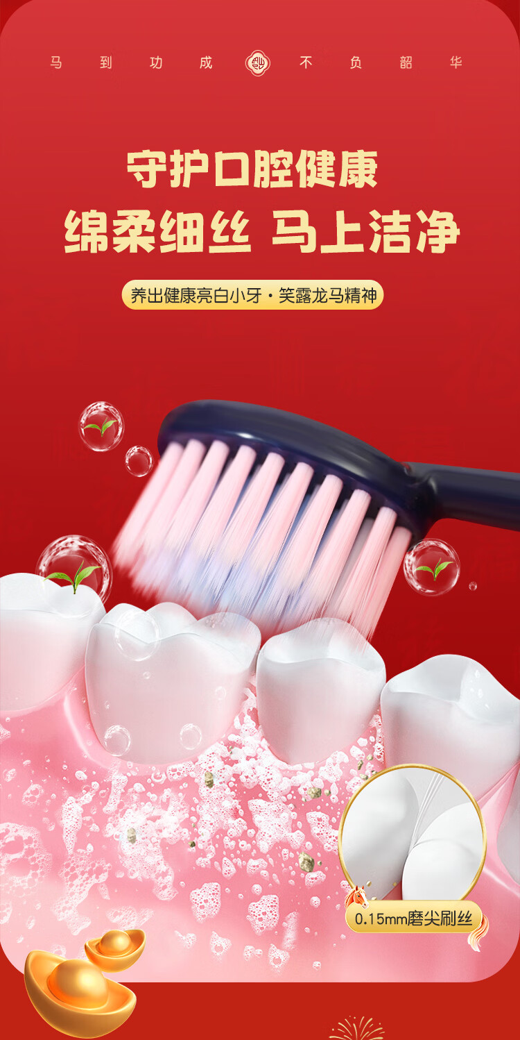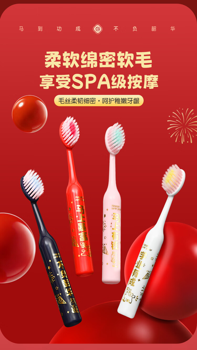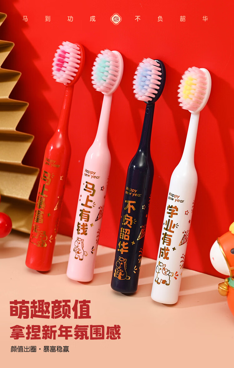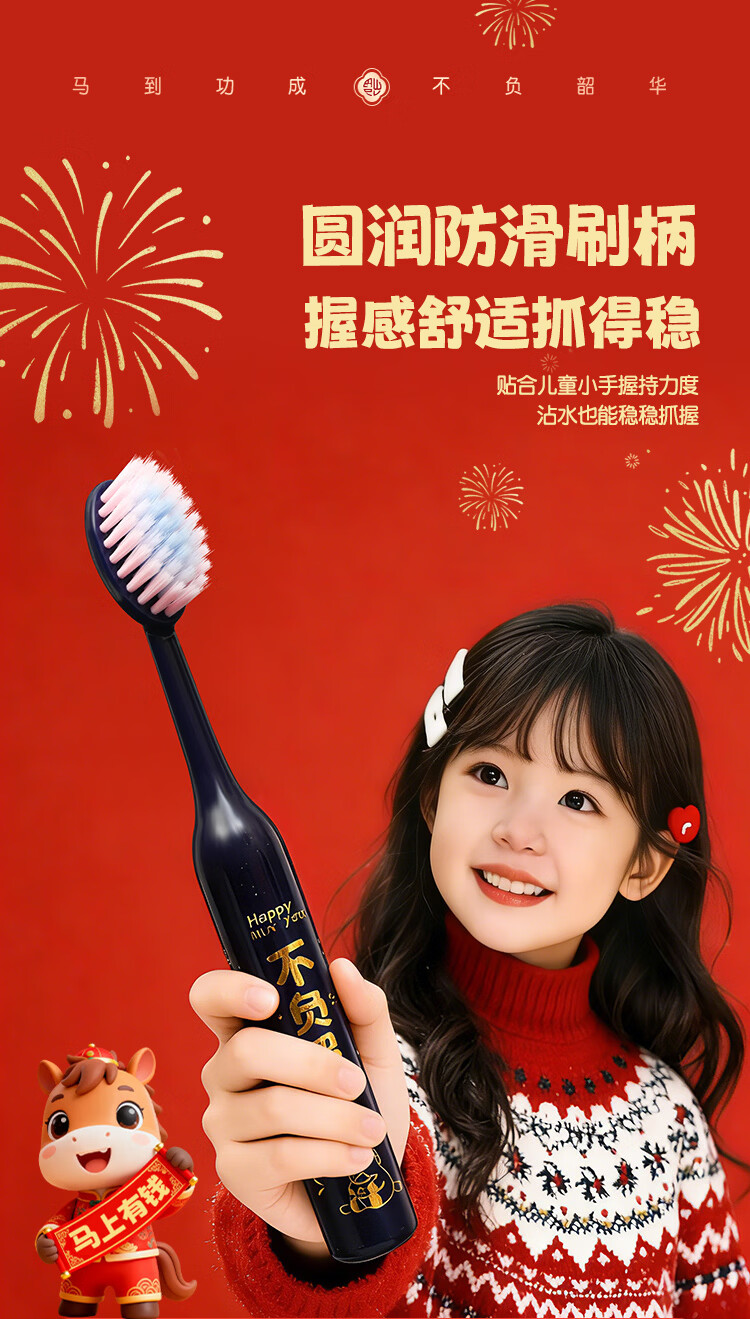 QUEENBEE【马年限量款】萌马送福儿童软毛绵柔护龈3-18岁圆润牙刷礼盒装 【萌马送福】儿童牙刷*8支