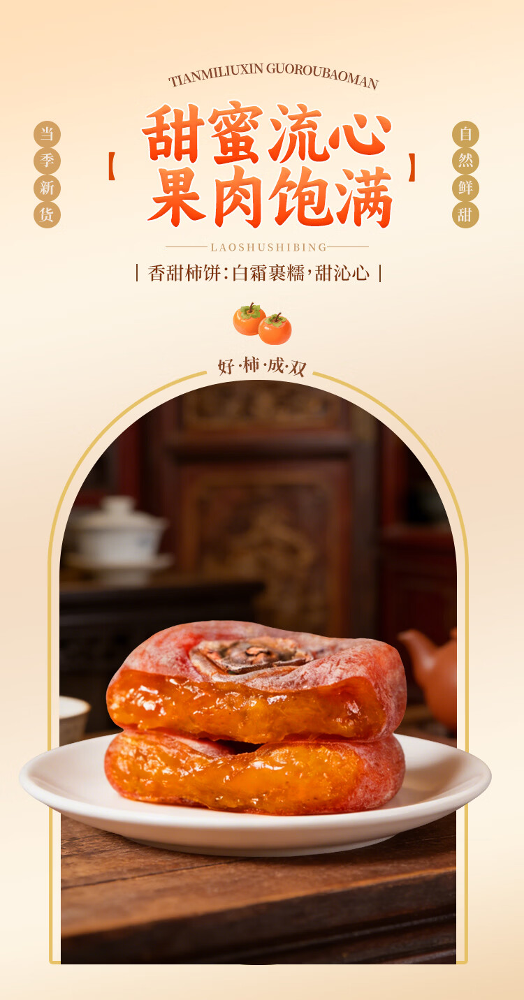流心柿饼吊柿饼子霜吊独立包装农家自制办公室休闲零食柿饼 独立包装圆饼2斤