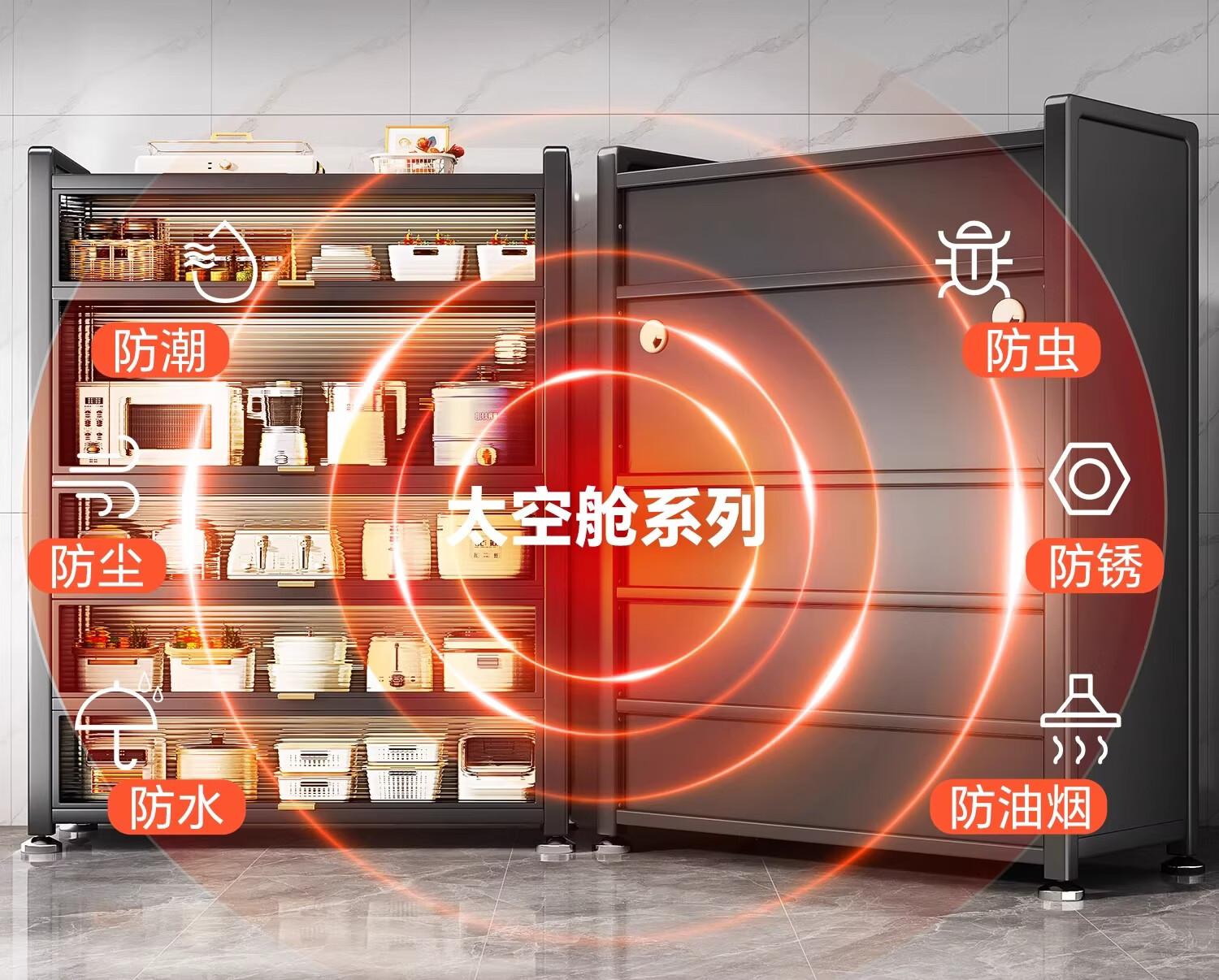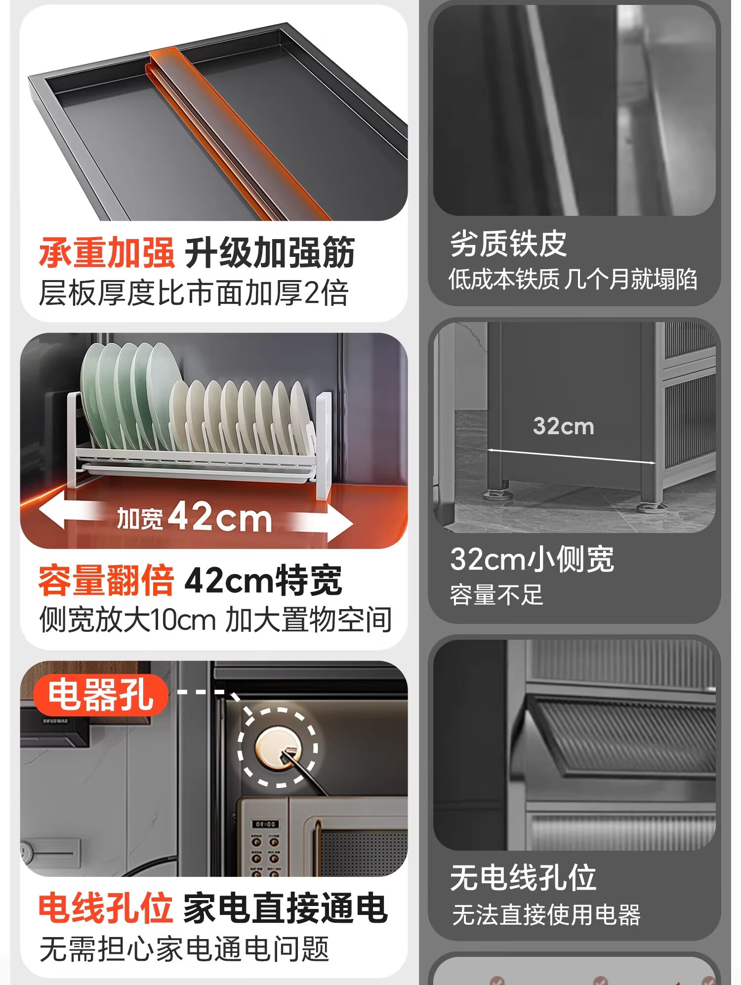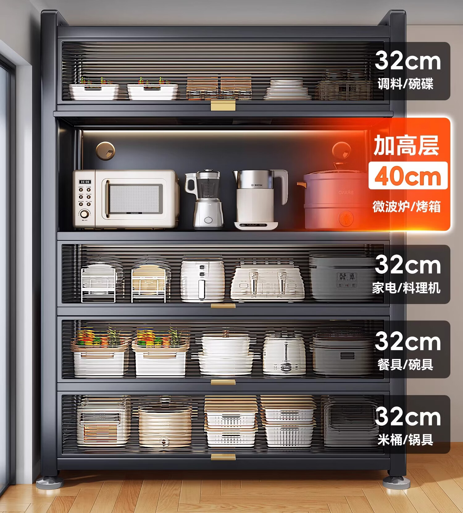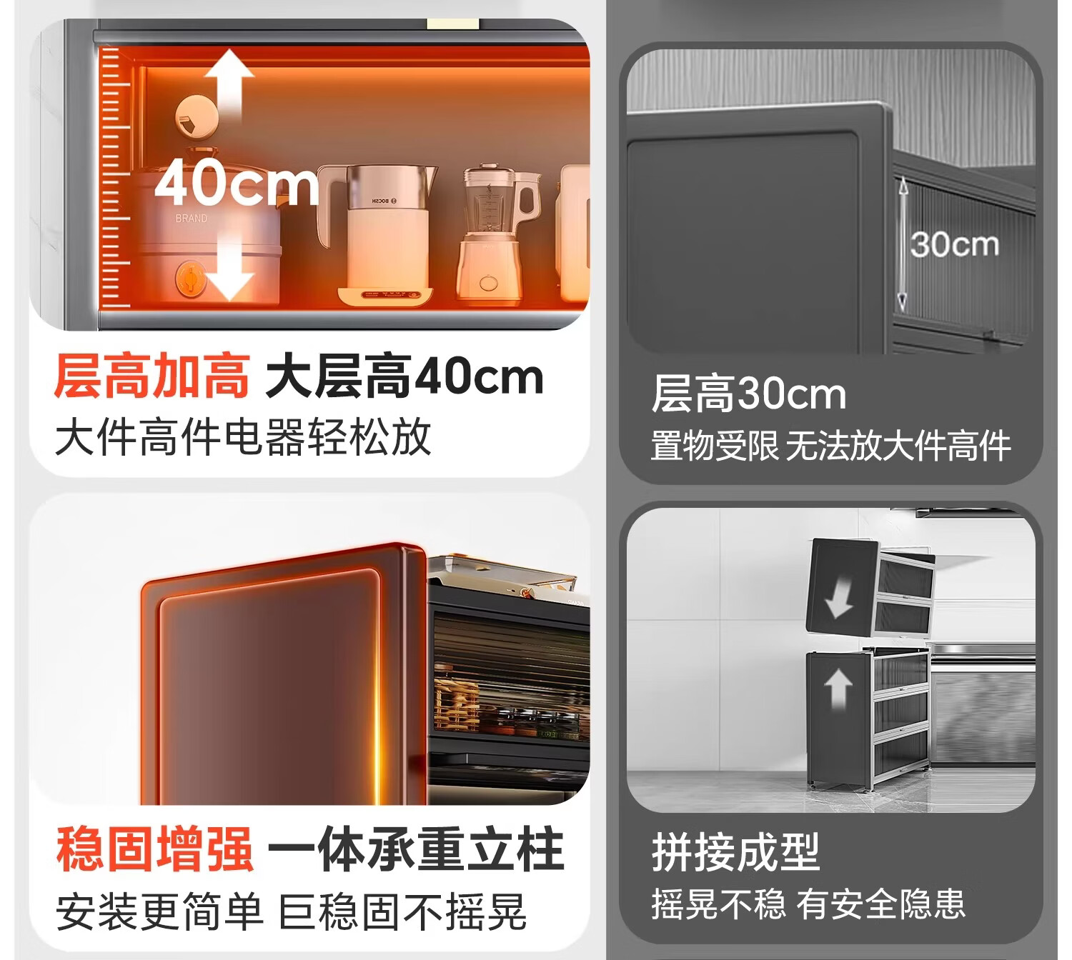 ZSVIP厨房置物架落地多层架子收纳柜子微波炉家用带门多功能橱柜储物柜 [包安装]4层白 长60宽44 加高