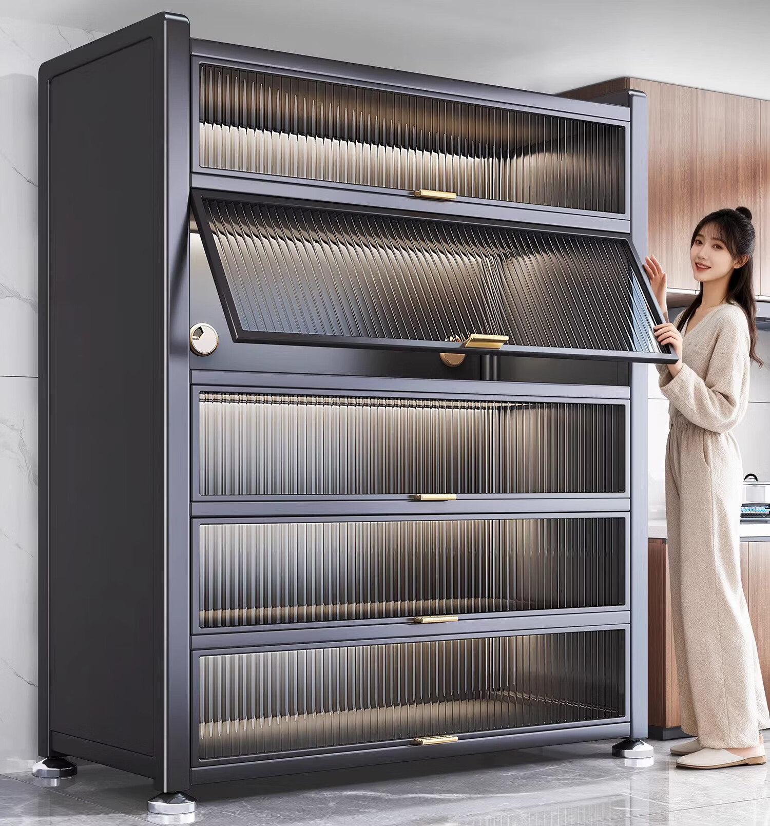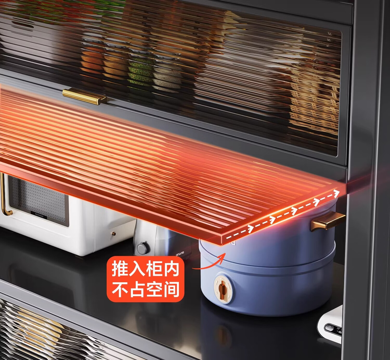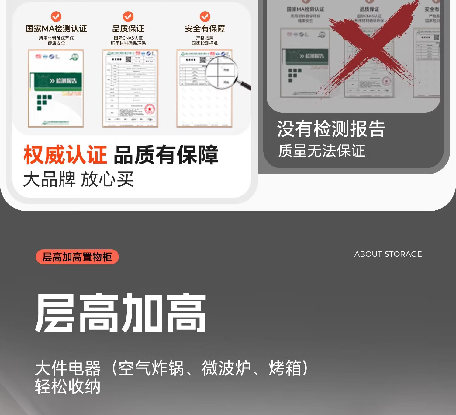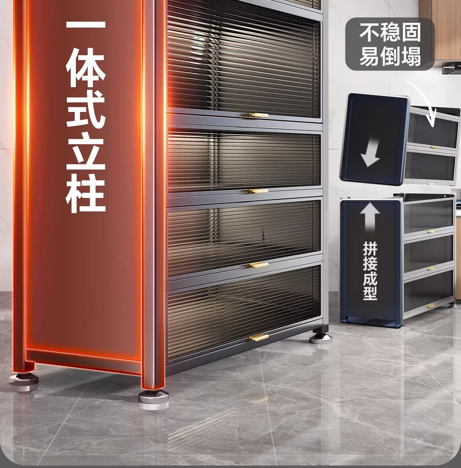 ZSVIP厨房置物架落地多层架子收纳柜子微波炉家用带门多功能橱柜储物柜 [包安装]4层白 长60宽44 加高