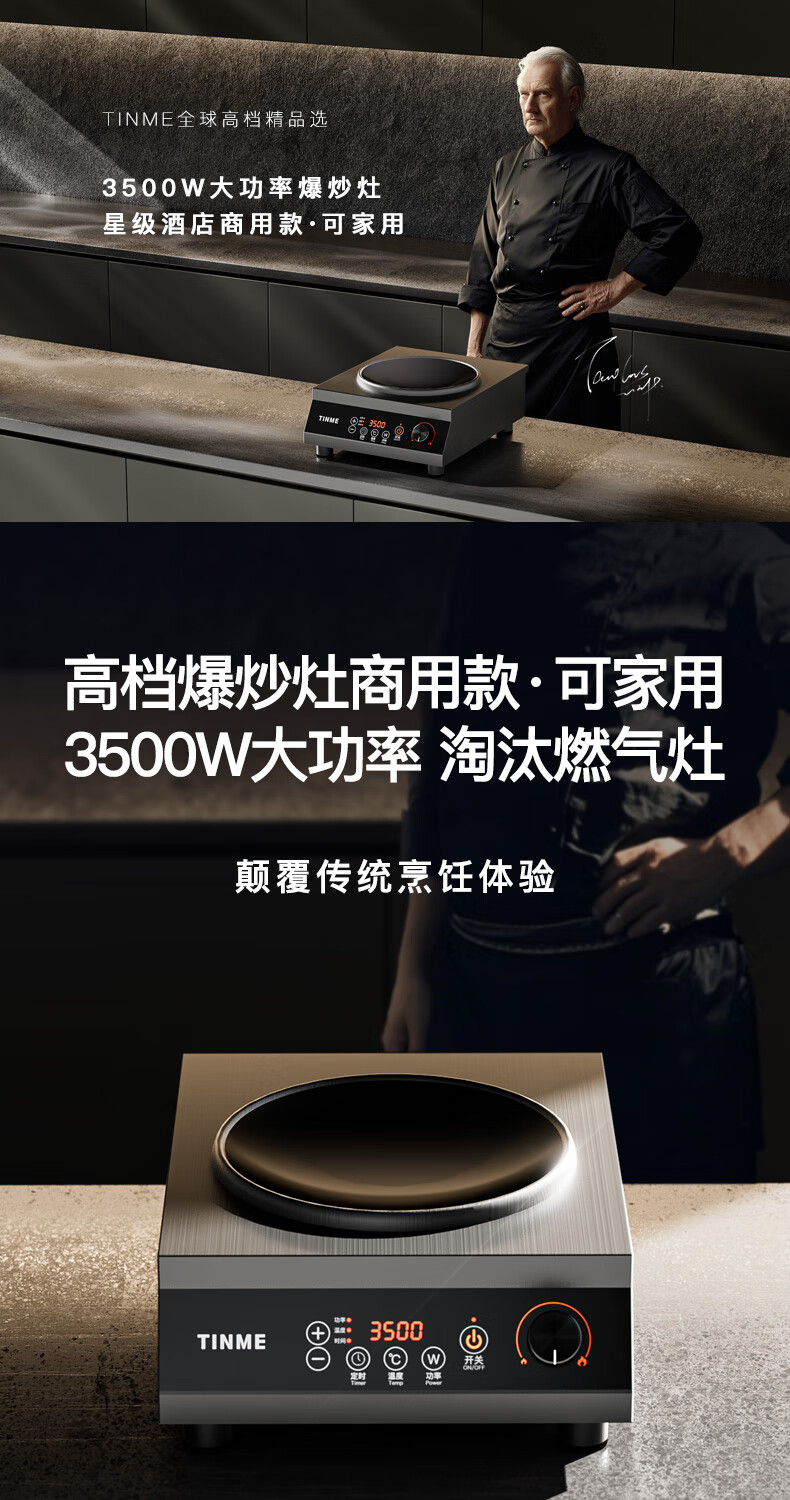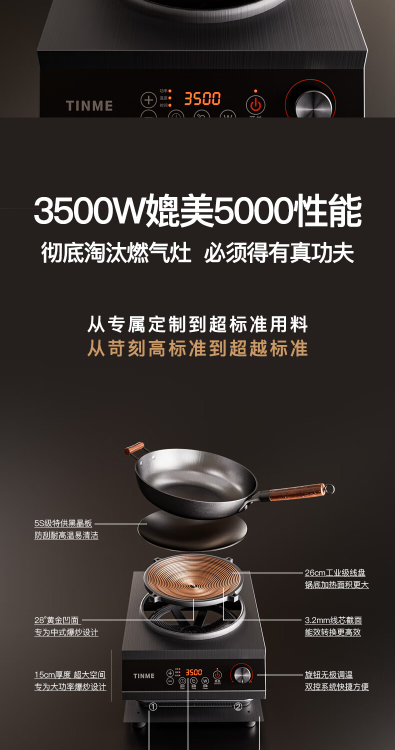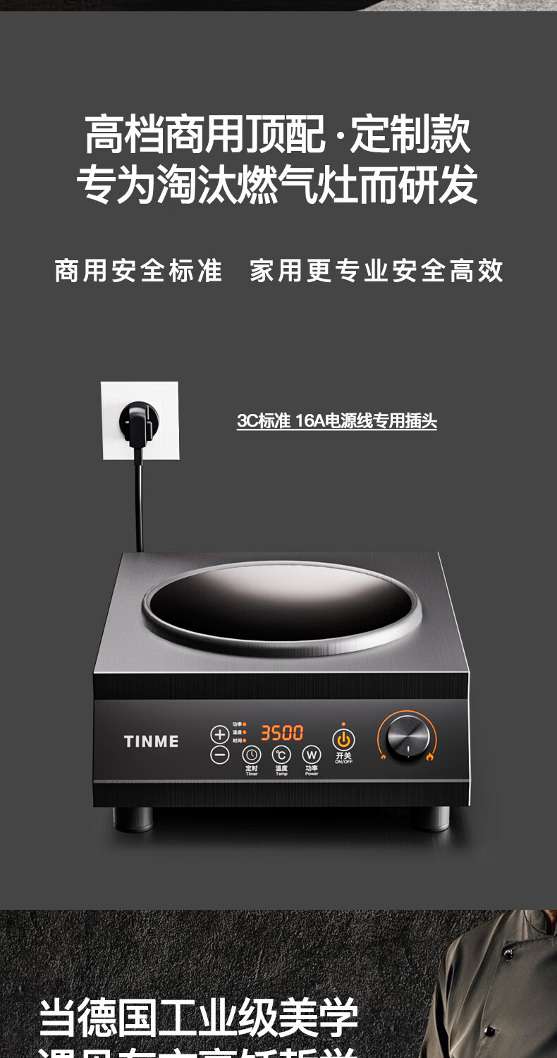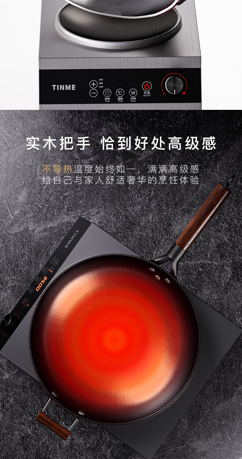 TINME德国凹面电磁炉炒菜锅一体灶家用款大功率3500W多功能猛火定时爆炒菜弧面商用厨房节能烹饪电炒锅 【炒锅汤锅套装/可定时/多档调节】黑晶
