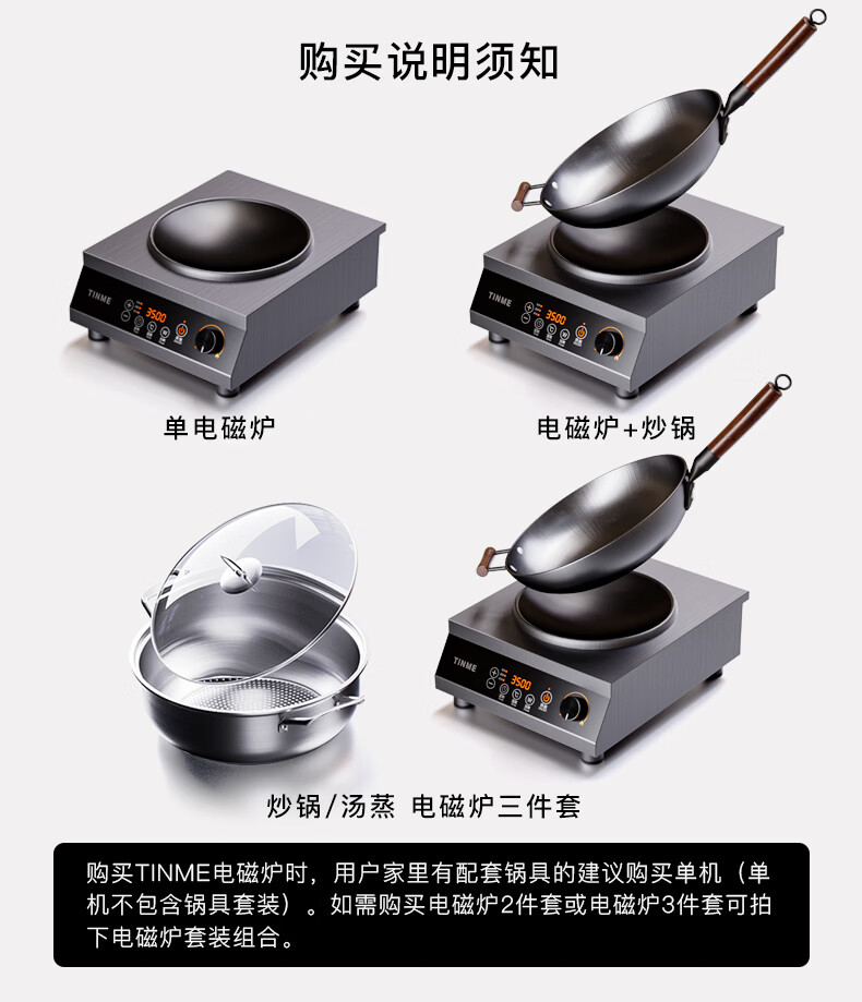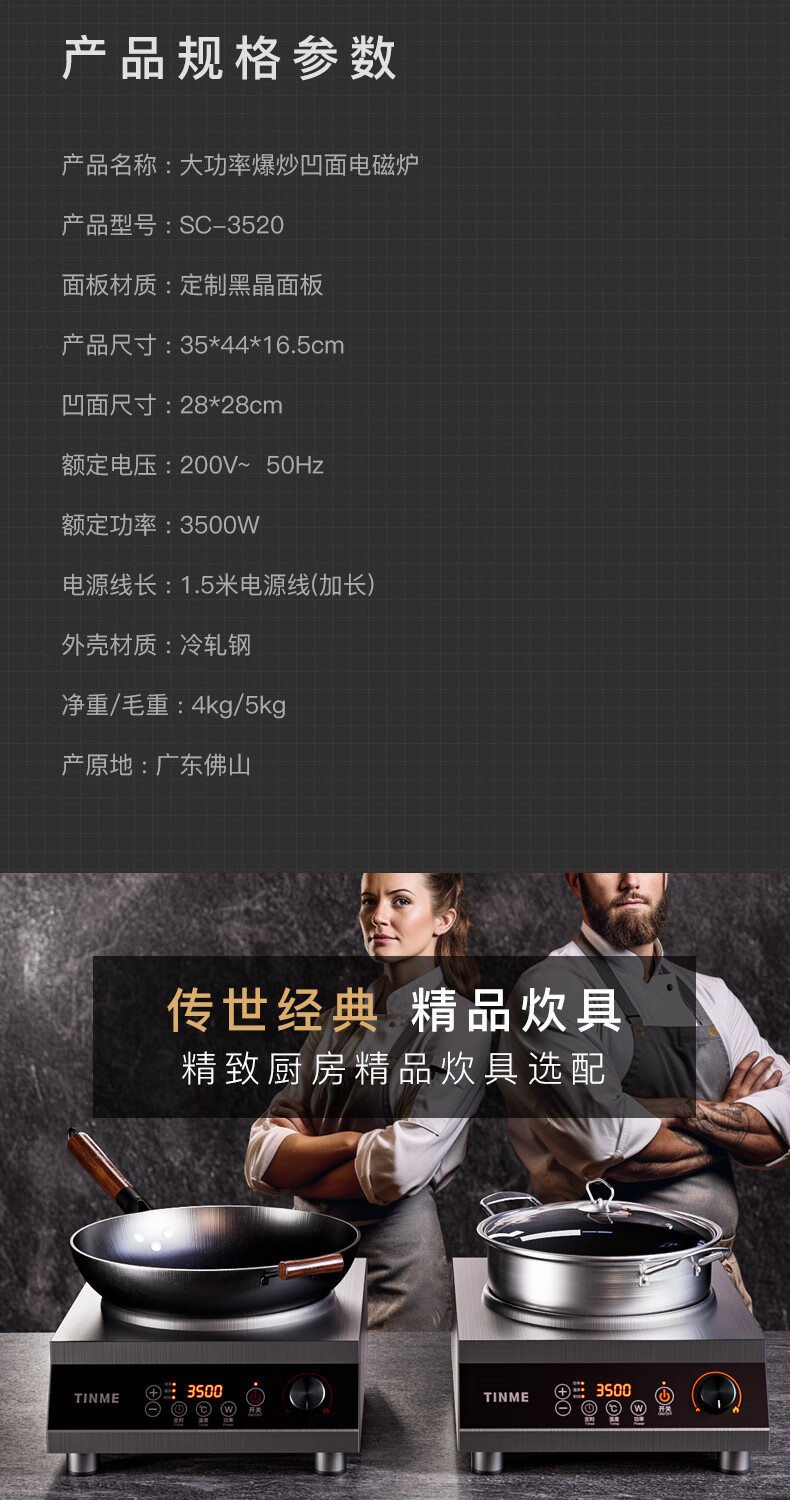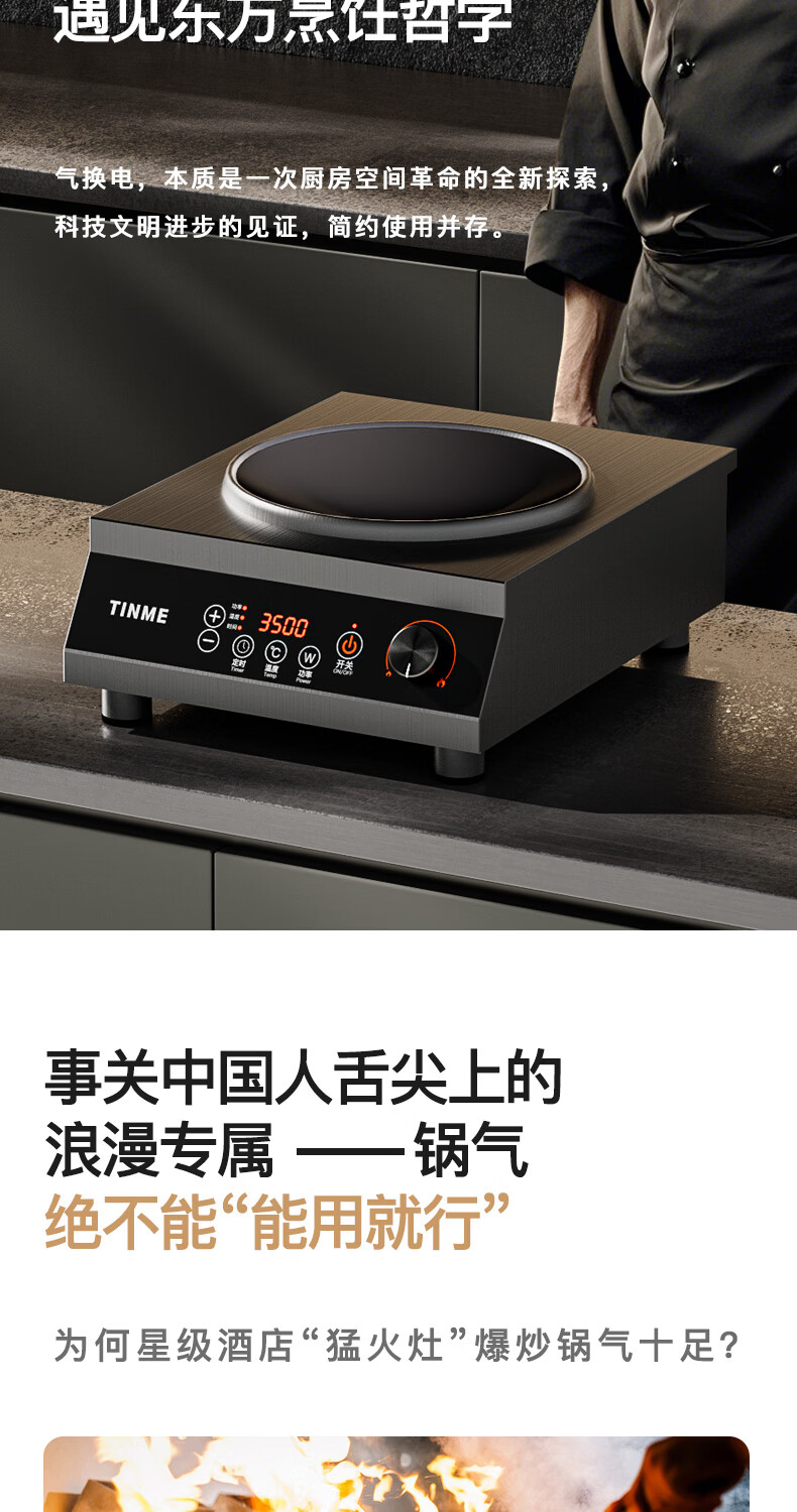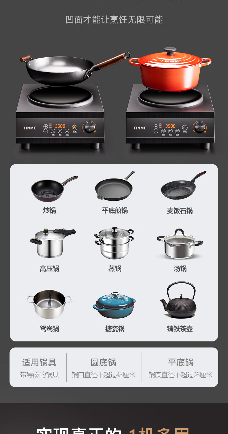 TINME德国凹面电磁炉炒菜锅一体灶家用款大功率3500W多功能猛火定时爆炒菜弧面商用厨房节能烹饪电炒锅 【炒锅汤锅套装/可定时/多档调节】黑晶