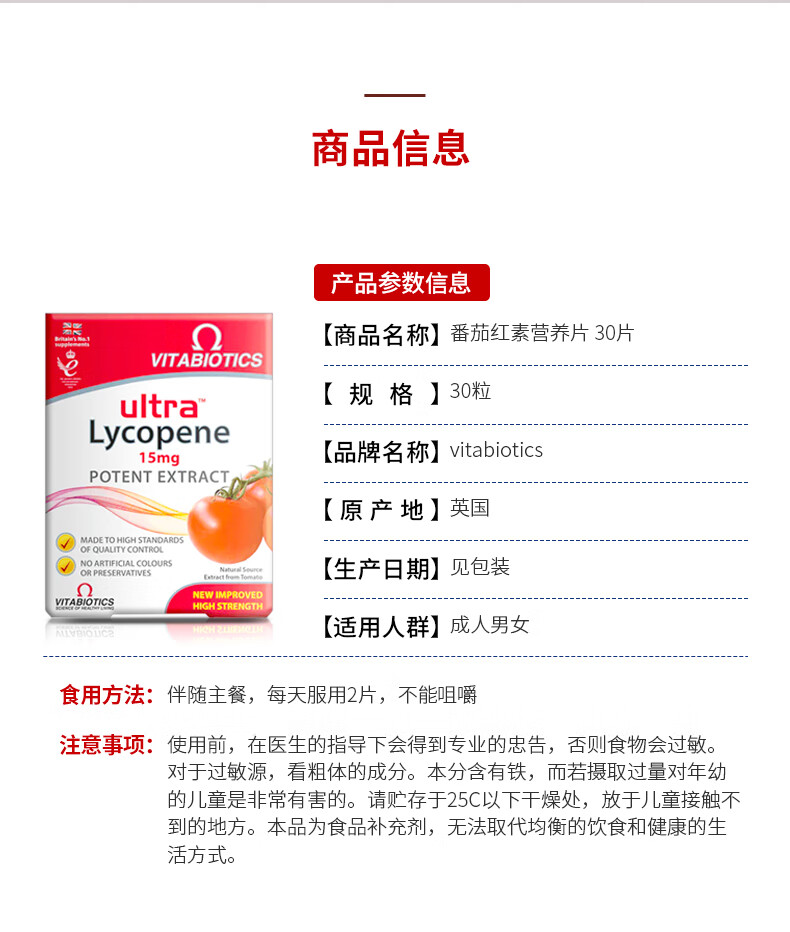 薇塔贝尔番茄红素男士备孕 男性前列健康 抗氧化成人中老年 高含量番茄红素30片