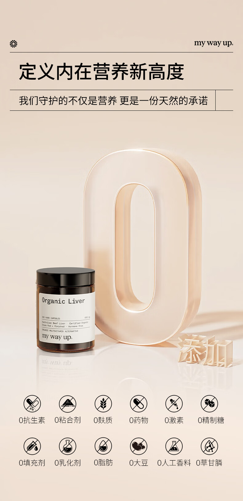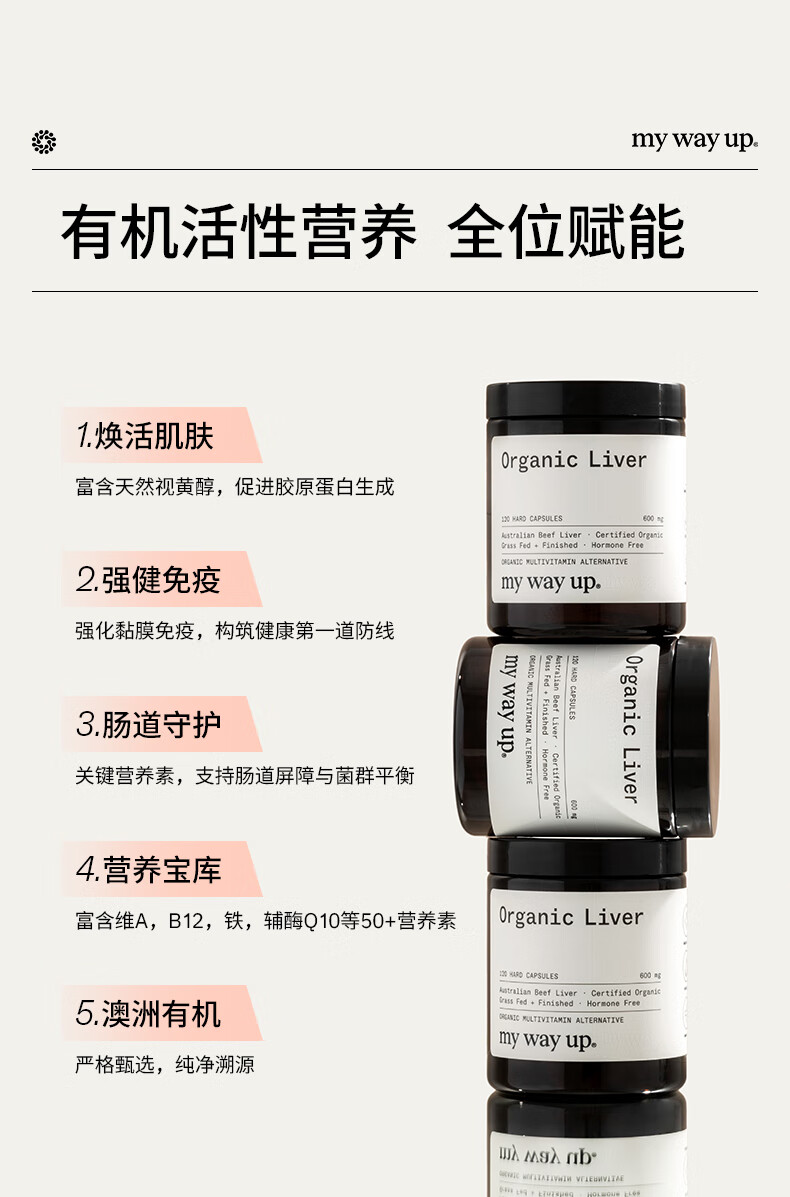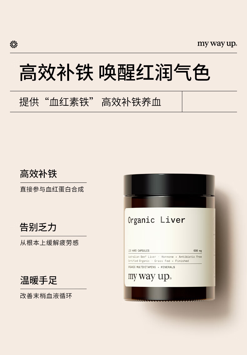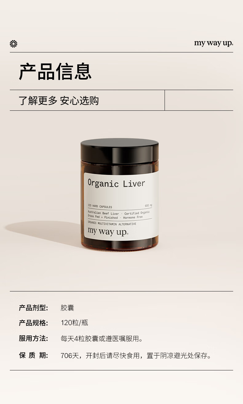My Way Up有机牛肝营养胶囊草饲牛肝粉复合维生素膳食补充120粒