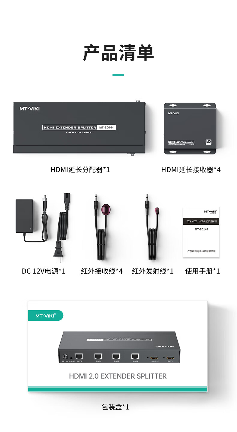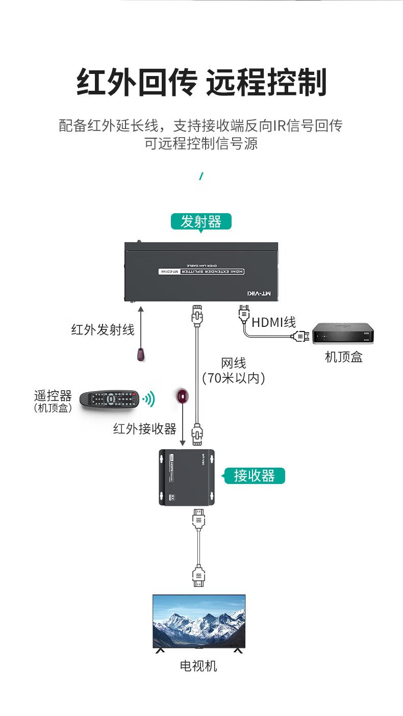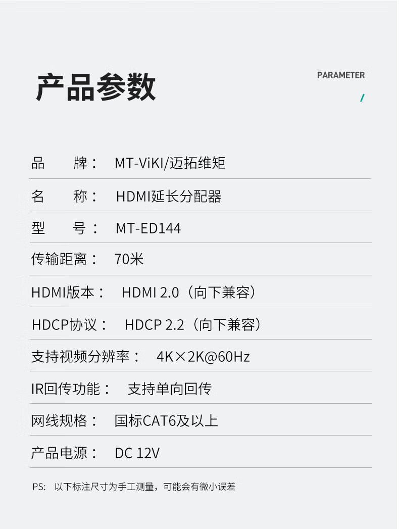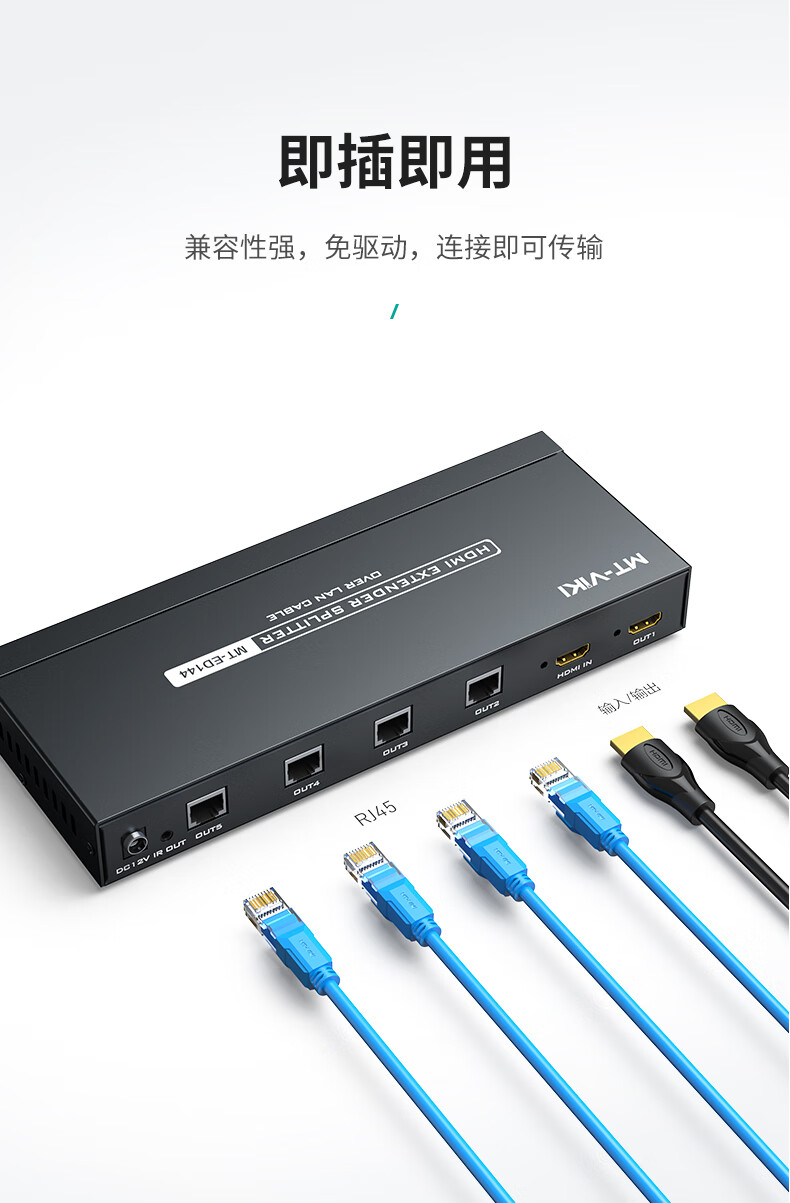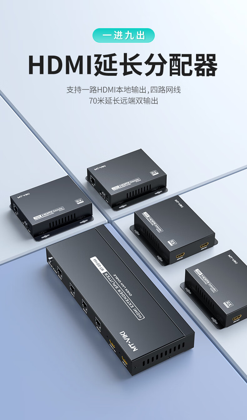 迈拓维矩(MT-viki)HDMI延长器70米1发4收4K60hz高清转网线延长传输器POC供电 电脑监控视频放大器 MT-ED144