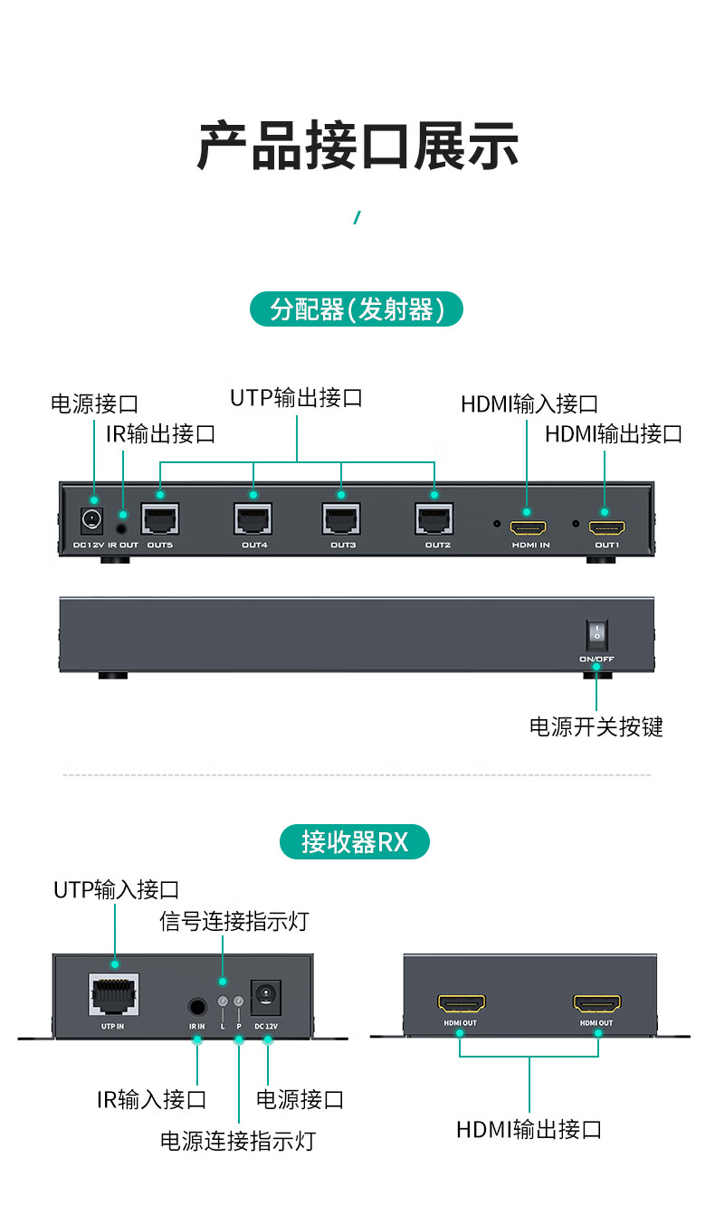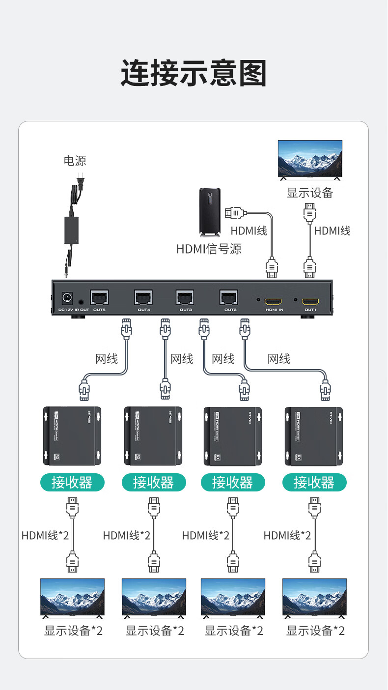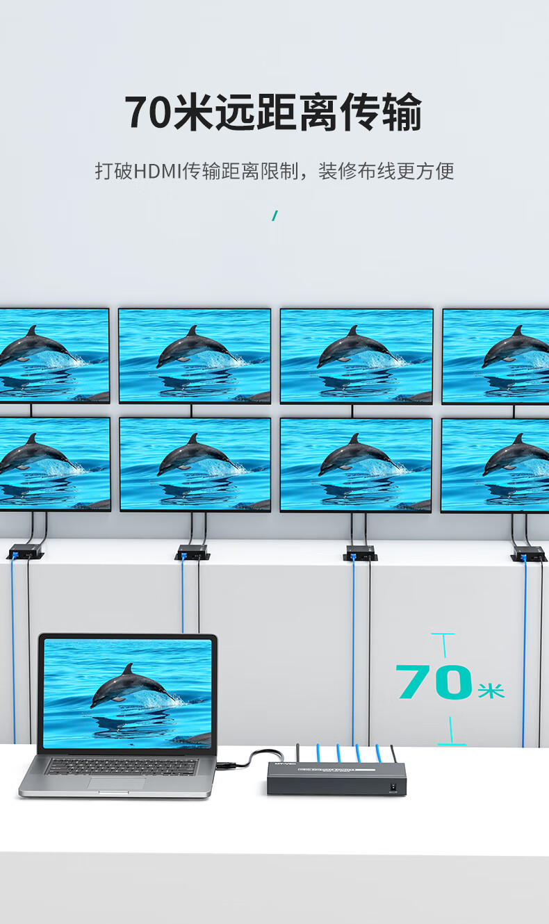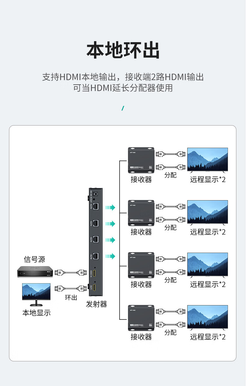 迈拓维矩(MT-viki)HDMI延长器70米1发4收4K60hz高清转网线延长传输器POC供电 电脑监控视频放大器 MT-ED144