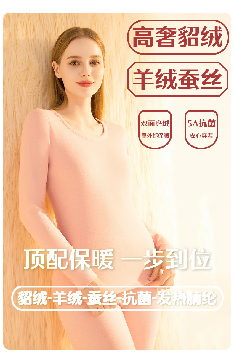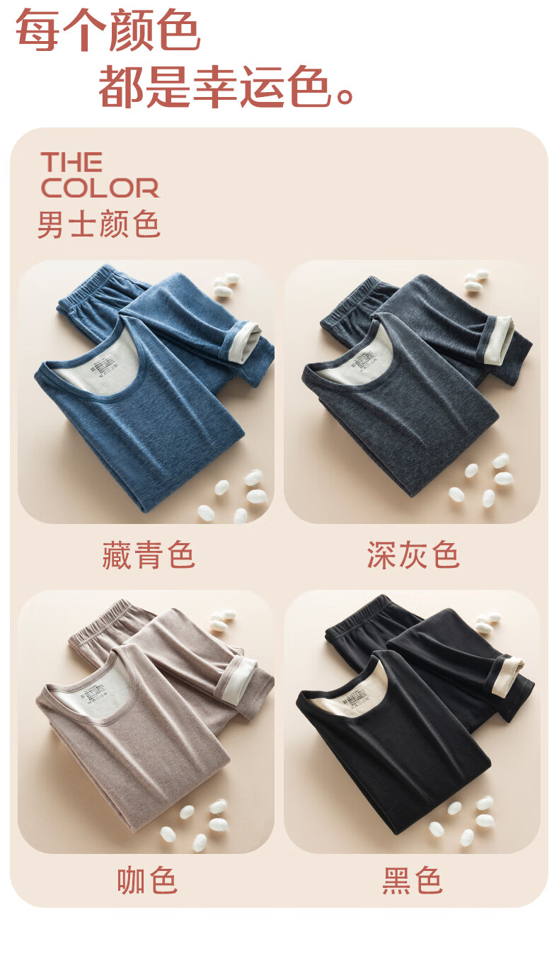 健将羊绒蚕丝保暖套装情侣款高奢貂绒男女秋衣修身圆领发热腈纶 【男款】藏青 XL