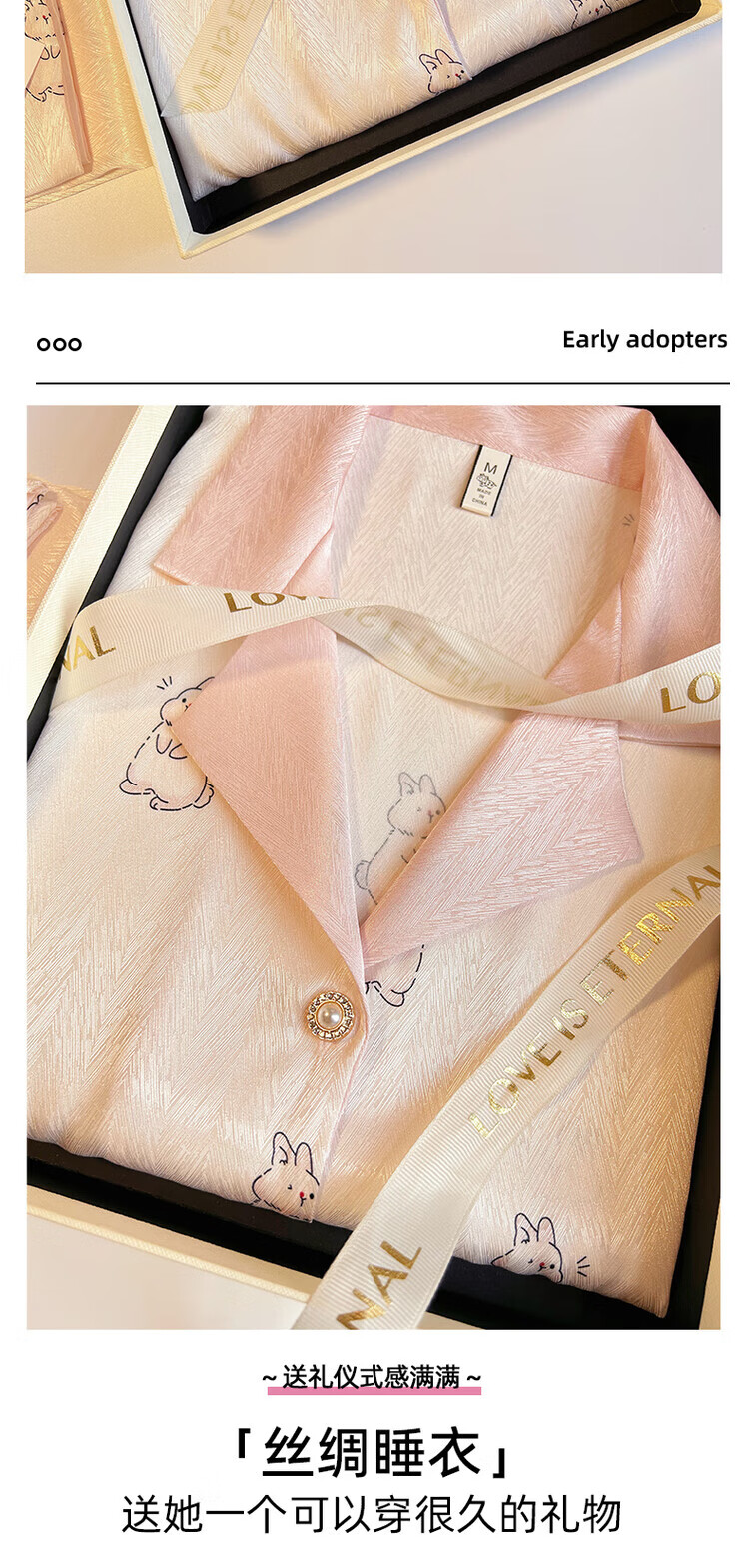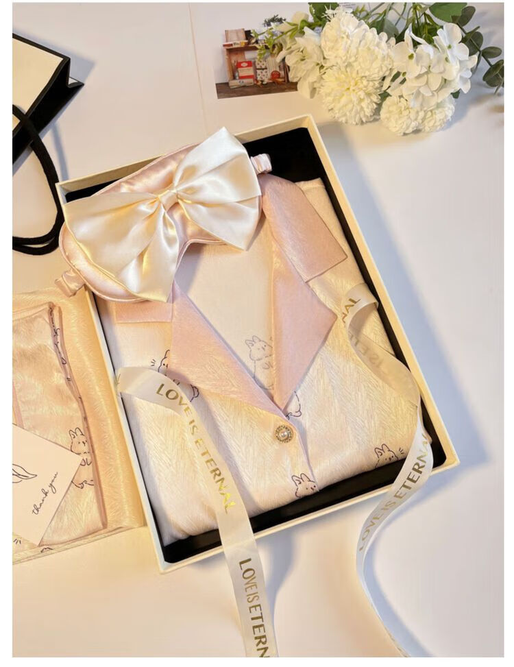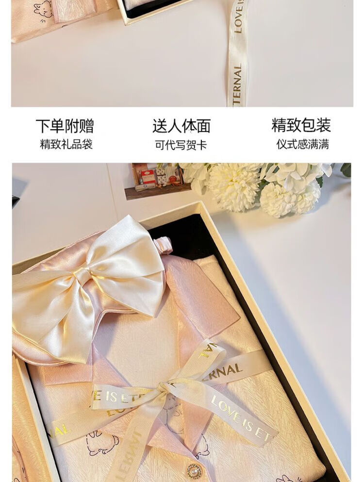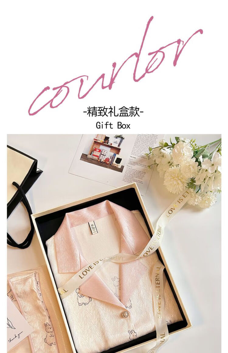 木季云(MU JIYUN)七夕情人节送女朋友礼物睡衣礼盒装送闺蜜生日女生走心的冰丝定制 L萌兔-短袖三件套礼盒 100-120