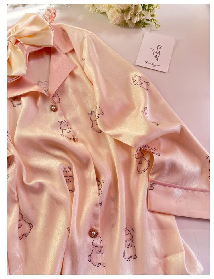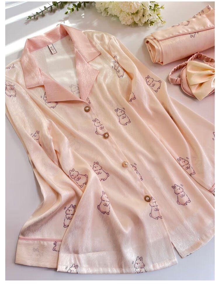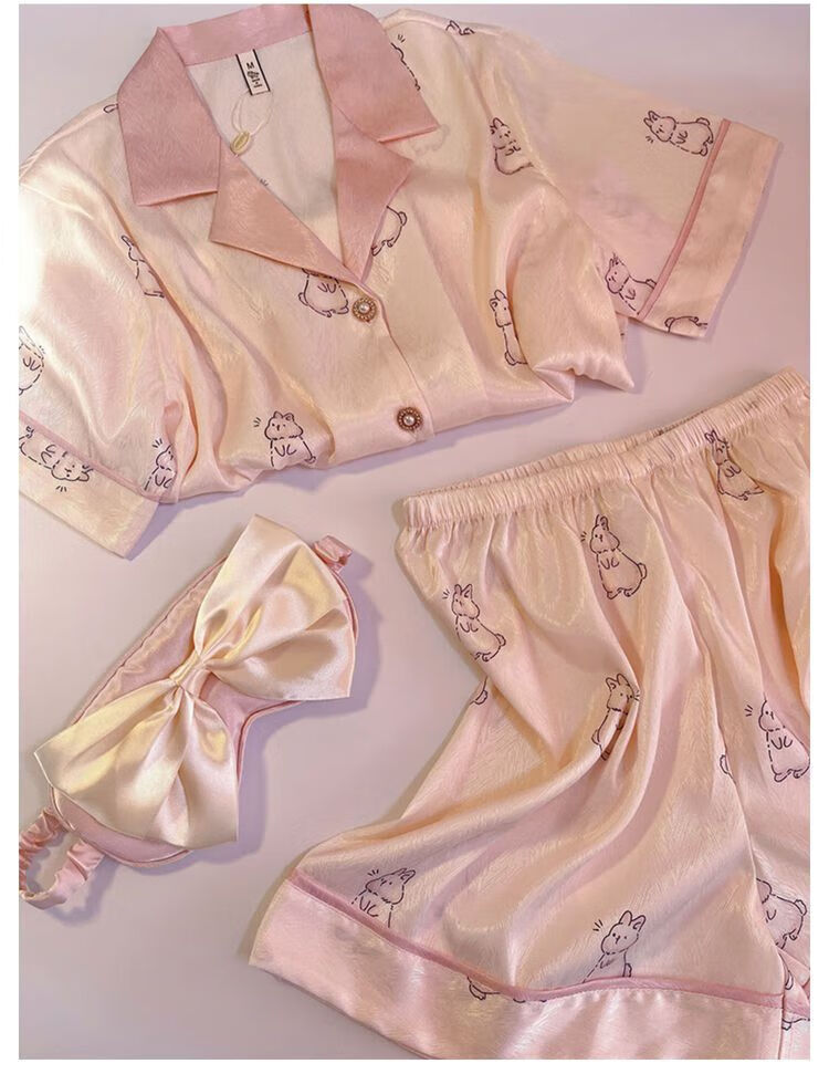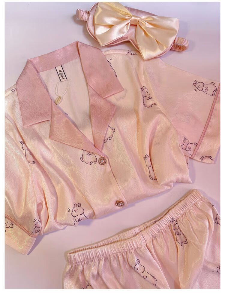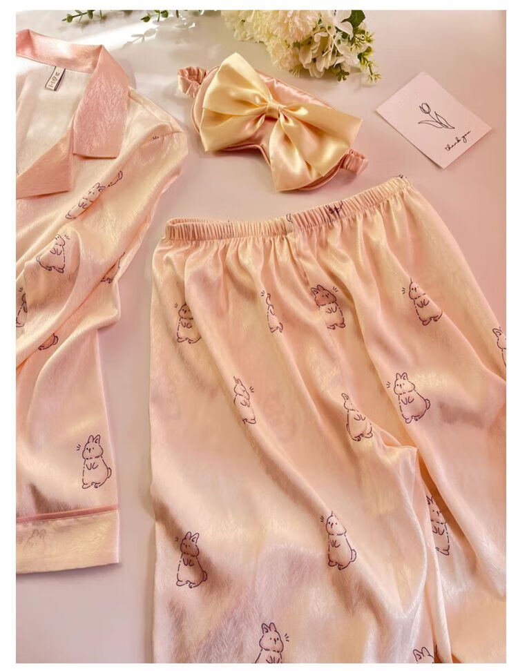 木季云(MU JIYUN)七夕情人节送女朋友礼物睡衣礼盒装送闺蜜生日女生走心的冰丝定制 L萌兔-短袖三件套礼盒 100-120