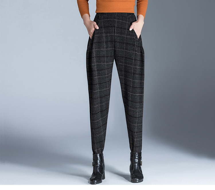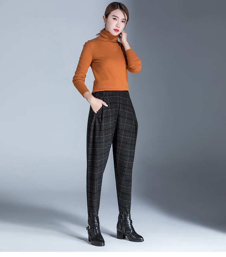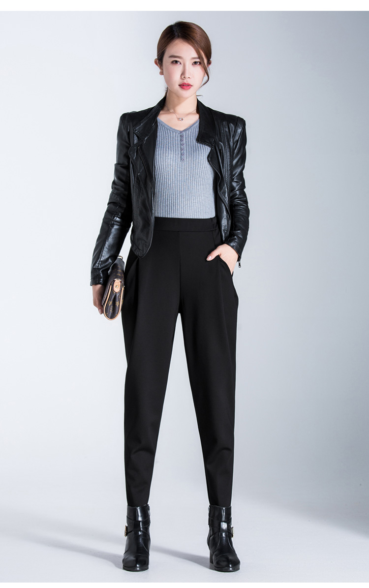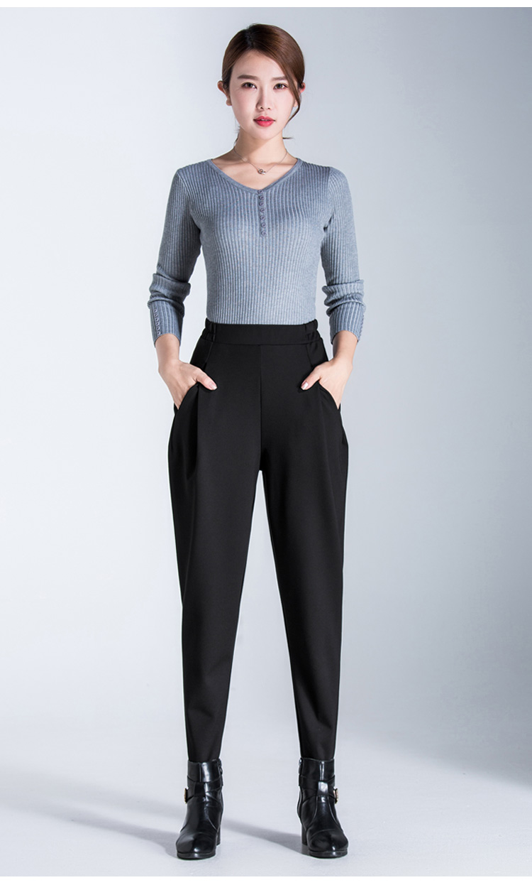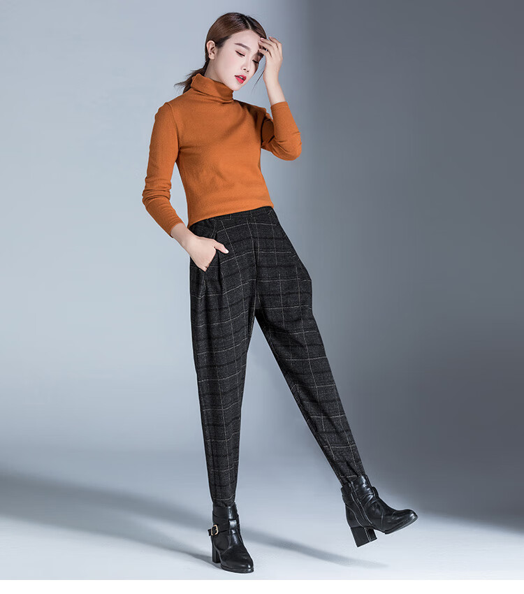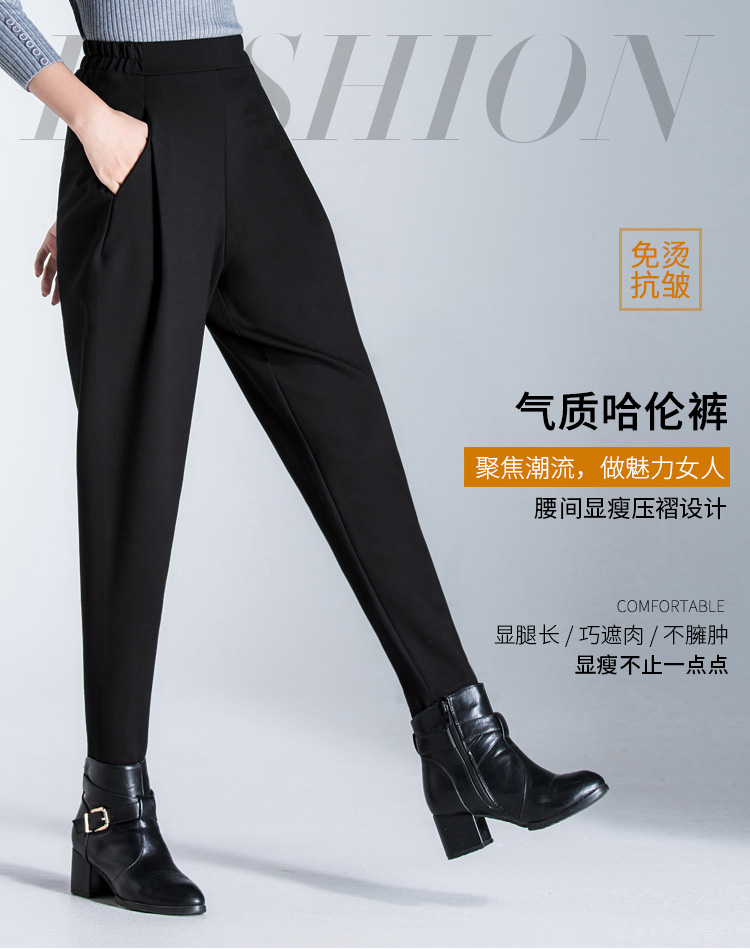 布琳达哈伦裤女九分萝卜裤2025春秋款宽松加长休闲裤显瘦松紧腰小脚裤 黑色【长裤-冬季加绒款】 2XL