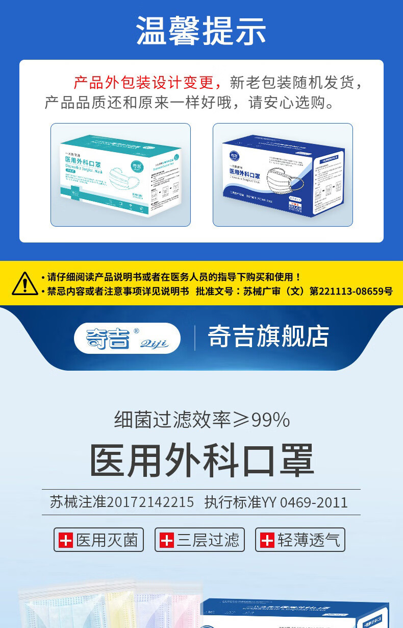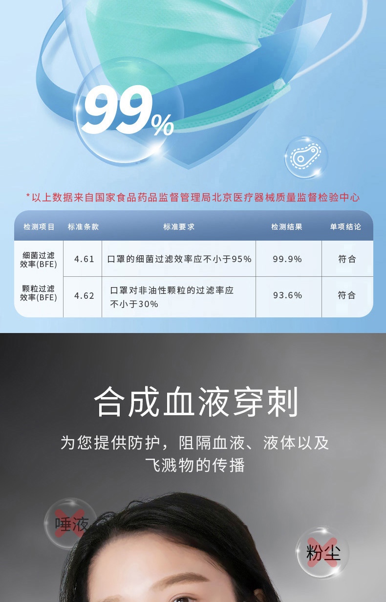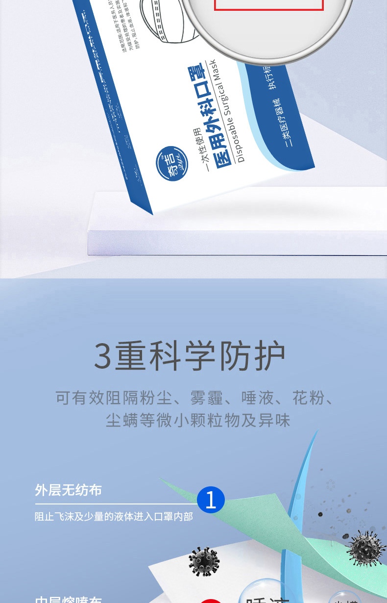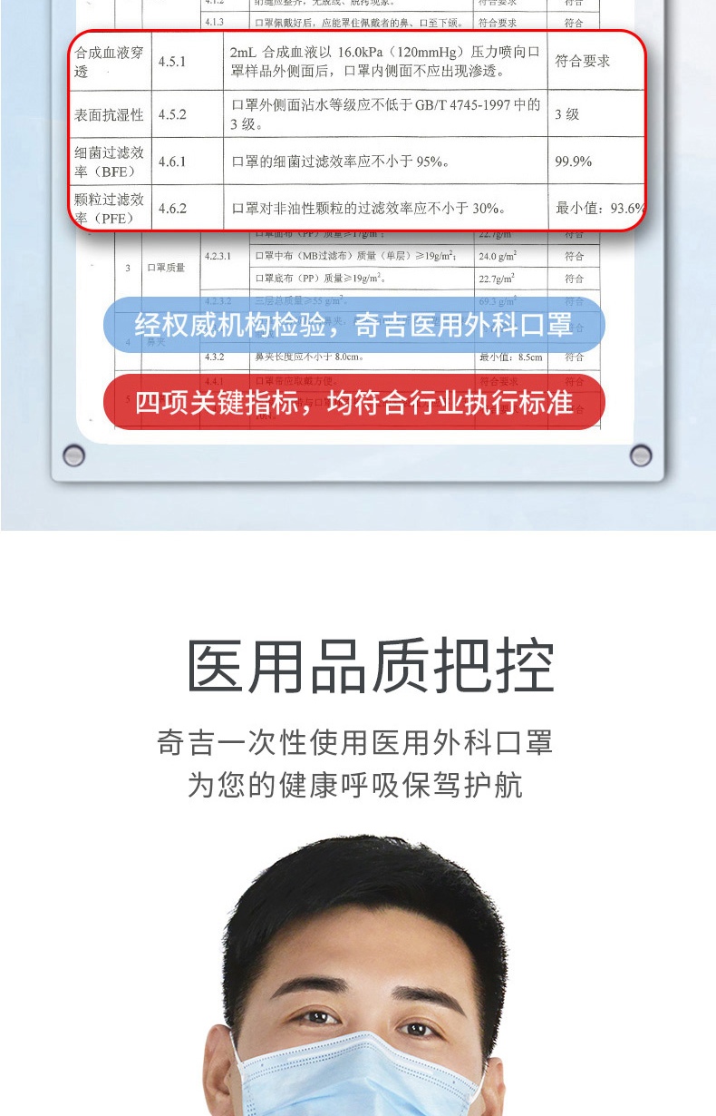 奇吉奥健一次性使用医用外科口罩防护甲流飞沫轻薄透气防晒灭菌型医院 灭菌级医用外科口罩【成人-绿】50片/盒(独立装)