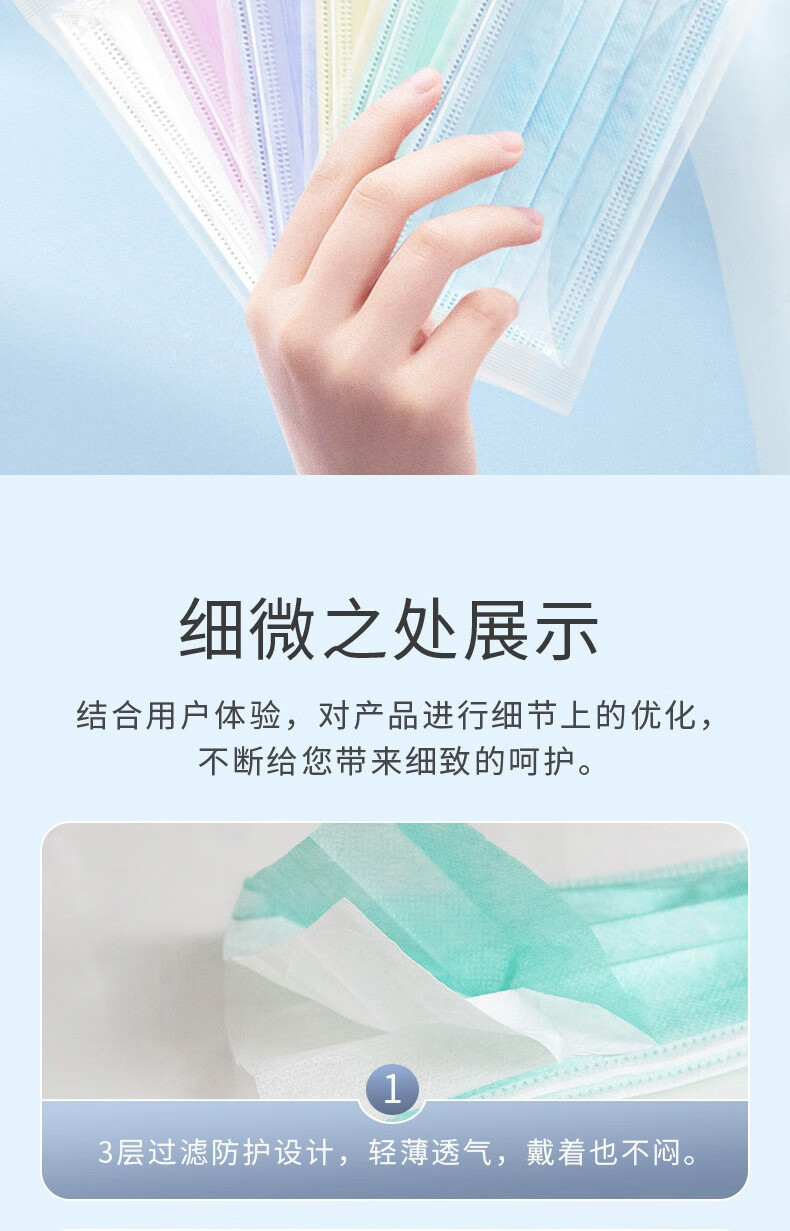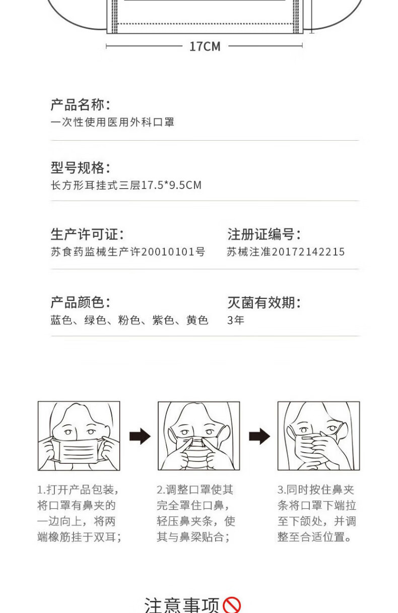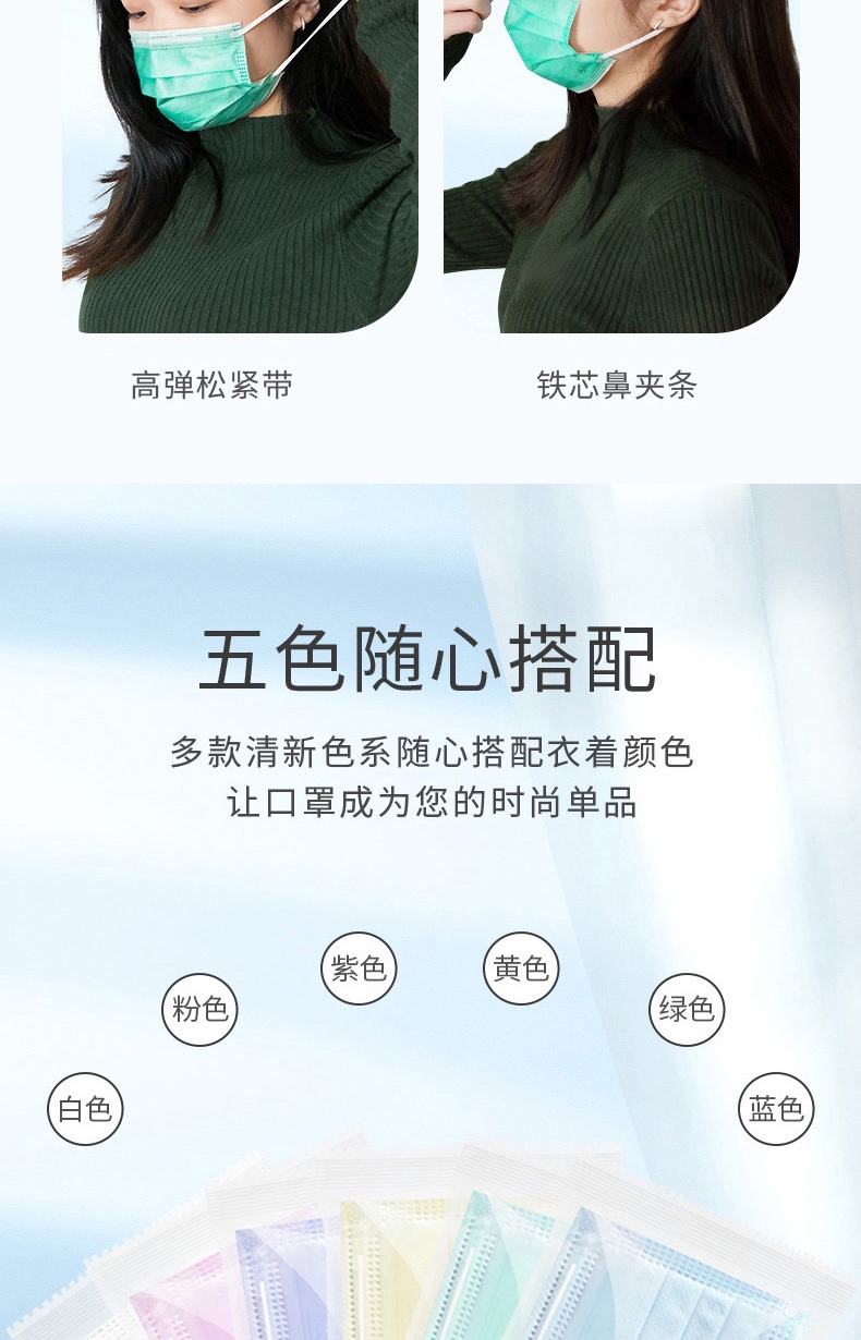 恒助白色彩色耳带医用外科口罩一次性三层防护透气医用非灭菌过滤 成人(独立10片装)100片