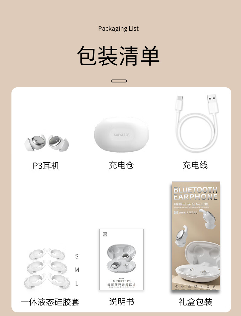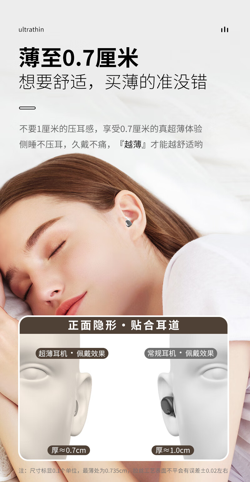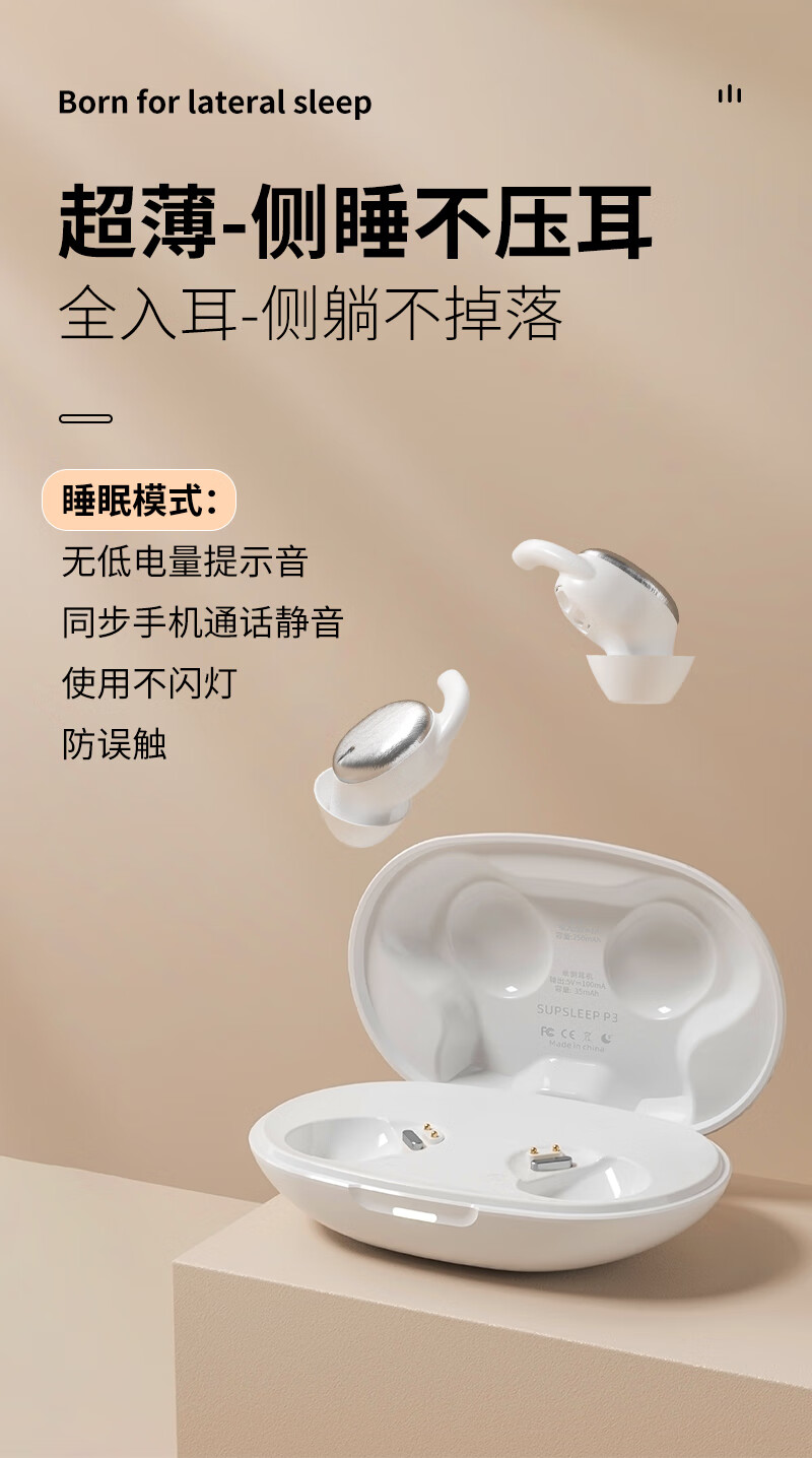 HOAXEE迷你蓝牙耳机入耳式超小型隐形睡眠超薄睡觉侧卧专用无线隔音降噪长续航音质前十运动跑步不掉新款 P3白色【不闪灯+无低电提示音】 适用苹果华为荣耀小米安卓等手机