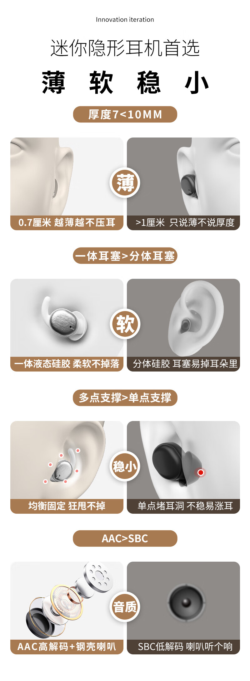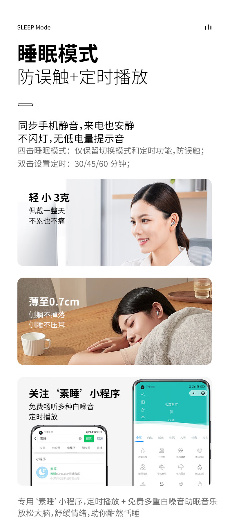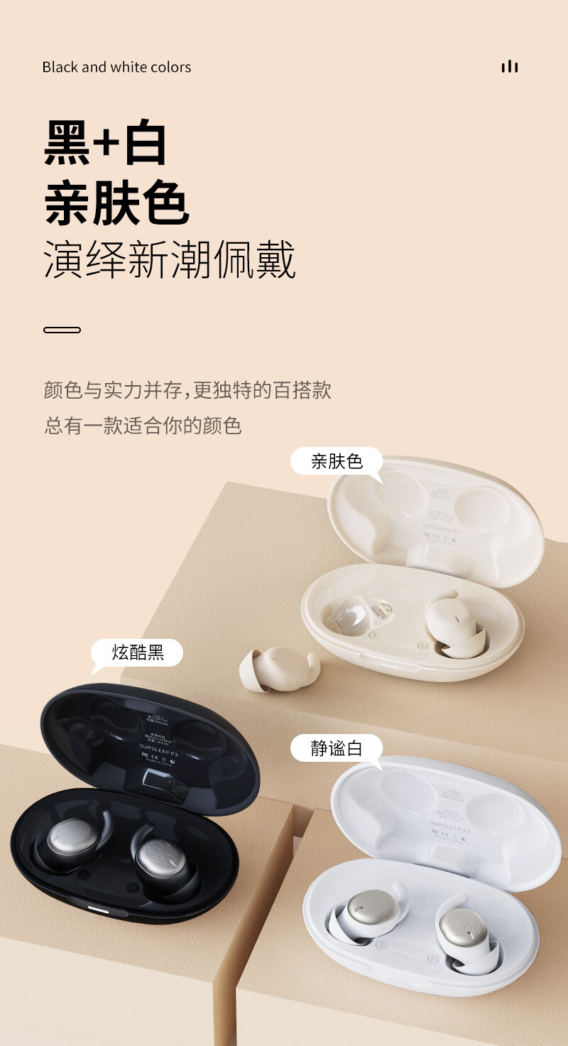 HOAXEE迷你蓝牙耳机入耳式超小型隐形睡眠超薄睡觉侧卧专用无线隔音降噪长续航音质前十运动跑步不掉新款 P3白色【不闪灯+无低电提示音】 适用苹果华为荣耀小米安卓等手机