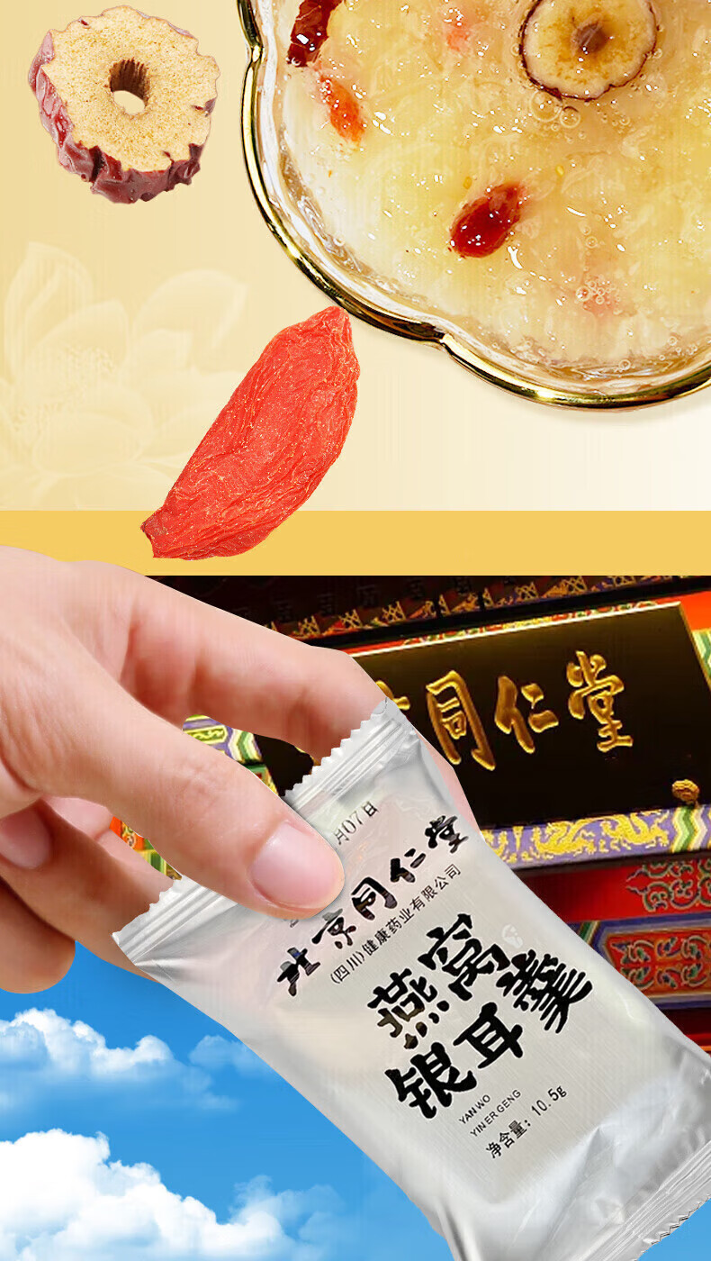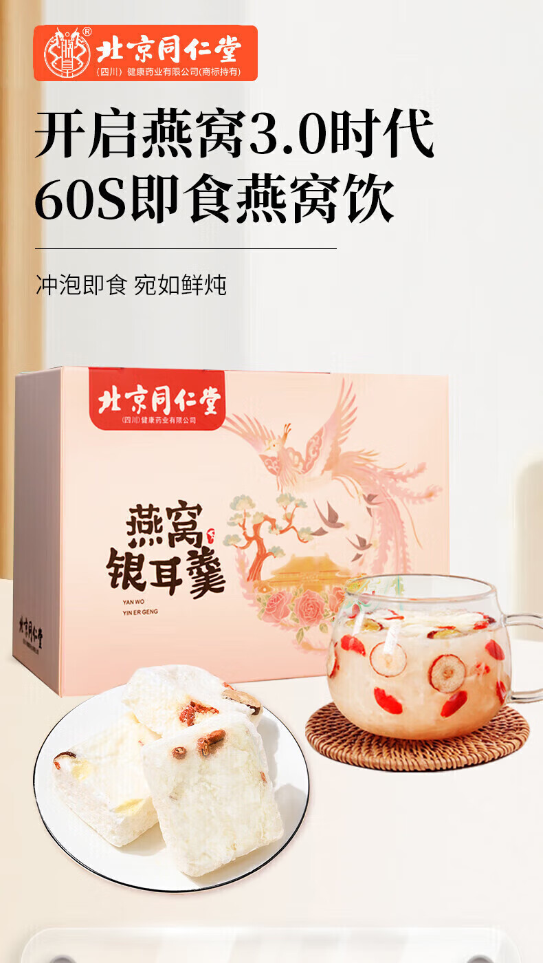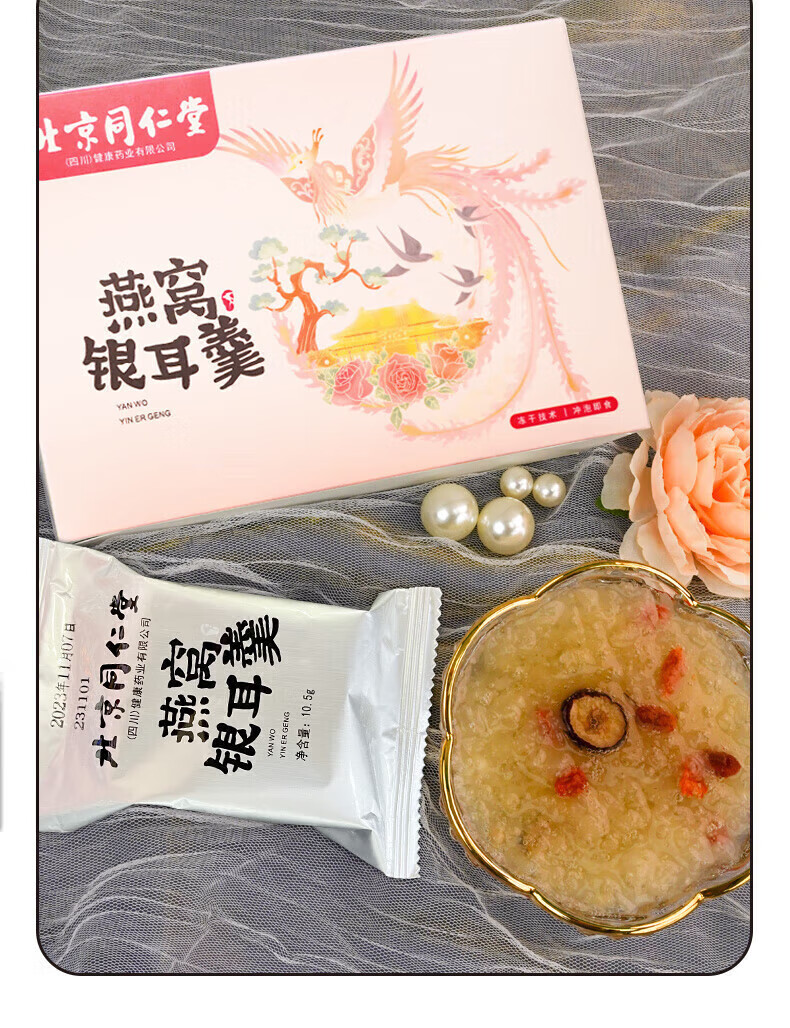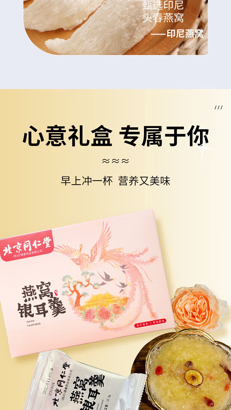 朕皇北京同仁堂冻干燕窝银耳羹即食免煮免炖燕窝干鲜炖送母亲女友礼品 【1盒装】6袋/盒