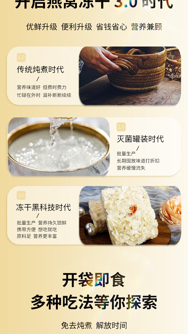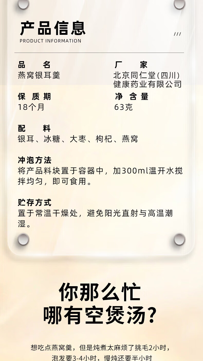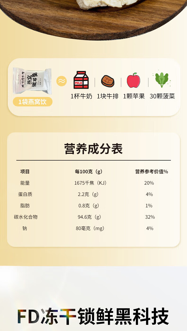朕皇北京同仁堂冻干燕窝银耳羹即食免煮免炖燕窝干鲜炖送母亲女友礼品 【1盒装】6袋/盒