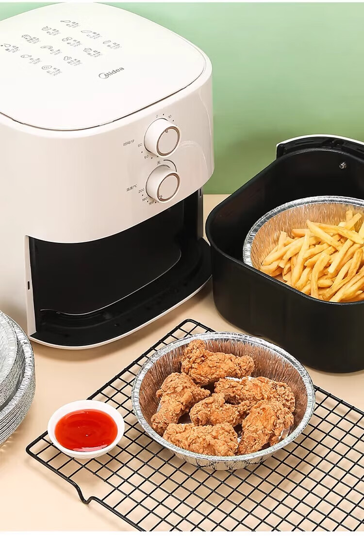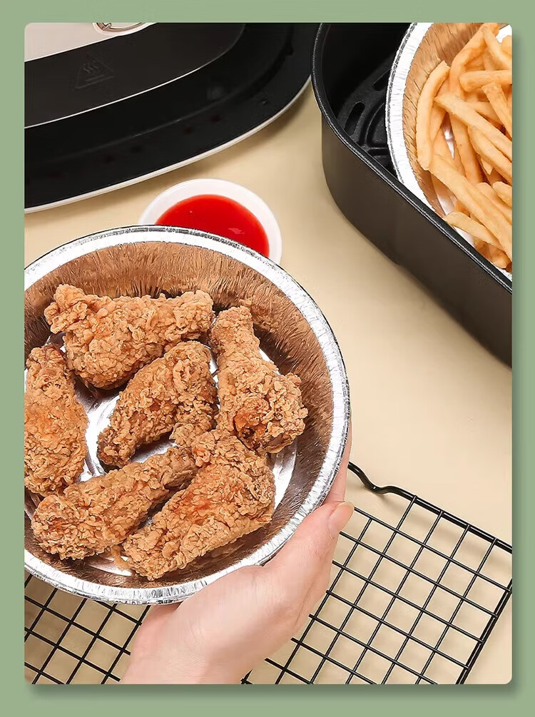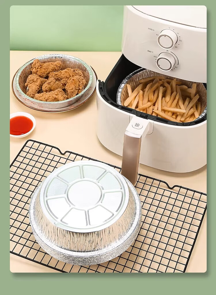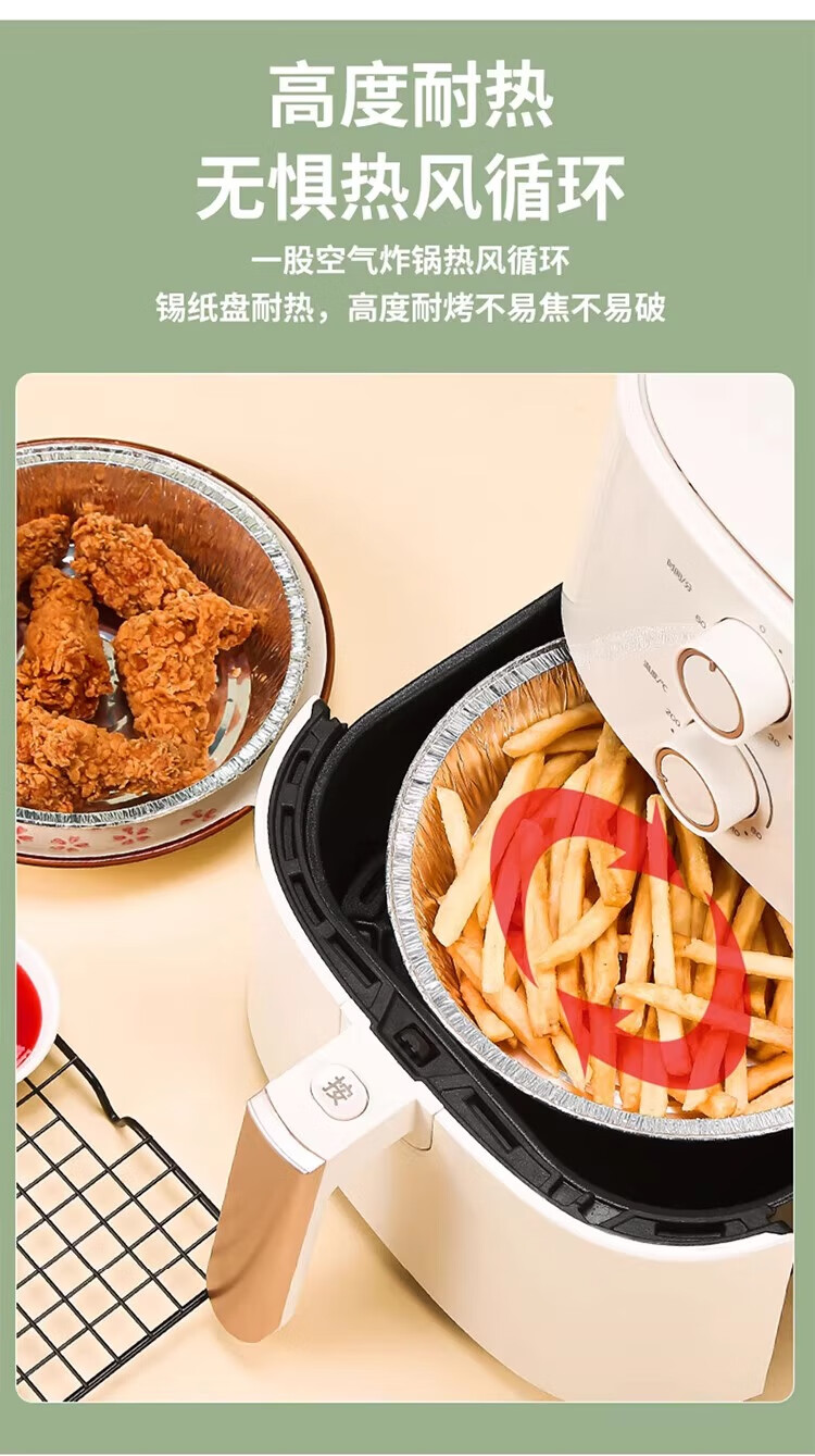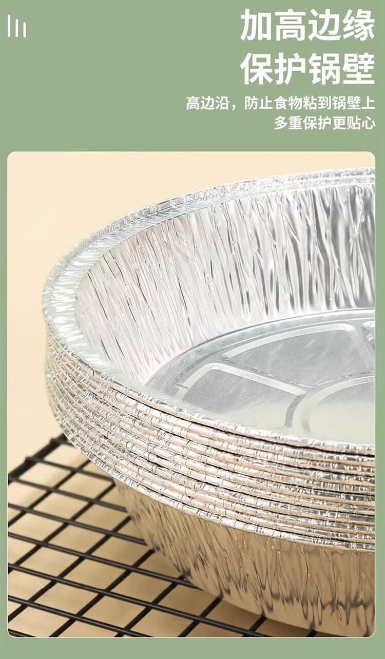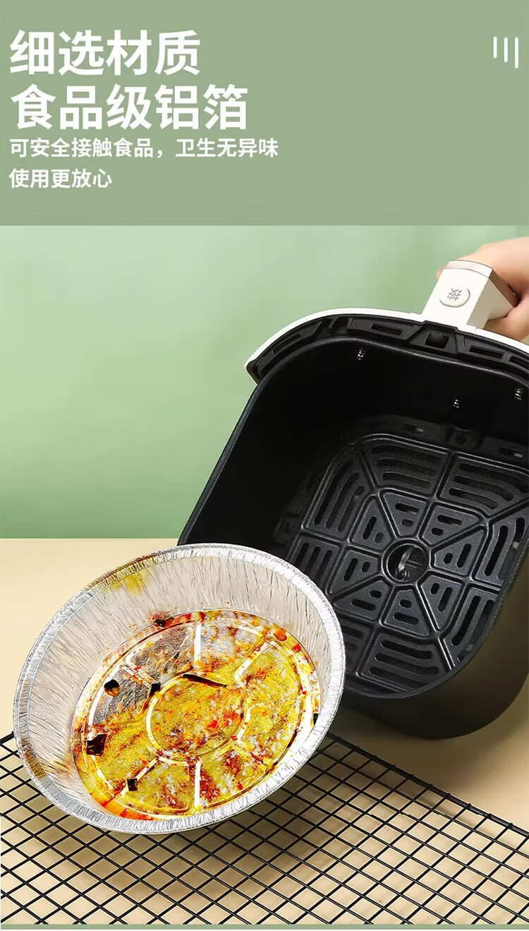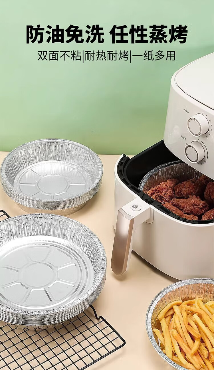 空气炸锅专用加厚锡纸盘盒烧烤箱烘焙锡箔碗家用锡纸盒食品级圆形 【大号-宽21cm】5-8L锅用:30个