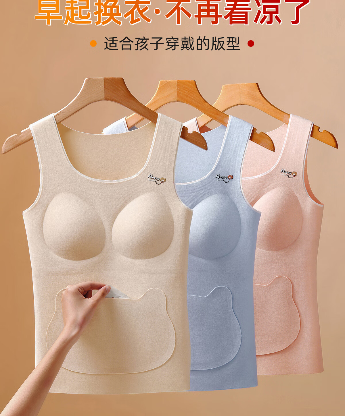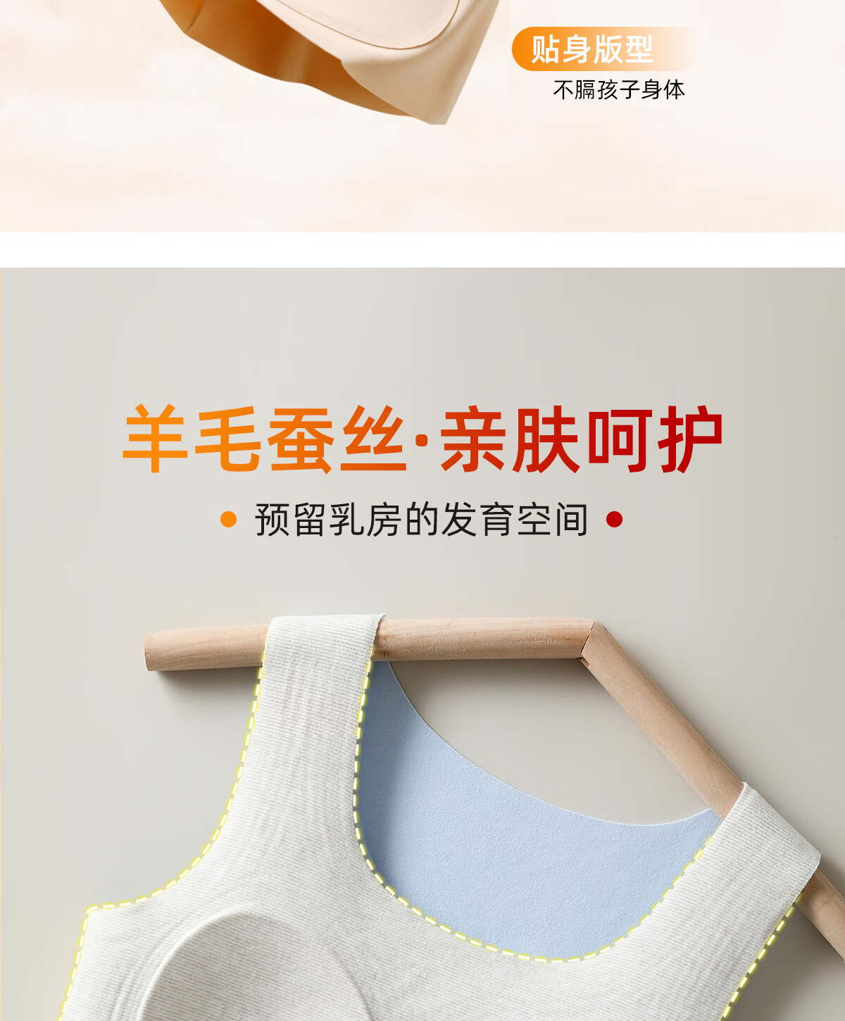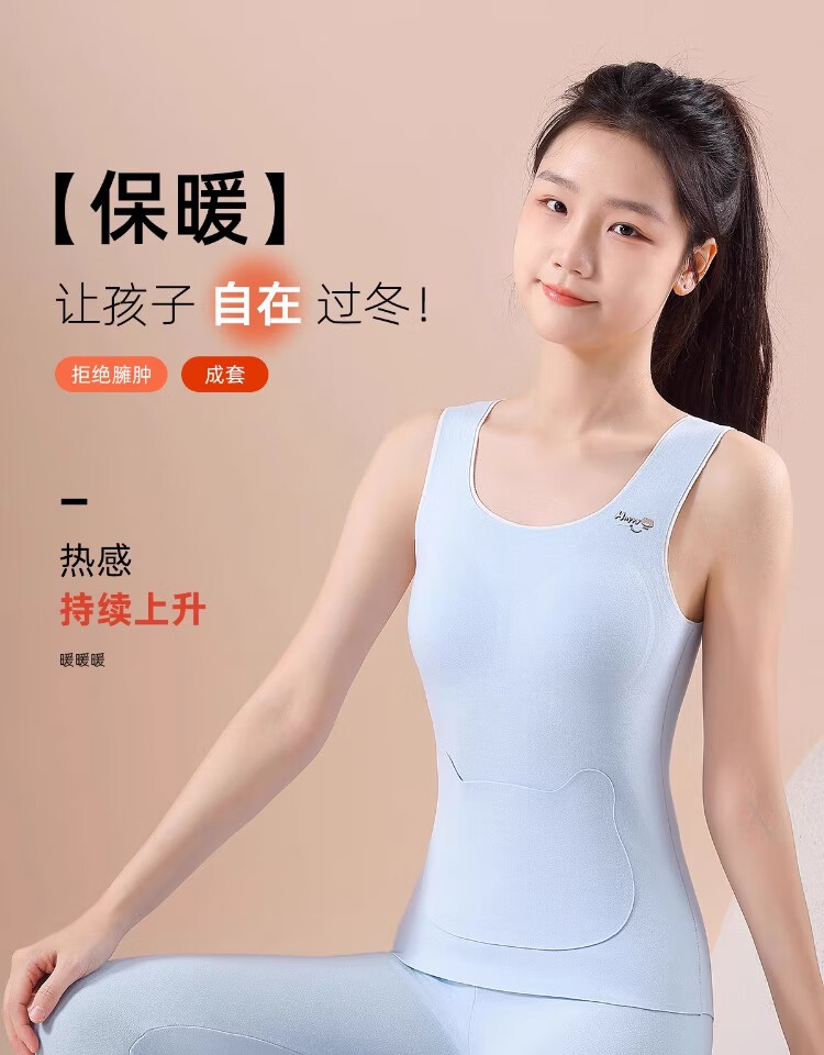 NW HAREM少女大童内衣双面德绒发育期小学生初中羊毛蚕丝带胸垫保暖背心女 天空蓝 【专为发育期设计的保暖背心】 XL 码【推荐体重105-120斤】