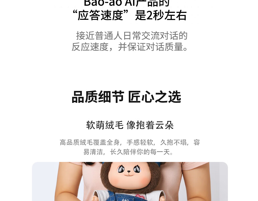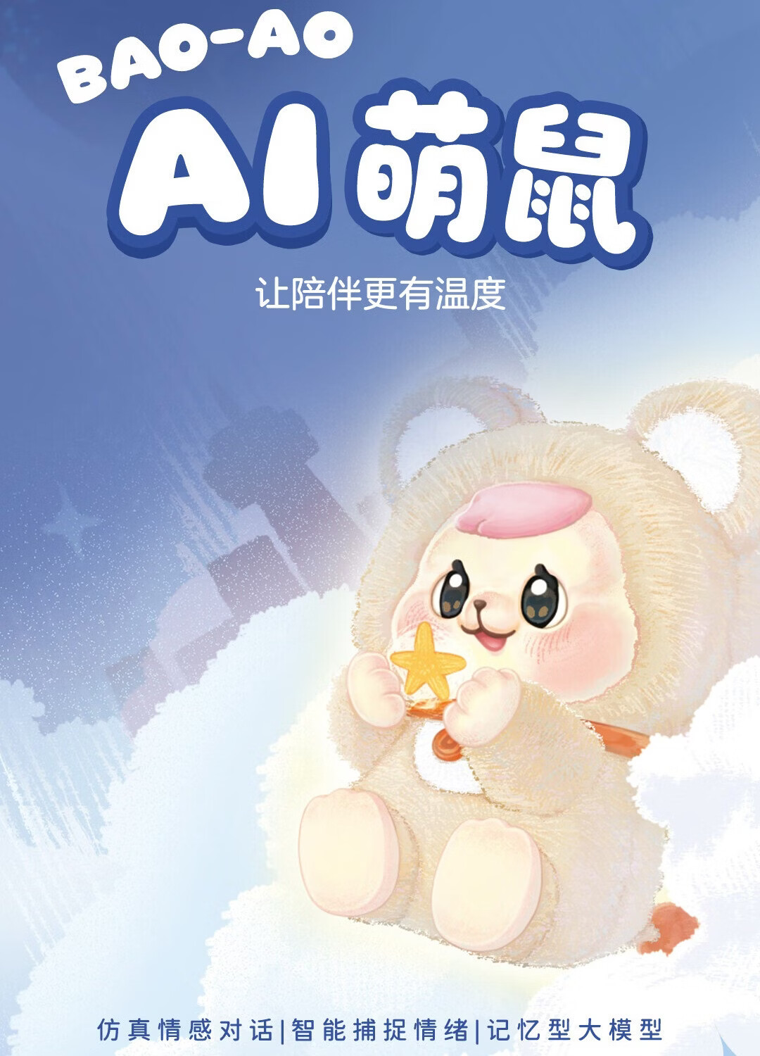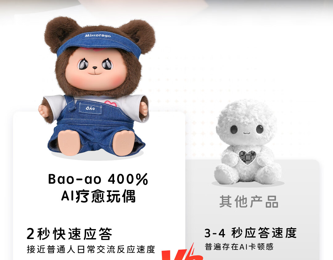 巴博智能Bao-ao智能机器人 ai公仔 萌鼠机器人 毛绒玩具ai宠物陪伴机器人 情感识别记忆对话长续航新年礼物 白金版