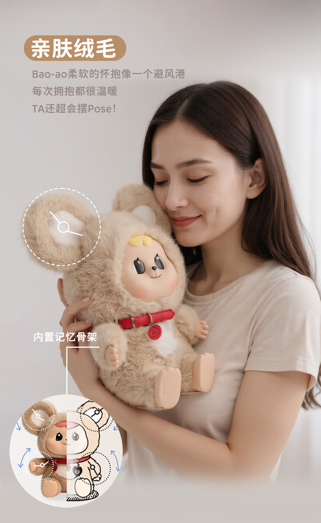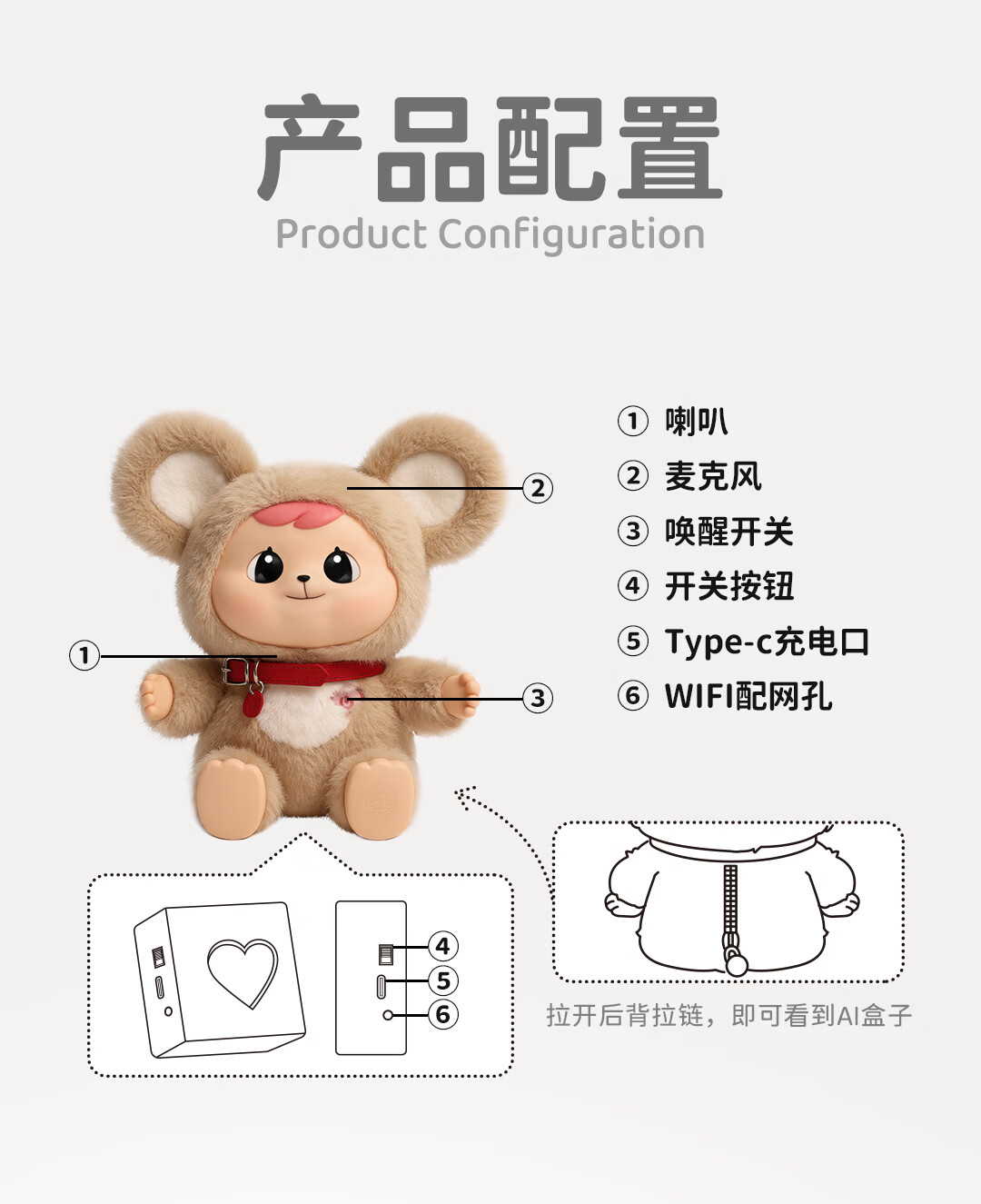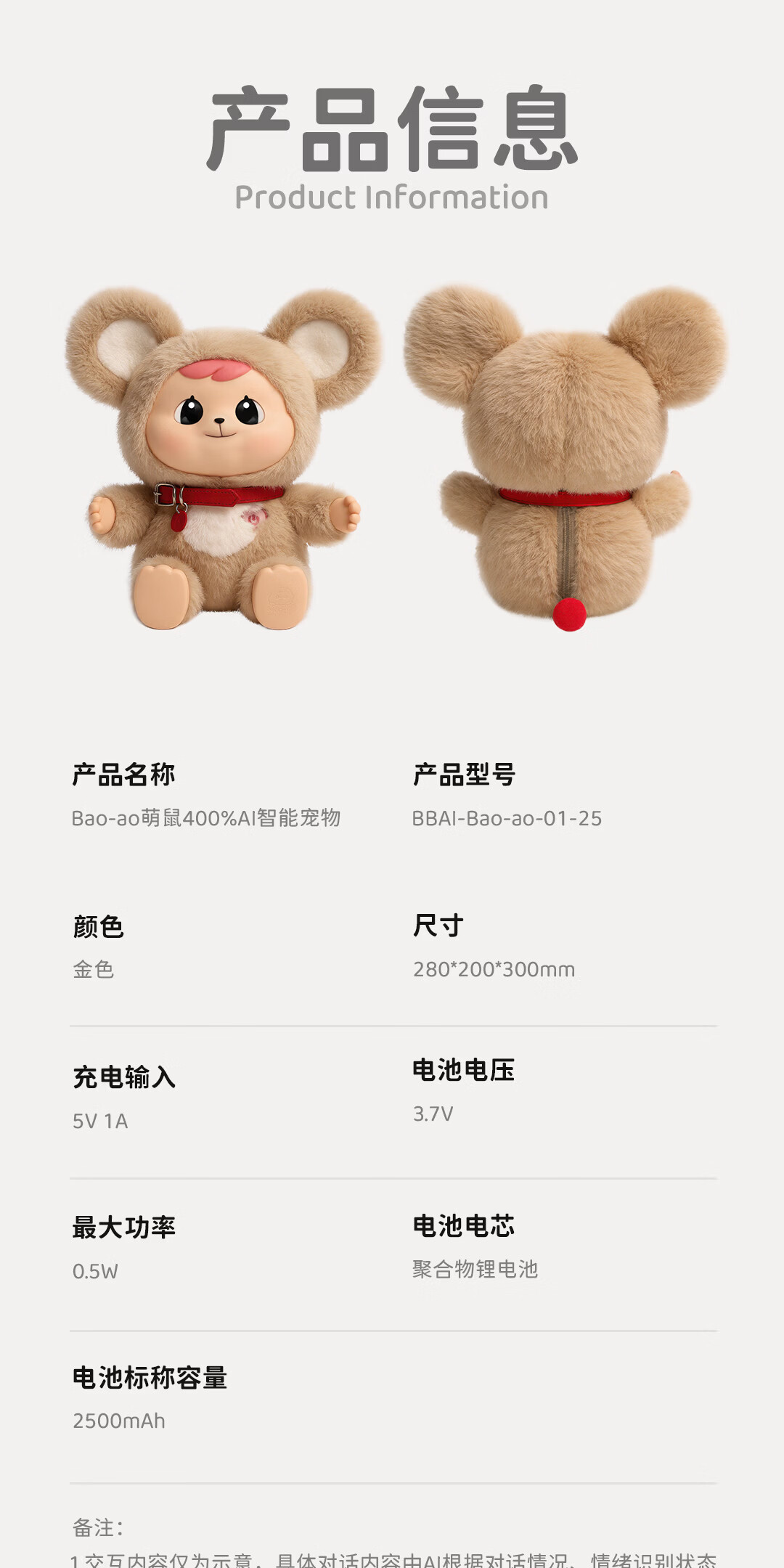 巴博智能Bao-ao智能机器人 ai公仔 萌鼠机器人 毛绒玩具ai宠物陪伴机器人 情感识别记忆对话长续航新年礼物 白金版