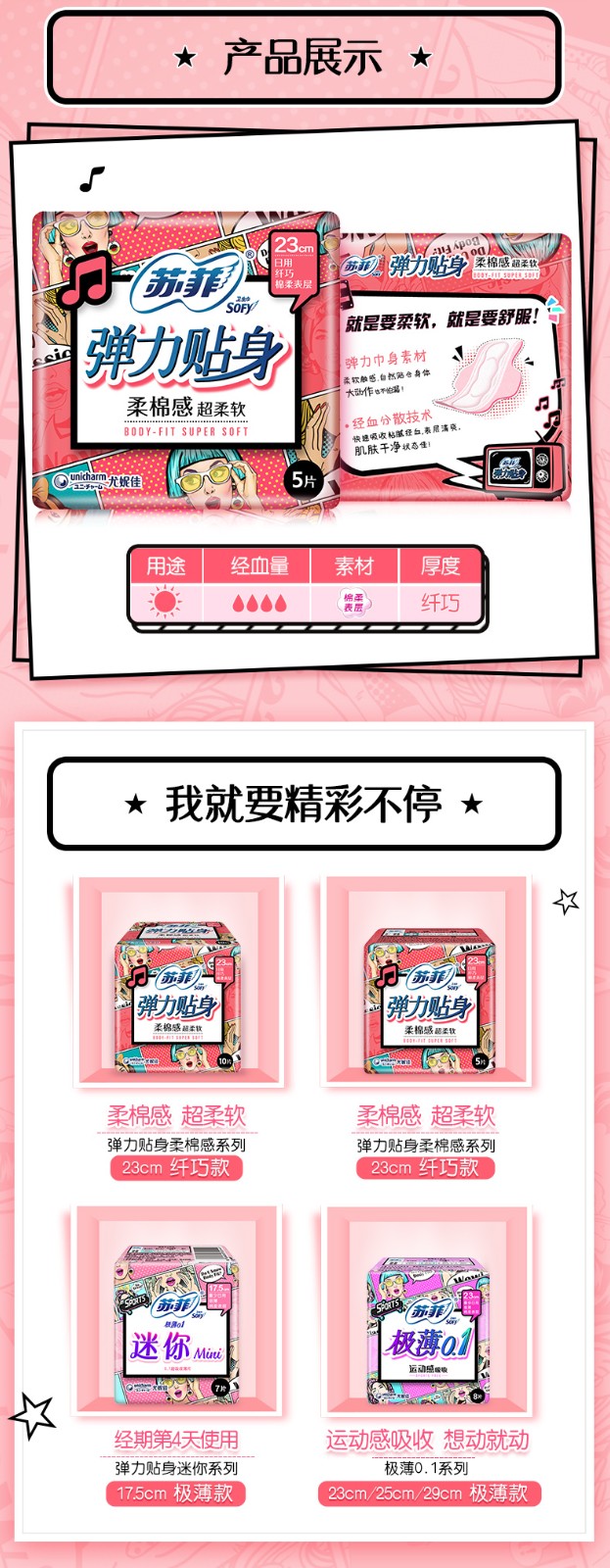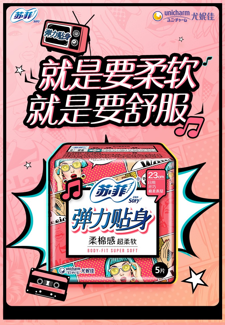 苏菲卫生巾 弹力贴身日用230棉柔超熟睡290护垫姨妈巾 日夜组合75片