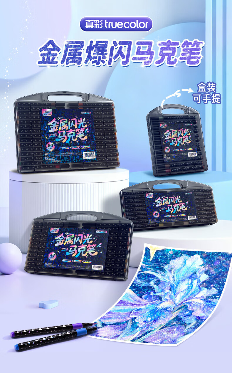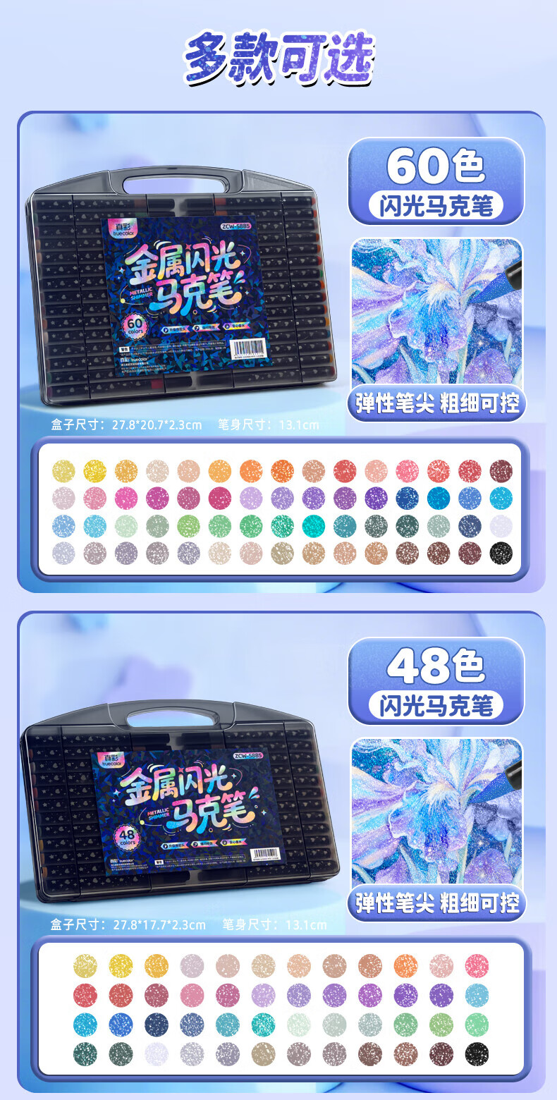 真彩(TRUECOLOR)彩色闪光马克笔儿童炫彩啫喱笔小学生用软头画画划重点记号笔荧光笔手账标记闪粉笔水彩流沙笔 80色【丙烯马克笔】大容量软头