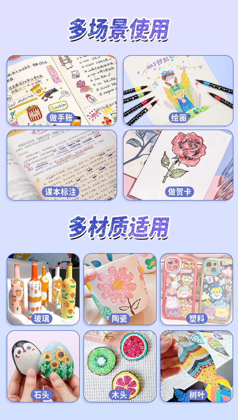 米娅丙烯马克笔不透色可叠色学生专用DIY彩色画笔水彩笔防水不透纸无毒儿童涂鸦专用彩笔可水洗笔芯 【美院联名款】36色双头丙烯马克笔