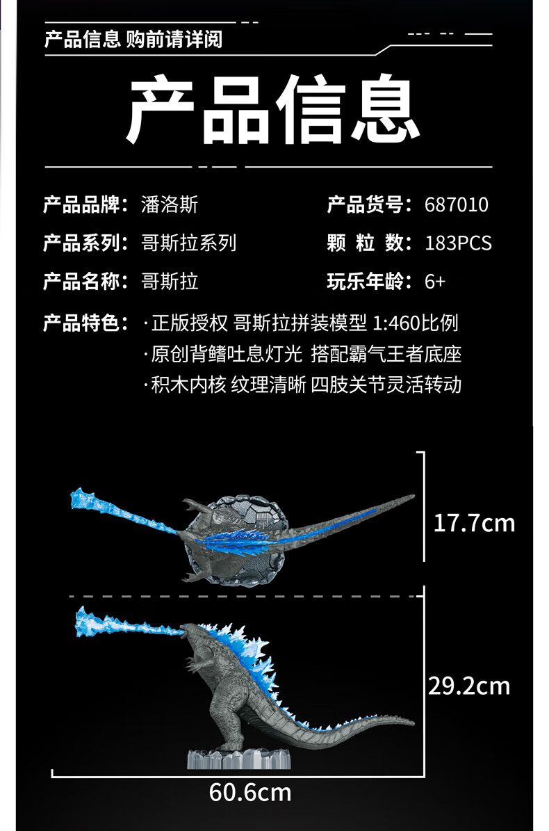 潘洛斯正版哥斯拉灯光积木手办拼装可动模型收藏儿童玩具 【新品】巨兽哥斯拉